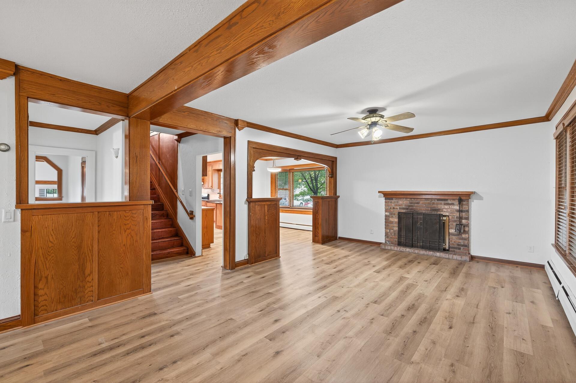 Welcome to 2431 14th Avenue E, a beautifully updated Craftsman bungalow in the heart of North Saint Paul. Built in 1926, this 6-bedroom, 2-bathroom home offers more than 2,600 finished square feet of timeless character, thoughtful updates, and inviting living spaces. Step inside and fall in love with the original woodwork, built-ins, and architectural details that define true Craftsman style. The main level features a warm and welcoming living room anchored by a wood-burning fireplace, perfect for cozy evenings. The updated kitchen shines with granite countertops, stainless steel appliances, and stylish flooring, blending modern convenience with vintage charm. With six bedrooms spread across multiple levels, there’s room for everyone—ideal for large households, multi-generational living, or flexible home office space. A two-car detached garage adds convenience, and the spacious yard offers room to relax, garden, or play. Situated on a quiet street near downtown North Saint Paul, local shops, and parks, this home combines the best of classic craftsmanship and contemporary comfort. Every corner tells a story, and every update adds peace of mind. Come experience the perfect balance of character, space, and modern living—this Craftsman beauty is ready to welcome you home.