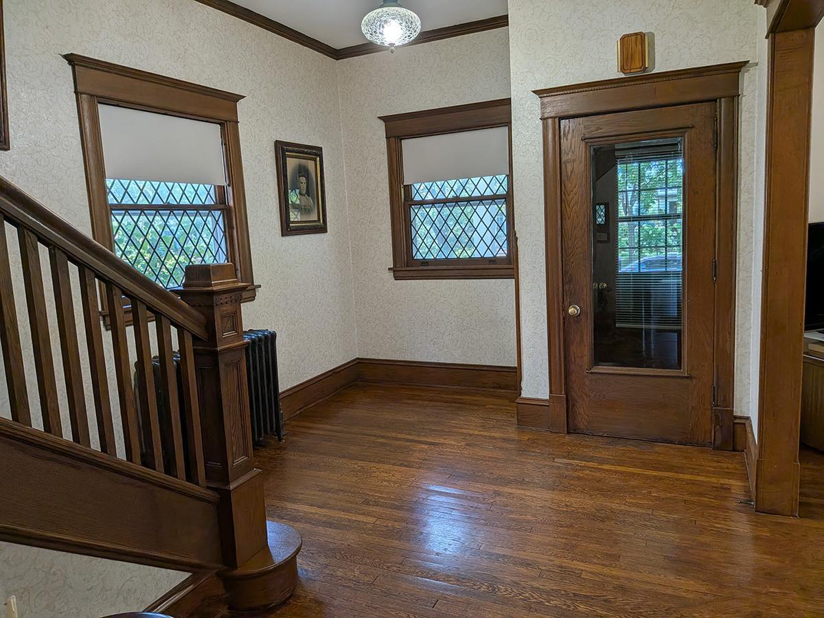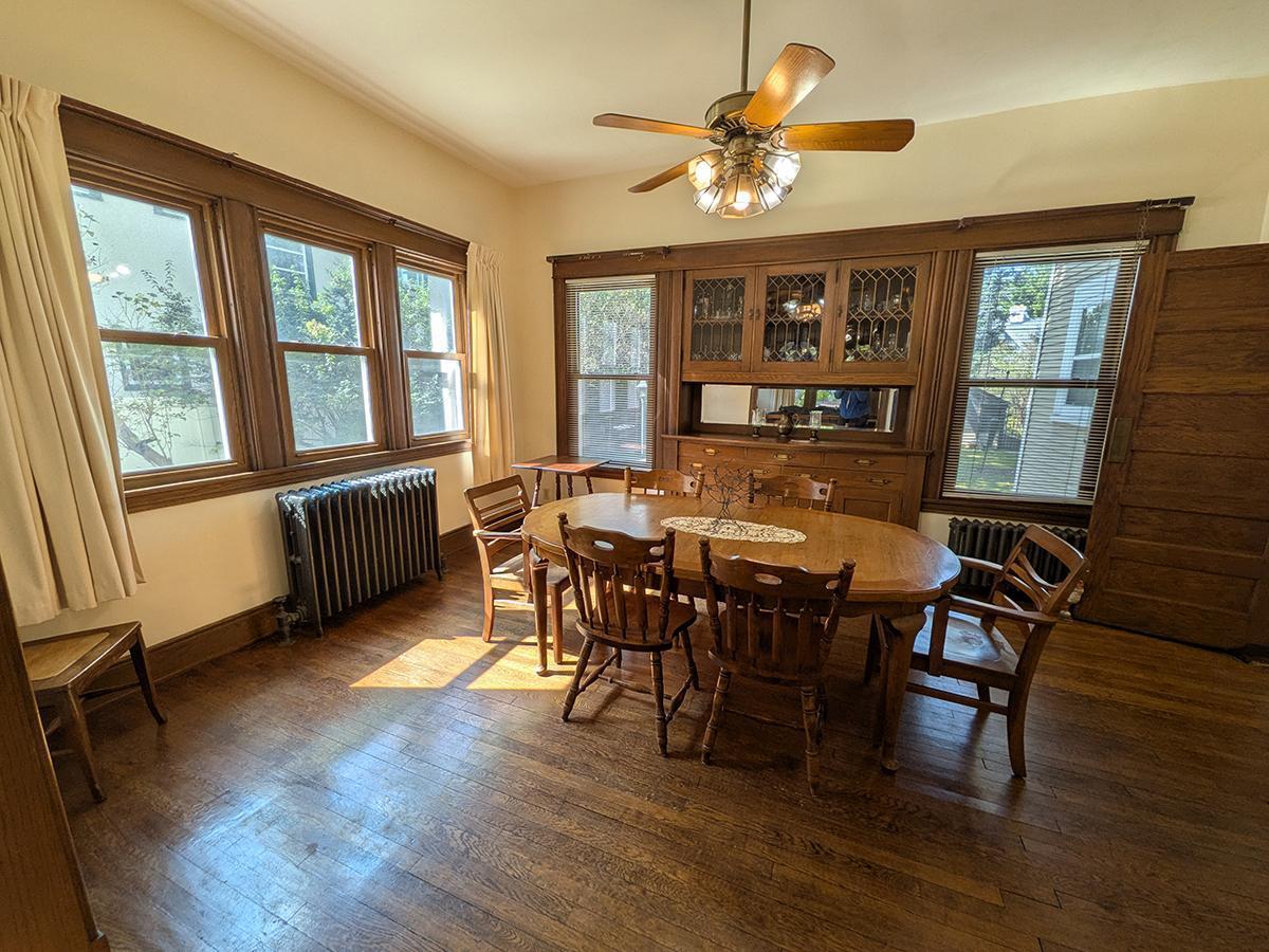 The property has been updated since original listing. This home is close to Lake of the Isles and children’s park. Near Uptown and downtown. Abundance of Shopping and dining within walking distance. Large full width east facing covered front porch. Spacious eat-in Kitchen with floor to ceiling cabinets, gas stove, vent hood and dishwasher. Formal dining room with original built-in buffet. Large living room with brick fireplace and built-in book cases. Four bedrooms and full bath on second floor, including primary bedroom. Two bedrooms and ¾ bath on third floor. ¾ bath in the basement. Back door mud room. Updates for comfort and energy efficiency include Central Air, Vinyl windows, Thermostatic radiator valves on 2nd and 3r floor and Exterior wall insulation. Laundry shoot accessible from all three floors. Features. • Foyer • Large Living room • Large Kitchen • Dining room • 6 Good-sized bedrooms • Built-in Buffet, Bookcases, and Linen closet • Partially finished basement • 2+ Car Garage, plus parking for 1-2 additional cars • Back Patio • Covered Front Porch • Ceiling Fans • Fireplace, Chimney tuckpointing 2024 • High Ceilings • Original leaded windows and vinyl windows • Asphalt shingle Roof - New in 2024 • Original wood floors, staircases and trim • Gas heating • Water Heater – Gas • Fenced in back yard • Shed • Back door mud room • In ground irrigation system • Detached Garage has 220 wiring • Air Conditioning system