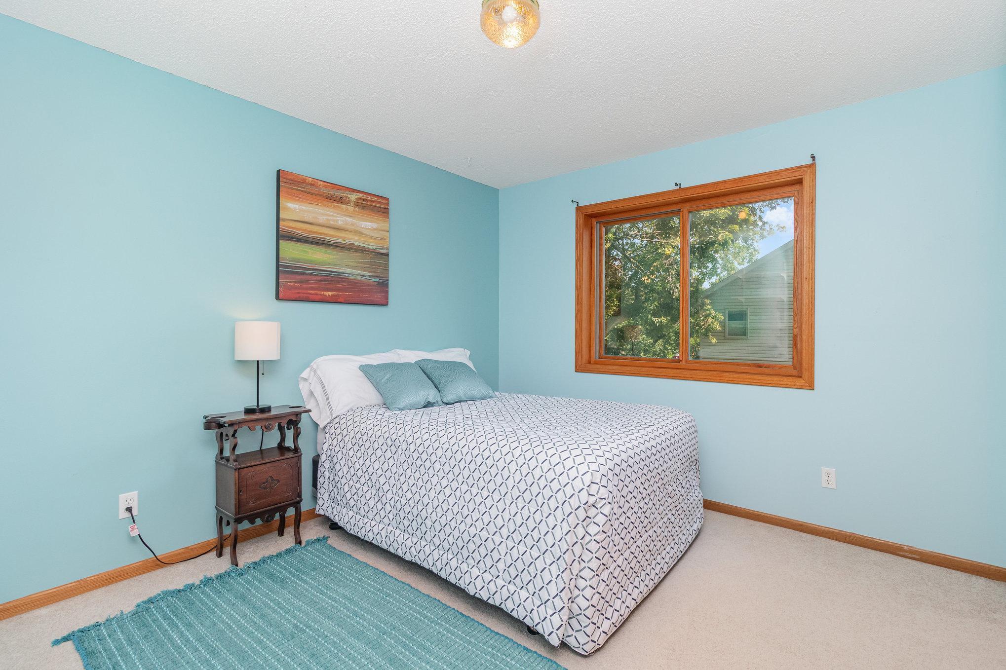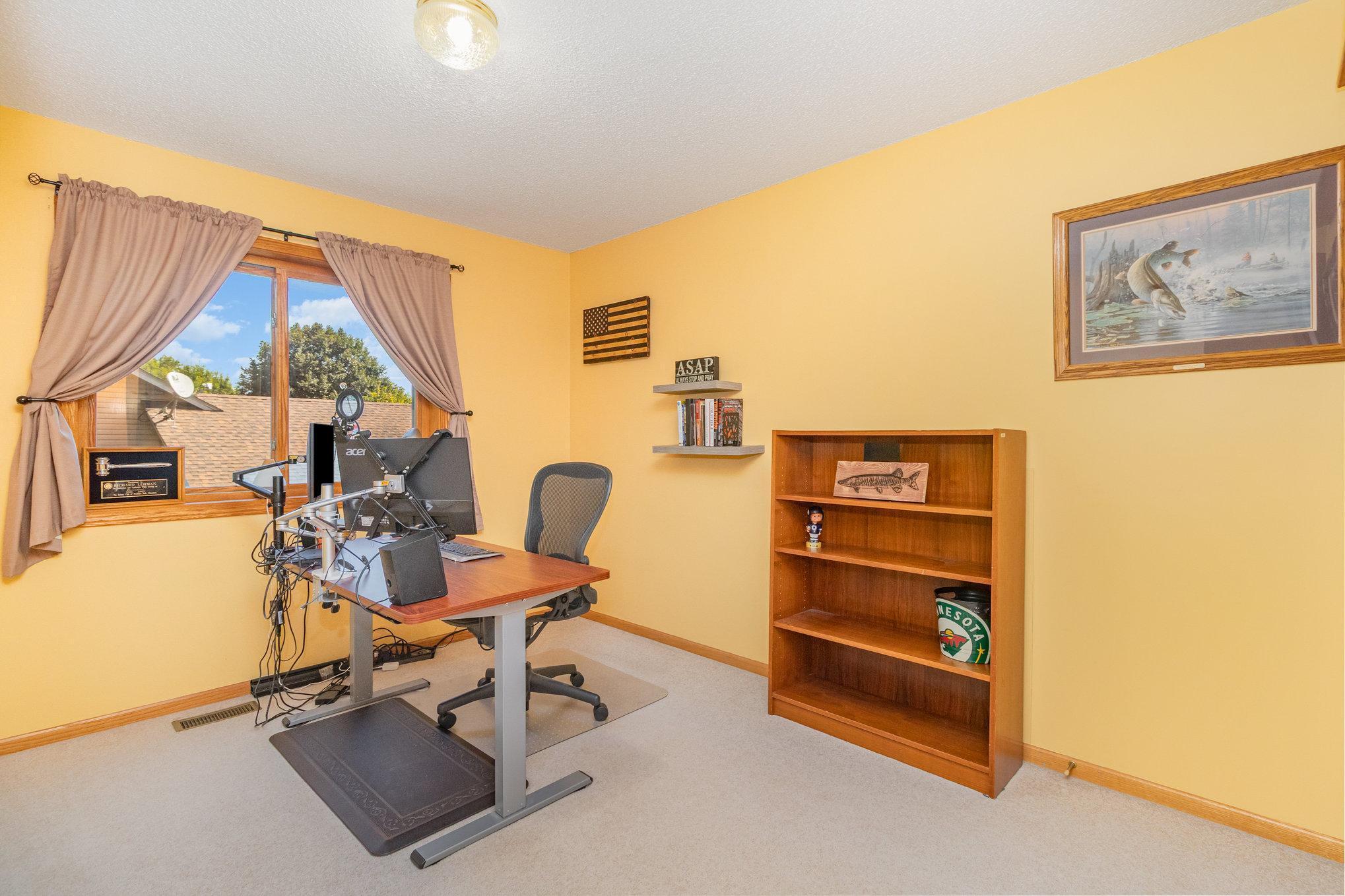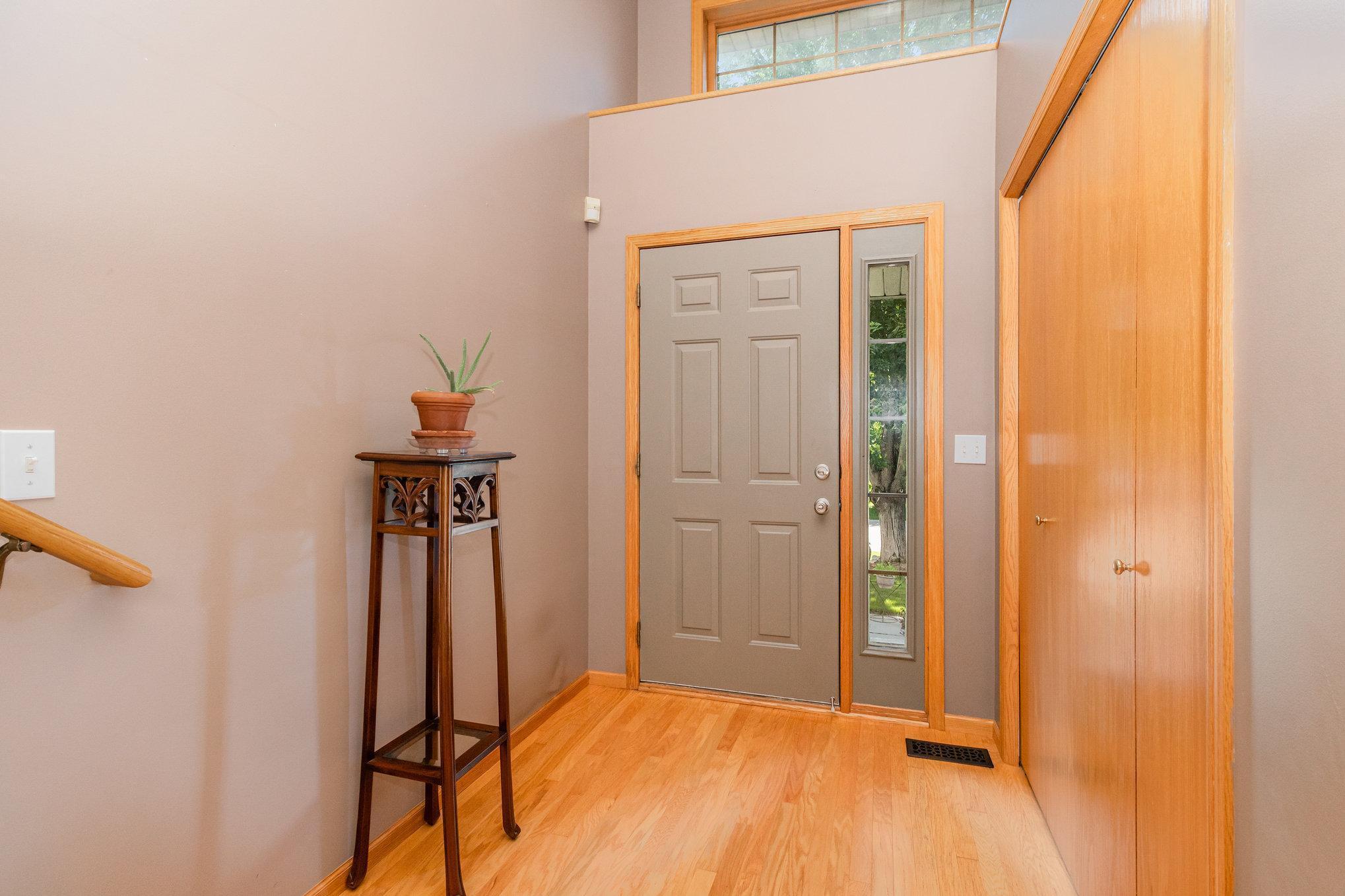Exquisitely maintained by its original owner, this custom-built gem has been lovingly cared for and thoughtfully updated throughout. Featuring three spacious bedrooms on the upper level, including a luxurious Owner’s Suite with a walk-in closet and a beautifully remodeled executive bath—complete with in-floor heating, a jacuzzi tub and a large shower with multiple water jets—this home blends comfort and elegance. An additional tiled full bath serves the two secondary upstairs bedrooms, while the main floor offers a flexible bedroom with charming windowpane French doors, currently used as a home office. The expansive kitchen is a chef’s delight, boasting hardwood floors, a center island, and convenient slide-out pantry drawers—perfect for both everyday living and entertaining. Main level living is enhanced by fireplace, built-in cabinets and seamless access to the stunning outdoor spaces. Step outside to enjoy a huge two-tiered, maintenance-free deck with breathtaking views of a tranquil pond, frequented by ducks, deer and songbirds. There's also a patio off the back of the garage for added outdoor enjoyment. In winter, take advantage of the scenic beauty with ice skating or simply cozy up and enjoy the view. The lower level has been recently remodeled to include a custom bar and a fantastic guest space—ideal for hosting gatherings. Additional features include a large mechanical room with generous storage and a built-in sprinkler system for easy lawn care. Peace of mind comes easy with numerous updates including newer siding, roof, furnace, A/C, deck, and driveway seal coating. Most appliances have been replaced within the past few years. The oversized garage offers abundant space for 4 vehicles, hobbies, or storage, with a pull-down staircase leading to attic space. Located in the highly sought-after Stratford Crossing neighborhood, this home is just steps from Edinburgh Golf Course, scenic walking paths, parks, schools, restaurants, and shopping. The friendly community hosts annual events like National Night Out, and the area offers year-round outdoor recreation including biking, snowshoeing, cross-country skiing and more.