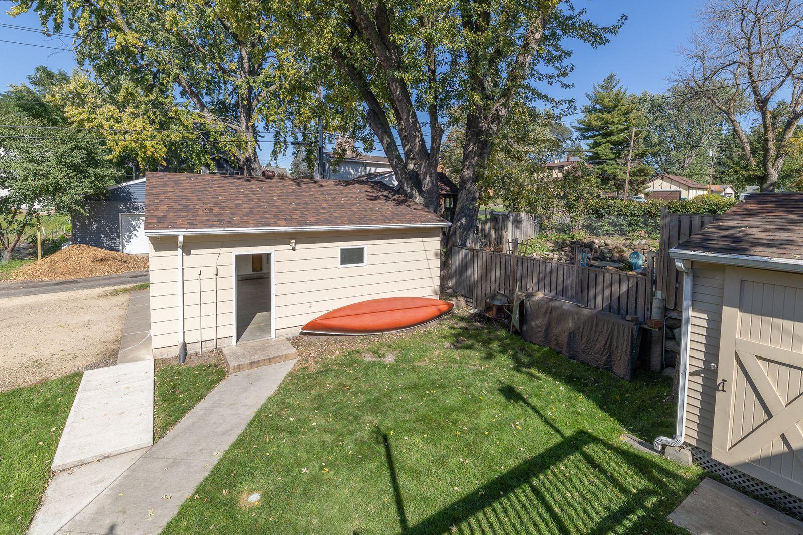 Welcome to this delightful North St. Paul home! The sun-filled living room greets you with a cozy wood-burning fireplace-an inviting spot to unwind on cool evenings. Hardwood floors rest beneath the carpet on the main level, adding classic charm to the home's character. The cheerful eat-in kitchen offers plentiful cabinetry and stainless steel appliances, combining both style and function. Three comfortable bedrooms and a full bath complete the main floor.The finished lower level expands your living options with a spacious family room featuring a gas fireplace, a fourth large bedroom, a 3/4 bath, a large flexible office space, and convenient storage room which can also be used as a second office, a mudroom with storage, and a convenient laundry room. Step outside to an entertainment-sized deck perfect for hosting, along with a large detached two-car garage and an extra storage shed. Ideally located, this home is just a half-mile stroll to Silver Lake Park and close to the Gateway Trail.Come see this beautiful home-you won't want to miss it!