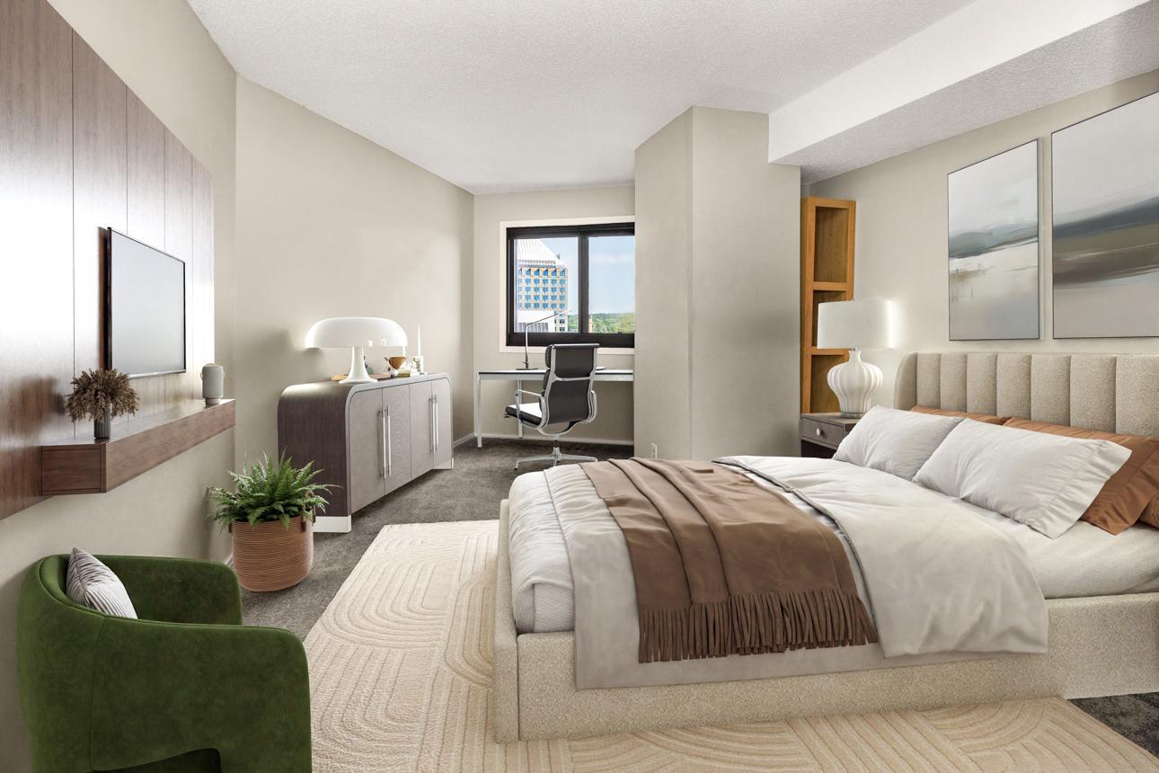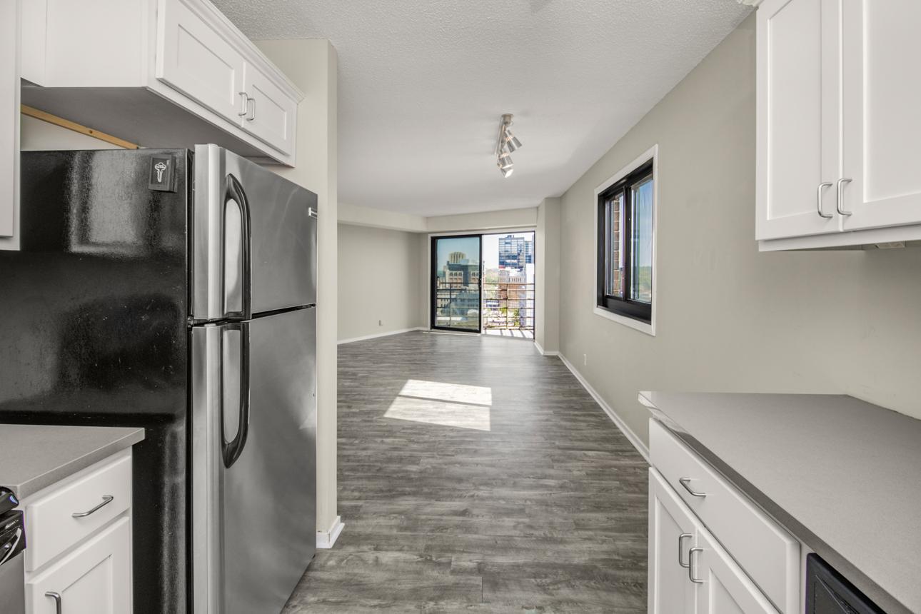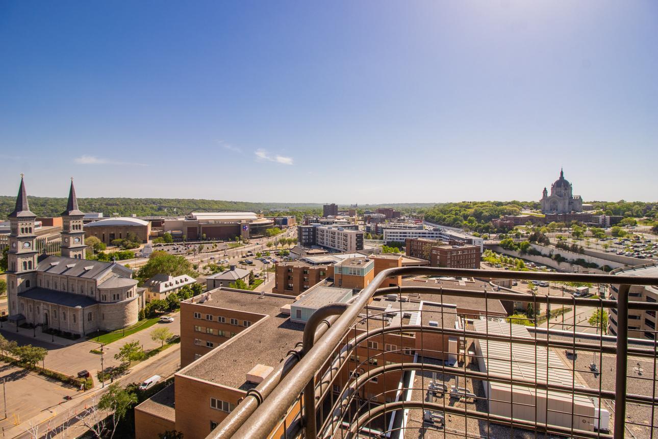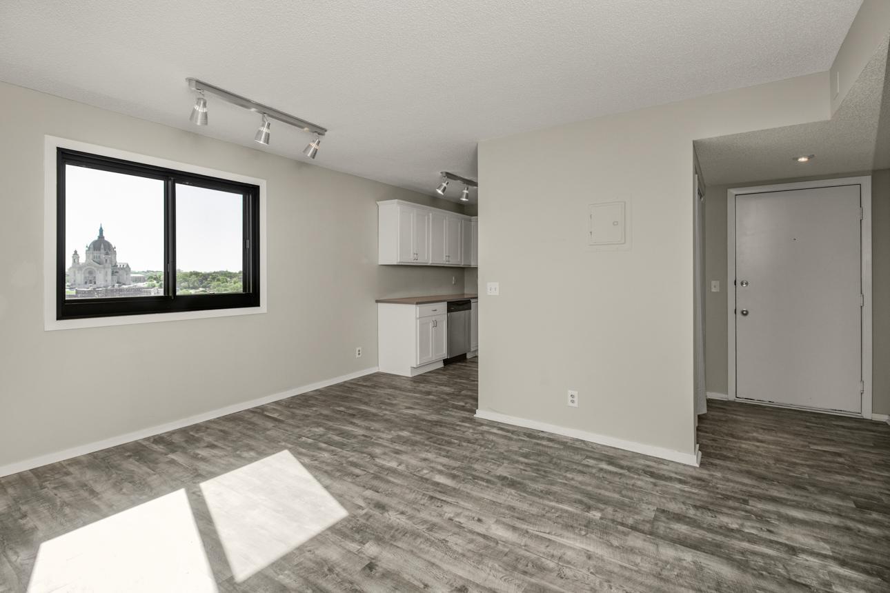 Experience elevated urban living in this updated 17th-floor corner condo in the Gallery Tower. This spacious 1-bedroom unit in downtown St. Paul features south and west-facing windows with stunning views of the St. Paul Cathedral and skyline. Modern kitchen cabinets, stylish countertops, and durable vinyl plank flooring throughout the living and kitchen areas. Step out onto your private balcony with panoramic city views, perfect for relaxing. The building offers sought-after amenities such as a fitness center, party room, outdoor patio. Enjoy low-maintenance living with all utilities included except electric, plus unbeatable walkability to CHS Field, shops, dining, and easy access to major highways. Contract parking available through City of St Paul. Schedule your private showing today and make downtown St. Paul your new home.