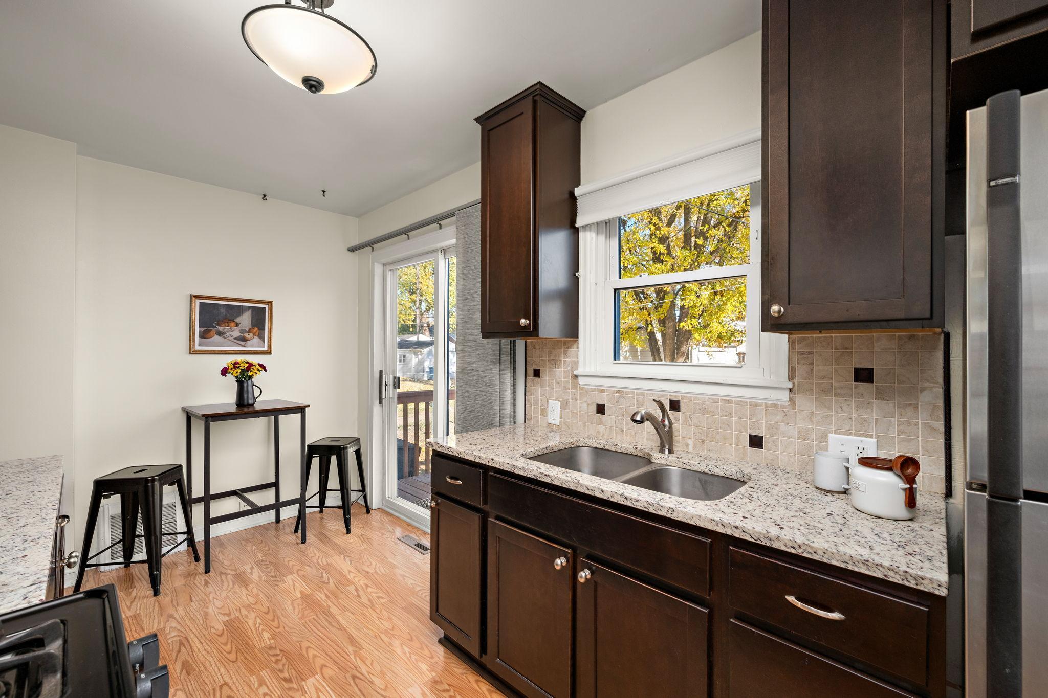 Welcome Home to this updated Robbinsdale Charmer just 1/2 mile from Theodore Wirth Park, trails, and all it has to offer! Renovated kitchen features newer cabinets, tile backsplash, granite countertops, and LVP flooring, with a convenient slider leading to the deck and backyard—perfect for morning coffee or evening grilling. Main level also offers a cozy living room and two bedrooms with new carpet in one and updated windows that provide wonderful natural light. Bright full bath has tile floors, pedestal sink, and neutral finishes. Lower level highlights great extra living space—ideal for a cozy family room, workout, or hobby space - plus additional room perfect for home office or potential 3rd bedroom. The laundry/mechanical room includes updated mechanicals, electrical panel, newer washer, and additional storage space. Enjoy the backyard with convenient walkway to newer oversized 1-car garage offering great extra storage space (built in 2013). Nestled on a quaint, tree-lined street close to parks, trails, schools, shops, dining, and COFFEE - this home is a warm and welcoming place to call your own! An Excellent Opportunity!