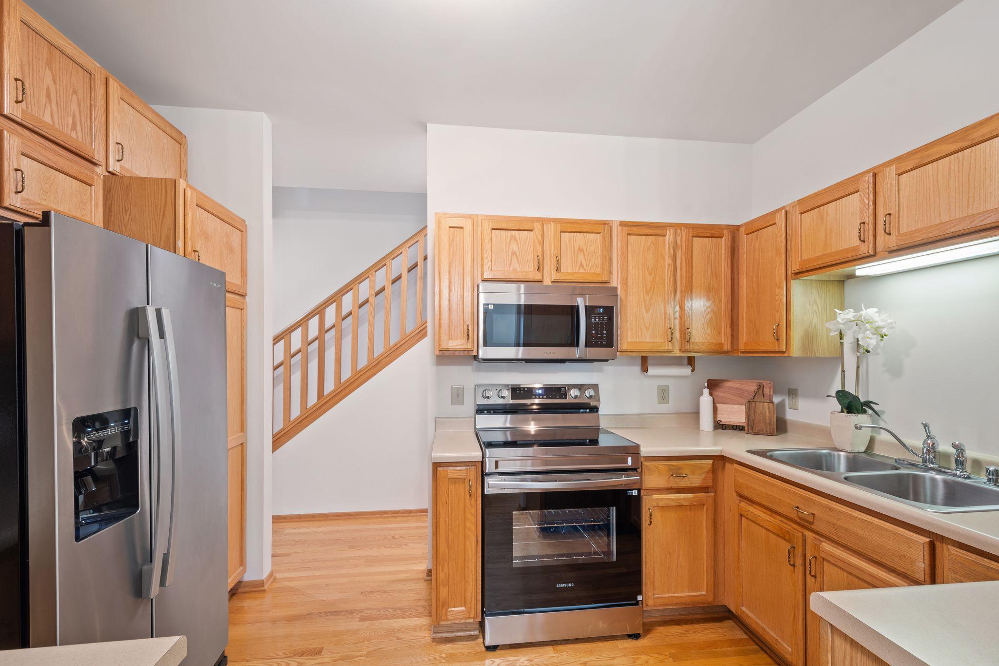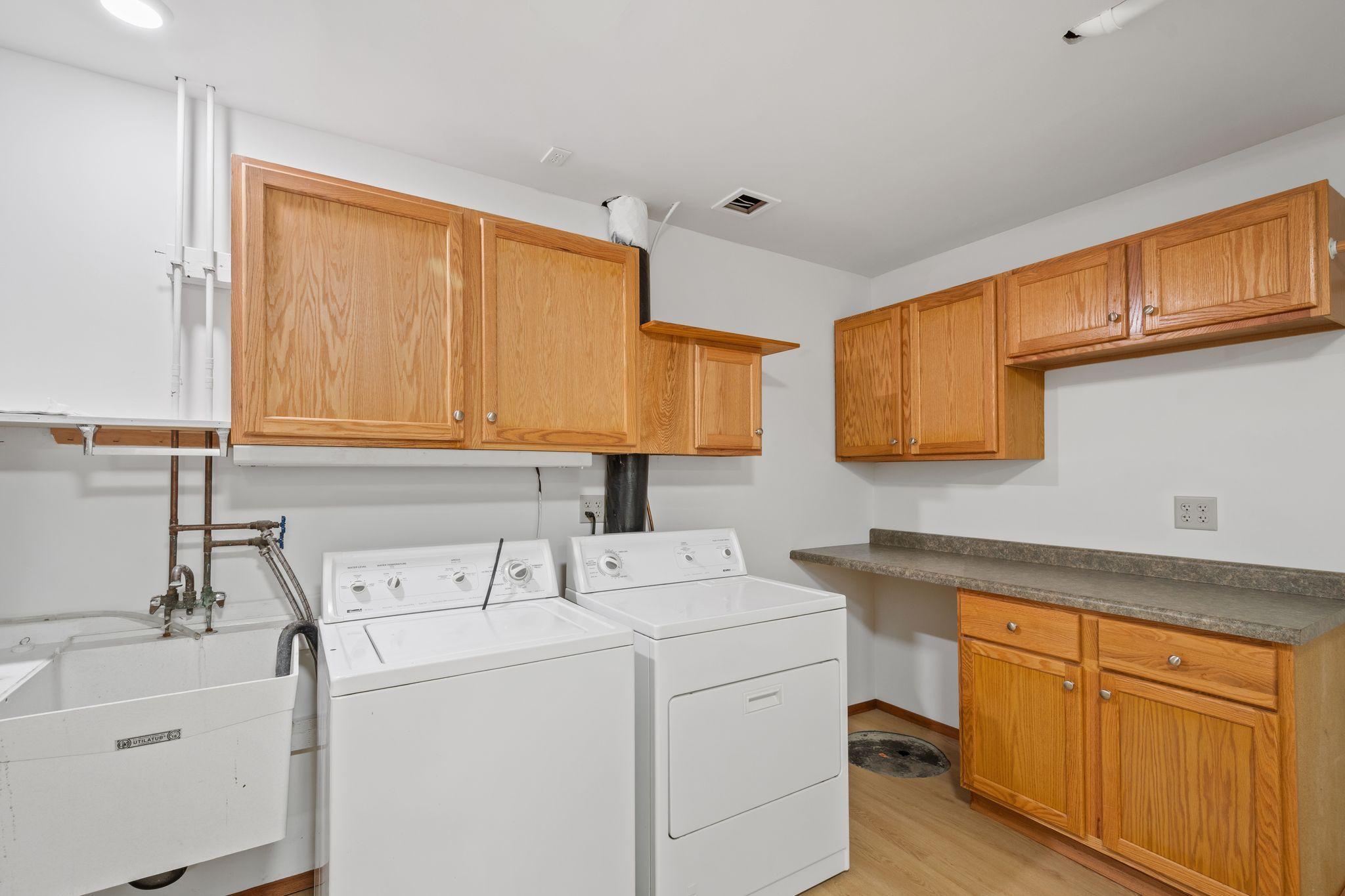 Welcome to this refreshed 5 bedroom, 2 bathroom side by side townhome with a 2 car garage, featuring brand-new carpet and fresh paint throughout. The main level offers a spacious living room, a modern kitchen with new stainless steel appliances, a convenient main-level bedroom, and a half bathroom. Upstairs, you’ll find a full bathroom and three bedrooms, including a generously sized primary suite. The lower level features a versatile large bedroom that could serve as a workshop or recreation room, an open utility space, and abundant storage. Enjoy relaxing on the covered front porch and the comfort of an updated home ready for its next owner.