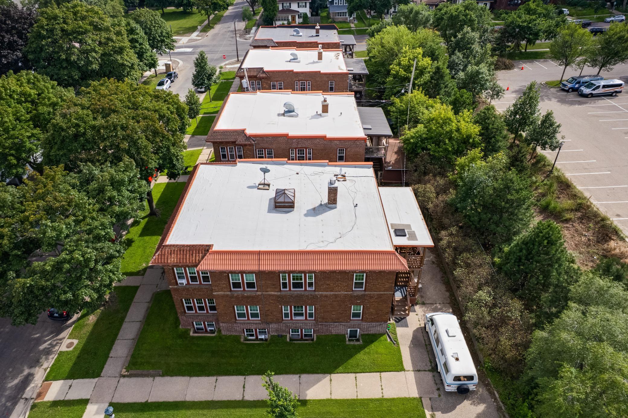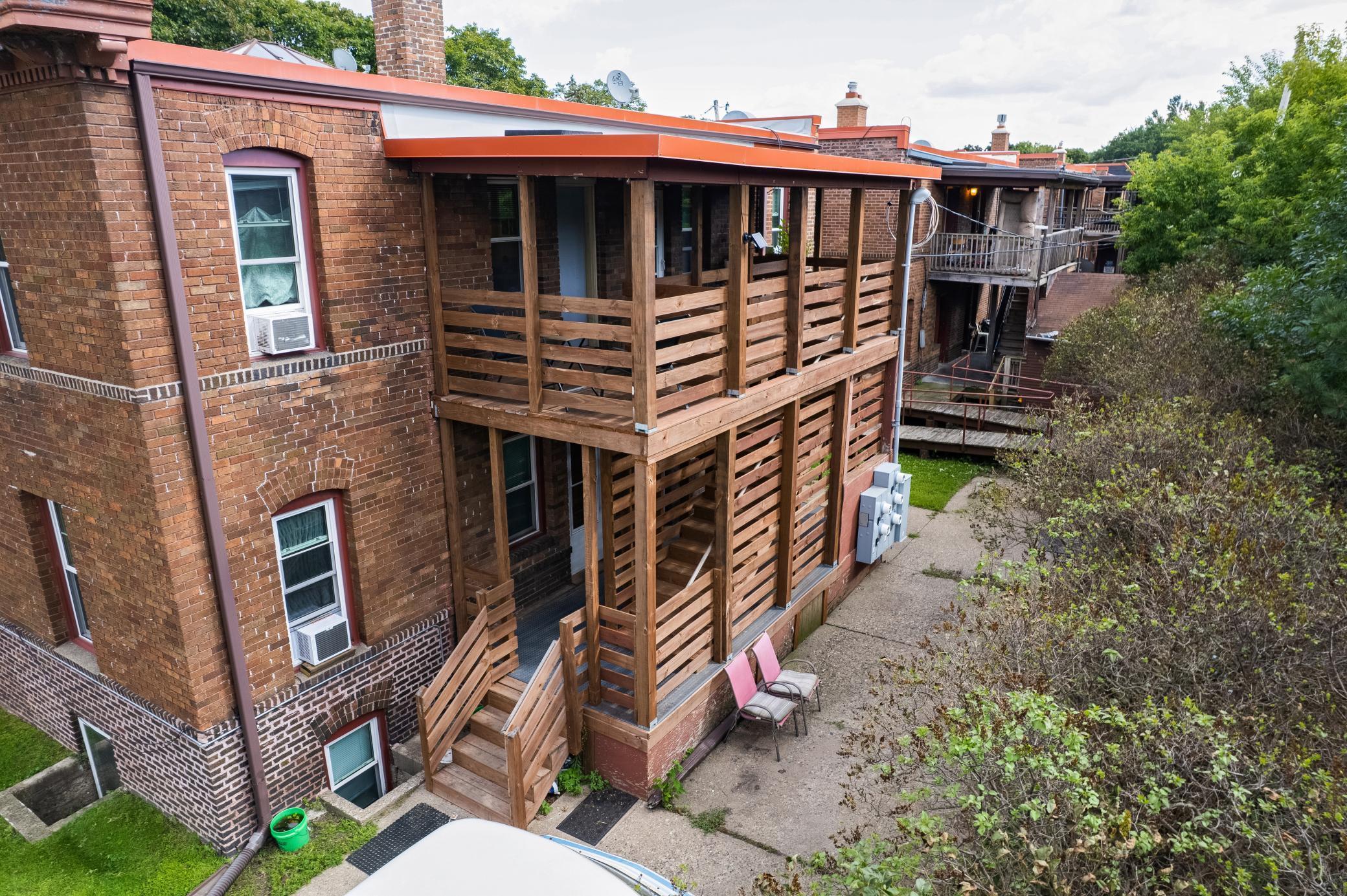 Classic & Stable Brick 5-Unit in Great condition -Prime St. Paul location just south of I-94 & Lexington -Spacious and well-maintained units: all 2 Bedroom / 1 Bath layouts -Numerous updates, including: -Roof replaced approximately 9 years ago -Weil-McClain steam boiler (installed 2007-2008; updated recently) -Brand-new two-level rear deck -Newer vinyl windows throughout -Brick exterior in good condition with solid tuck-pointing -Updated electrical panels (5 total - garden unit on house panel; other 4 units pay their own electric) -Parking: easy street parking plus space for ~2 cars behind the deck -Basement: includes one unit, laundry facilities, mechanical systems, and 4 storage units -Quality finishes: hardwood floors, abundant natural light, updated cabinetry, and tiled bathrooms in several units.