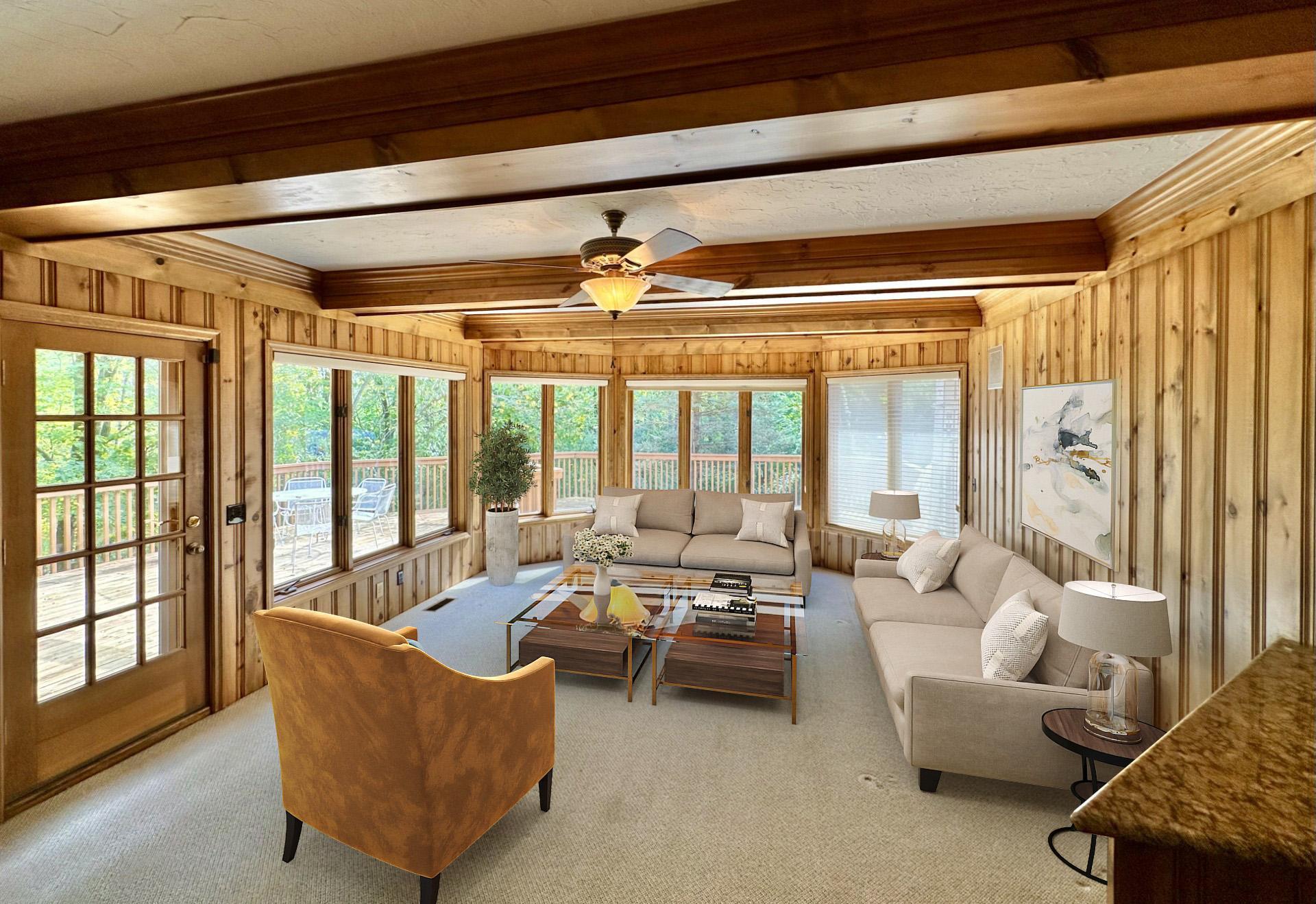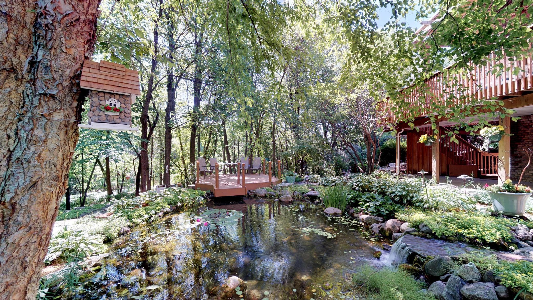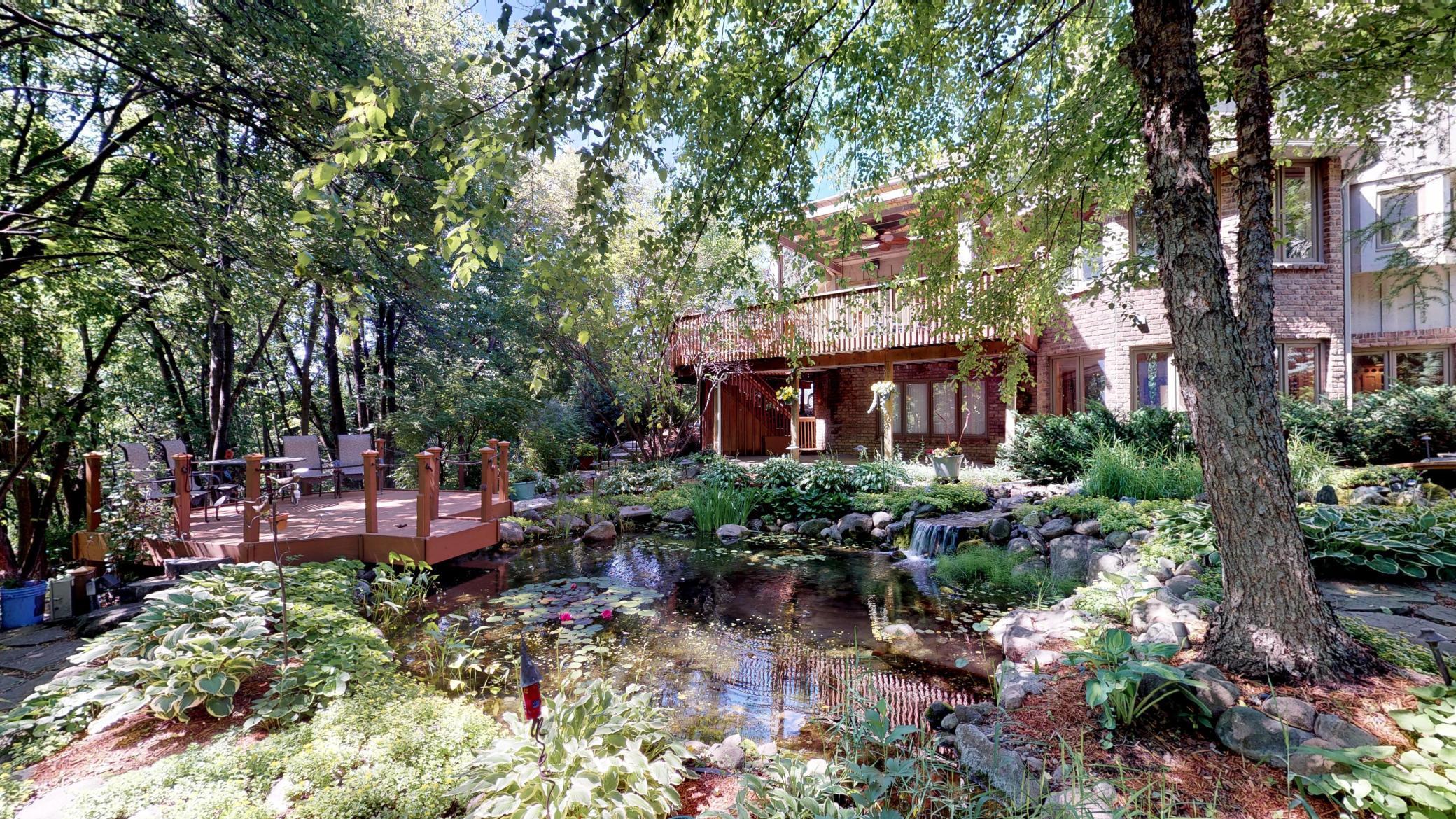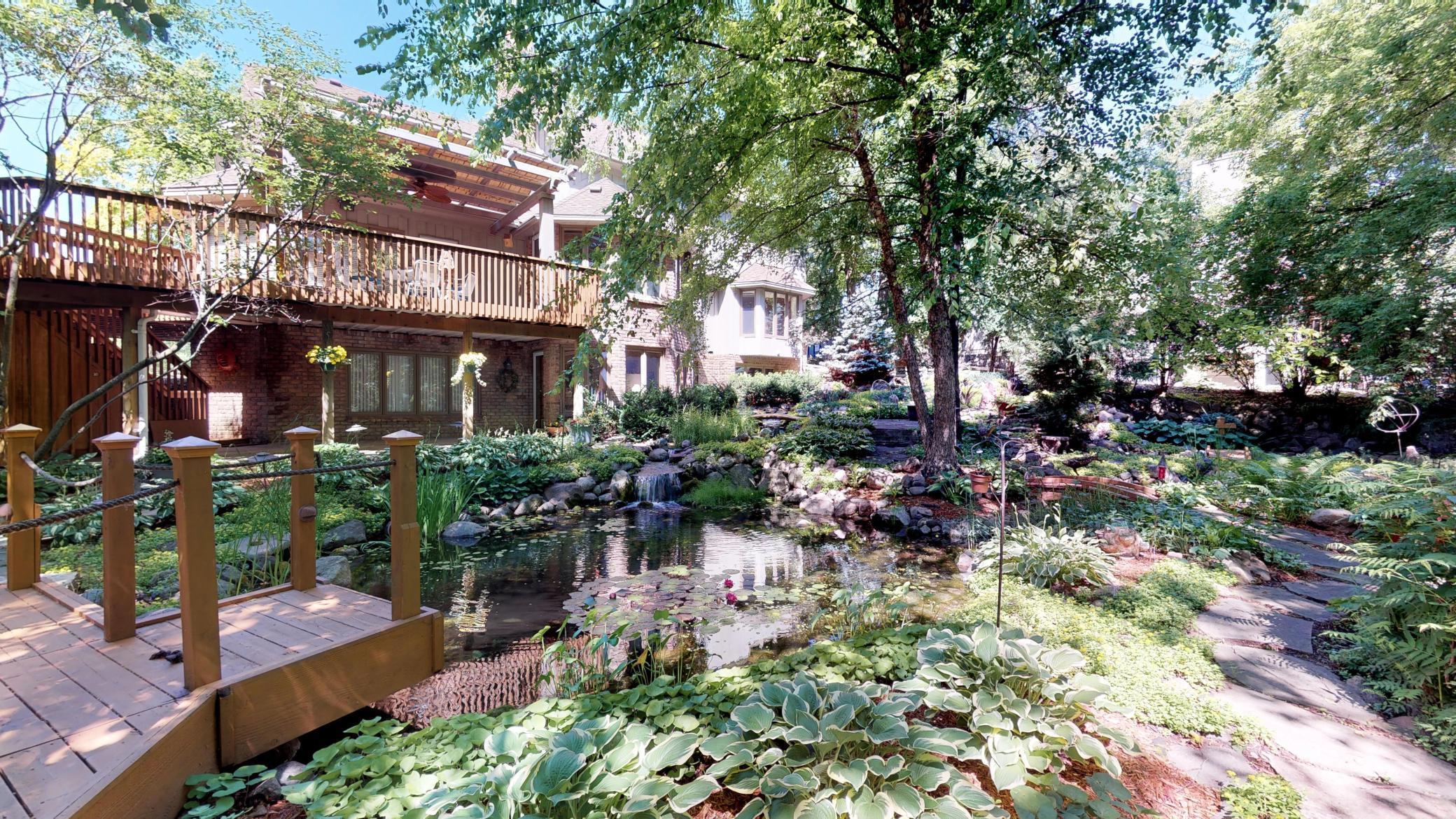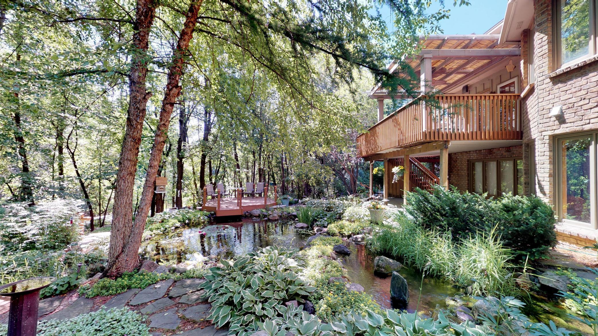 **Offering allowance for new flooring on main and upper levels with acceptable offer.** Welcome to your own private oasis in the heart of Minnetonka! This one-of-a-kind property is nestled against 4.8 acres of protected creeks, wetlands, and lush woodlands, offering peace and seclusion yet just minutes from the vibrancy of Downtown Wayzata and Lake Minnetonka. Step into elegance the moment you arrive. The grand two-story foyer greets you with a striking split staircase and classic wood banisters that set a timeless tone – both dramatic and welcoming. Natural light accentuates the spacious feel, and the open views into the adjoining Living Room create an inviting flow for both everyday living and entertaining. Large picture windows in the Living Room frame peaceful views while the generously sized Dining Room is waiting for your next holiday or gathering. Featuring granite countertops, custom cabinetry, a large center island with cooktop, and a sun-filled bay window overlooking the backyard, the Kitchen has phenomenal storage and brick surround indoor grill. The Sunroom will quickly become one of your favorite spaces with its vaulted wood ceiling and panoramic windows - perfect for morning coffee or evening relaxation. Warm and inviting, the main level Family Room is made for gatherings! A stunning brick fireplace with rustic mantel sets the tone, while built-ins and a wet bar add convenience and charm. Sunlight pours through the walls of windows, highlighting the wood-beamed ceilings and knotty pine walls. With direct deck access and serene views, it’s the perfect spot to relax or entertain year-round. All 5 bedrooms are generously sized with ample closet space and unique charm. The walkout lower level is its own sanctuary with a large wet bar area, wine room, second Sunroom and Amusement Room - flexible spaces ideal for cozy evenings by the fire, hosting gatherings, or creating a dedicated media/exercise room. An external generator provides peace of mind and ensures comfort no matter the weather. The expansive wrap around deck and pergola provide the perfect backdrop for entertaining or unwinding. Wander through the trails in the serene backyard complete with 2 waterfalls, a private pond and charming gardens – your private nature retreat. Be sure to take the virtual garden tour in the links! Whether you’re drawn to the tranquil sound of waterfalls or the spacious interior designed for gatherings, this home provides it all in a convenient and desirable Minnetonka location.