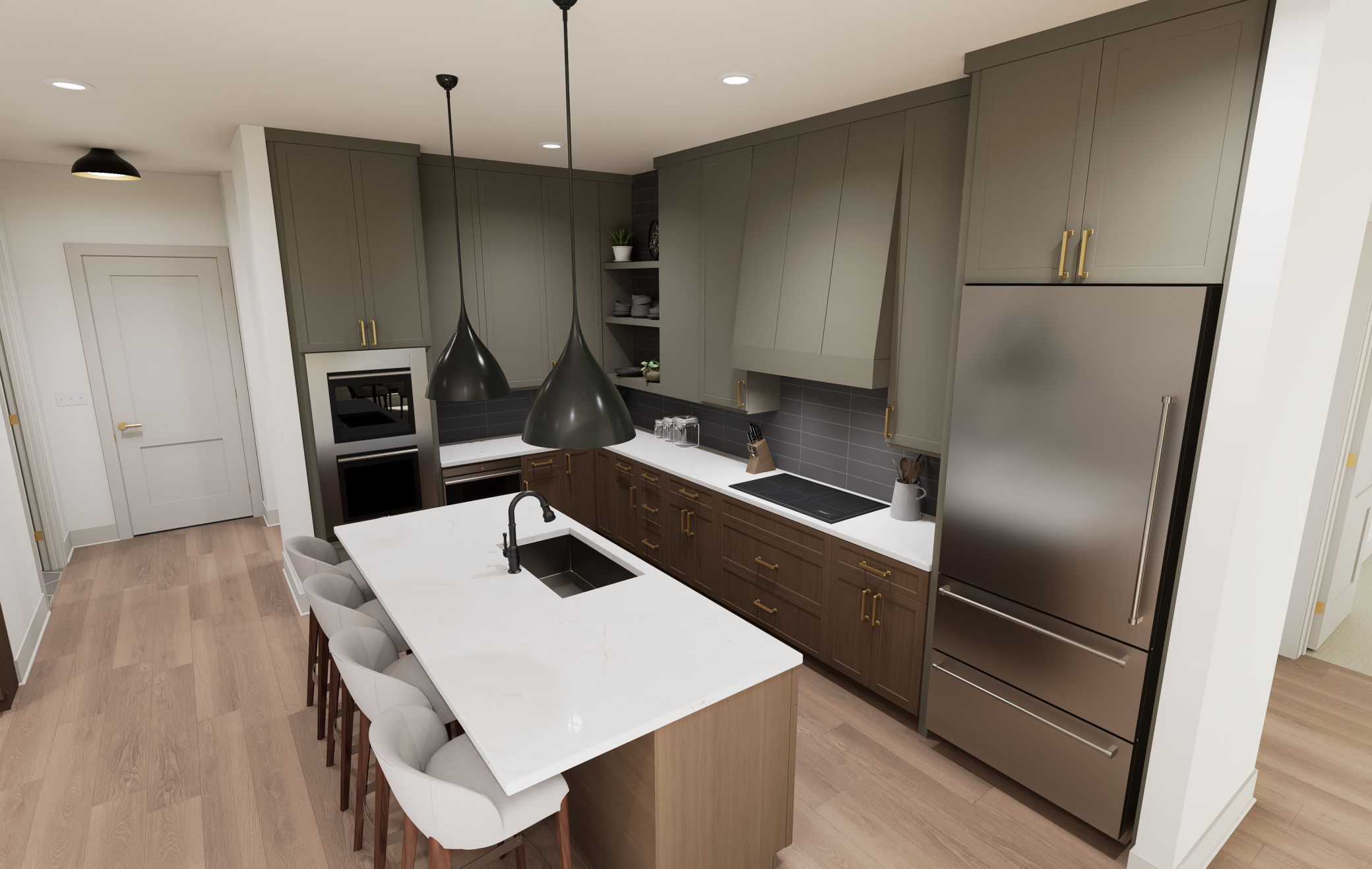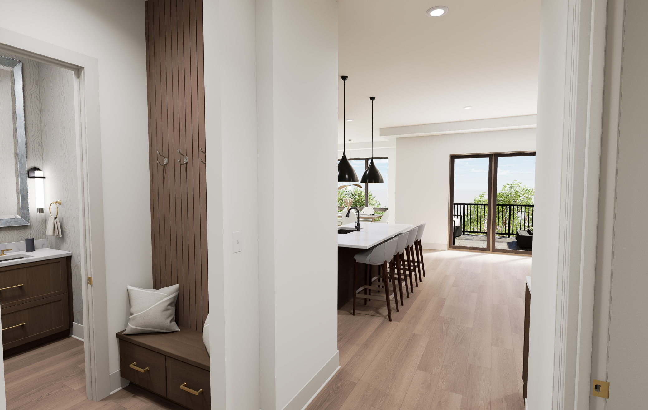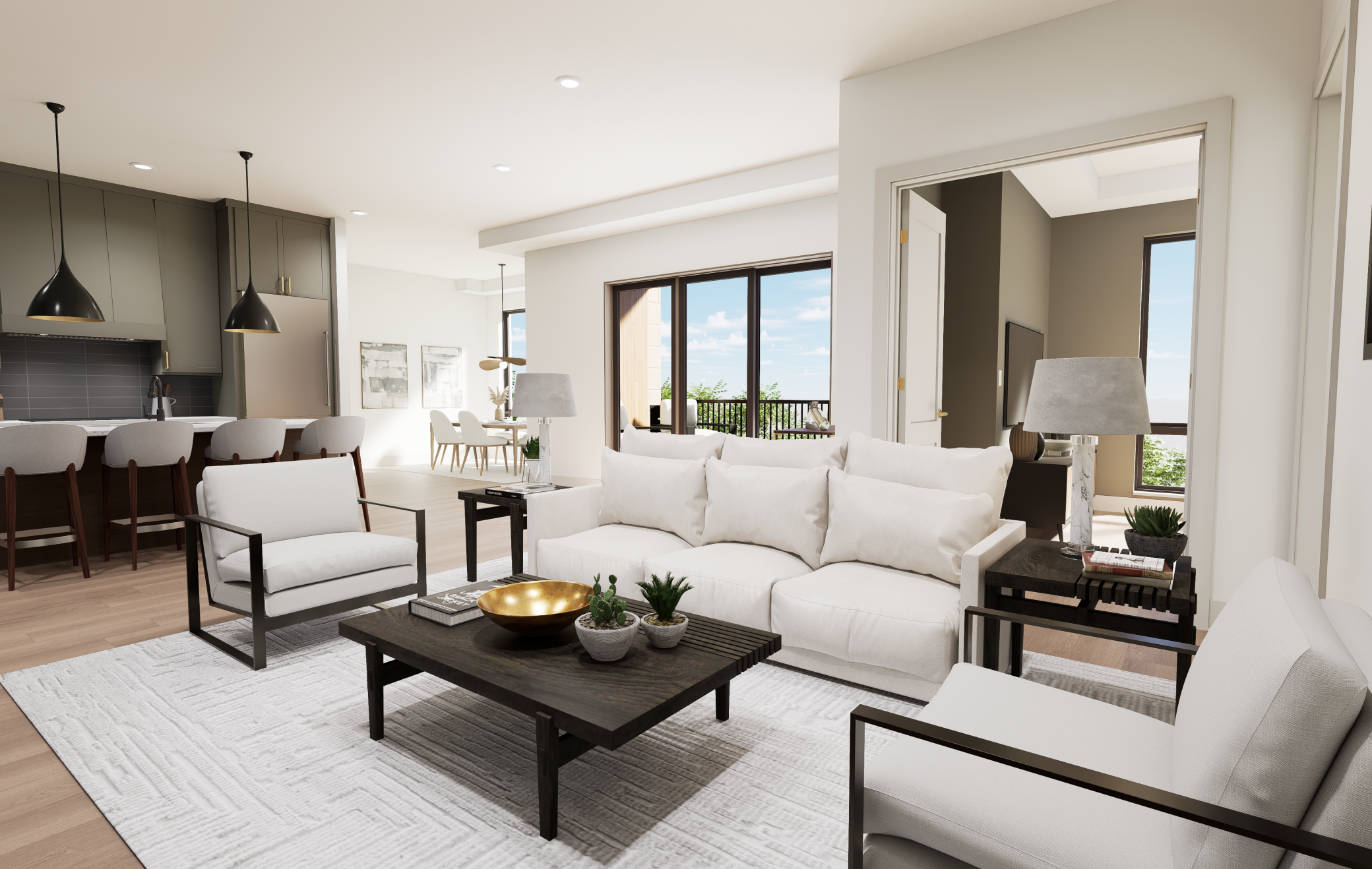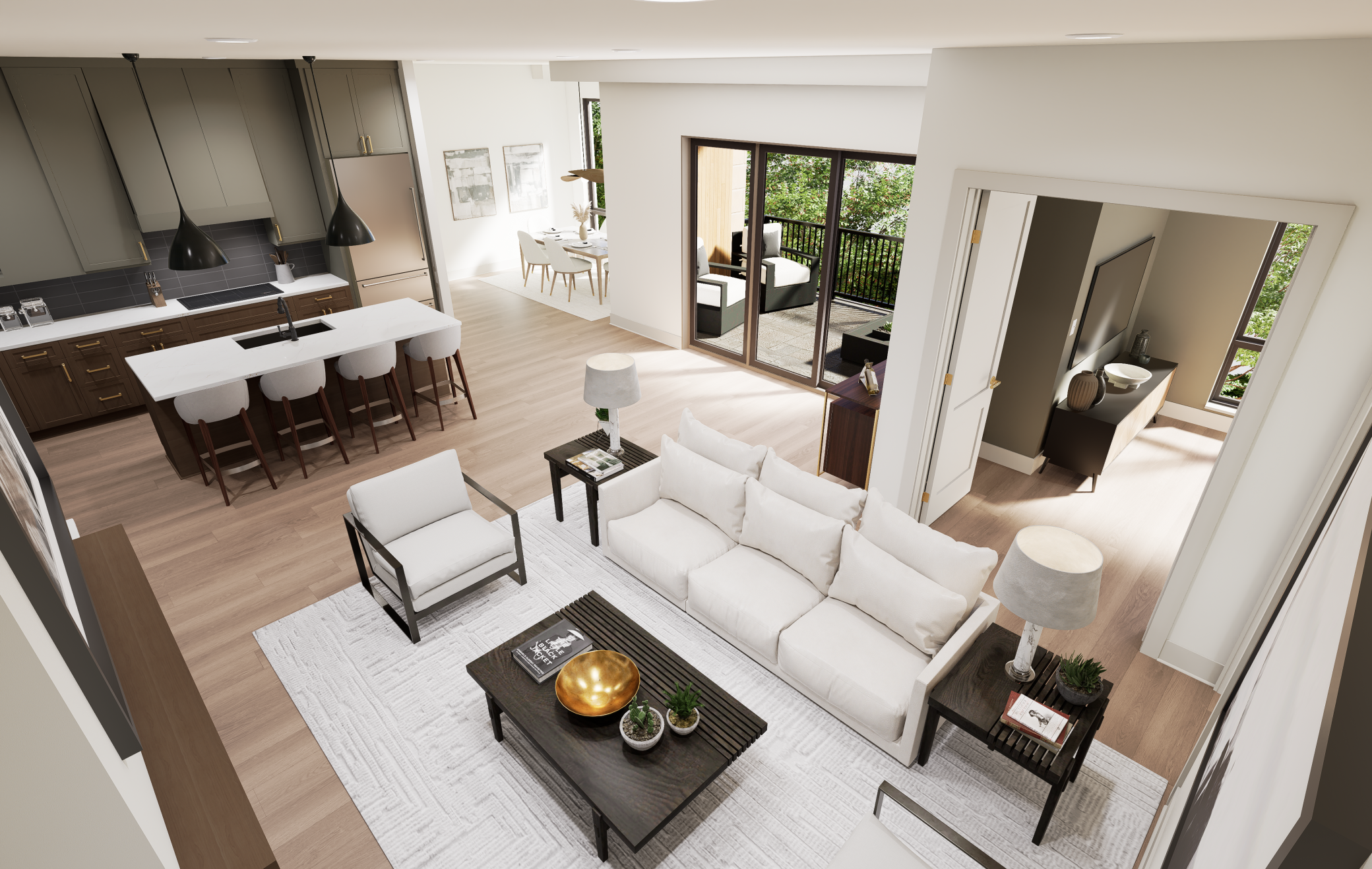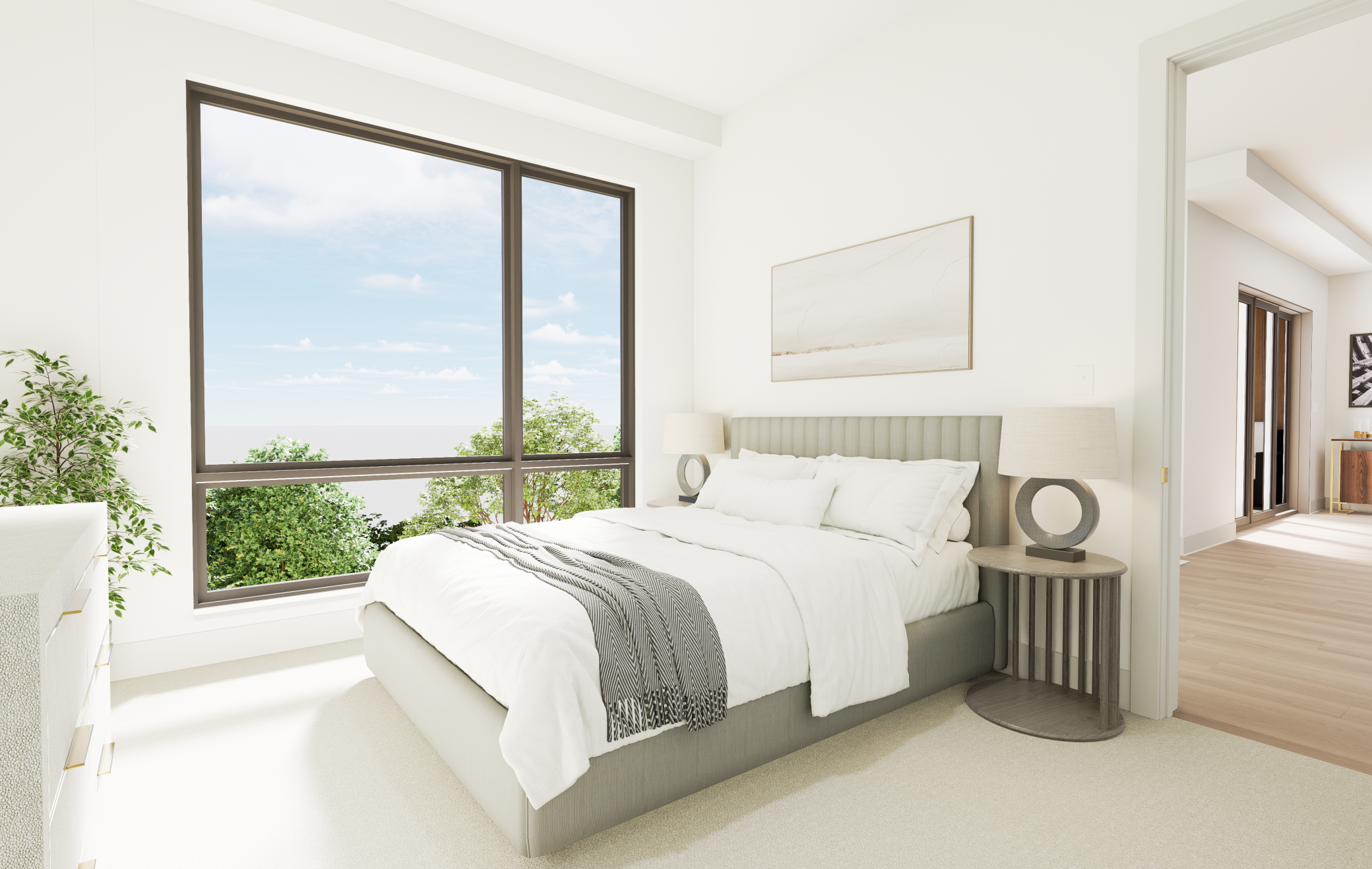 Welcome to The Fletcher Condominiums in Linden Hills, where modern living meets community charm. Discover The Fletcher Condominiums, an exclusive collection of 15 boutique residences coming soon to the heart of the storied Linden Hills neighborhood. These exceptional homes will offer spacious, single-level living, ranging from 1,600 to 2,400 square feet. Every residence will be a corner unit, boasting two or three walls of windows that provide stunning views, natural light, and cross-ventilation through operable windows. With floor-to-ceiling windows and soaring 10-foot ceilings, each home will be filled with light, creating a bright, airy ambiance. Quality craftsmanship and meticulous attention to detail will be evident throughout. Residences will feature premium finishes, including red oak hardwood floors, chef-inspired kitchens equipped with professional-grade Sub-Zero and Wolf appliances, elegant quartz countertops, and custom cabinetry. Buyers will be able to personalize their homes by selecting from three professionally curated interior design packages. Private outdoor spaces are designed as extensions of each home, offering a seamless connection between indoor and open-air living. Select first and fourth floor units will include expansive private terraces, with some spanning up to 1,340 square feet. Every residence will also include two dedicated, secure underground parking spaces. Residence 5 is bathed in daylight through expansive, full-height windows lining the north and east sides. A spacious and secluded 155-square-foot outdoor terrace, with a direct gas hookup, flows seamlessly into the wide-open great room, which separates two en-suite private areas. The oversized primary suite includes a cozy sitting nook with corner windows, a walk-in closet, and an en-suite bathroom. On the opposite side of the great room, the secondary suite accommodates a queen-size bed and features a walk-in closet and private bath. Off the great room, the den offers a versatile space perfect for a study, sitting area, or third bedroom. The large, high-end kitchen connects directly to a generous walk-in pantry and a convenient storage area. Laundry services are thoughtfully integrated, with dedicated rooms at the entry that include a drop area and a third bathroom.
