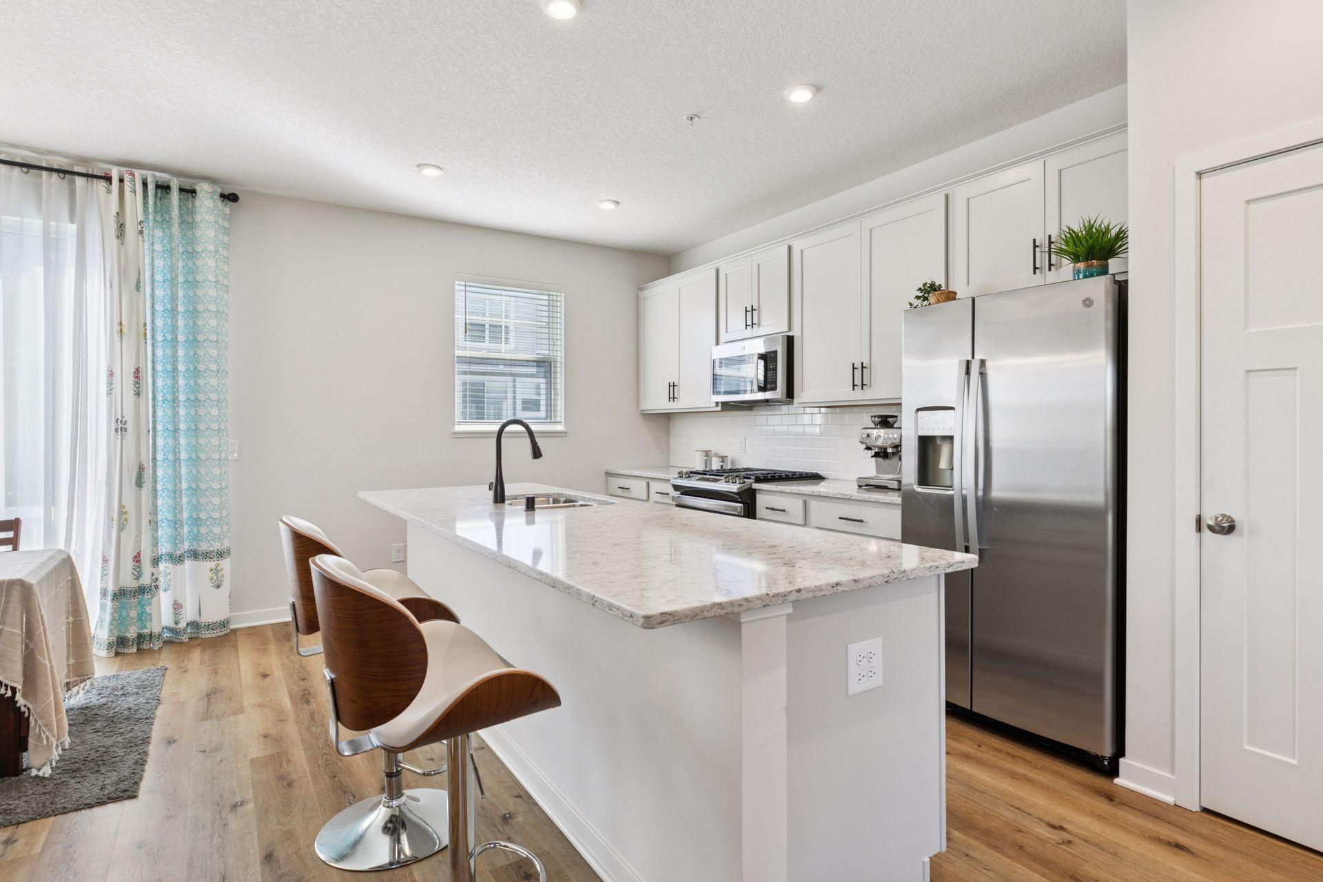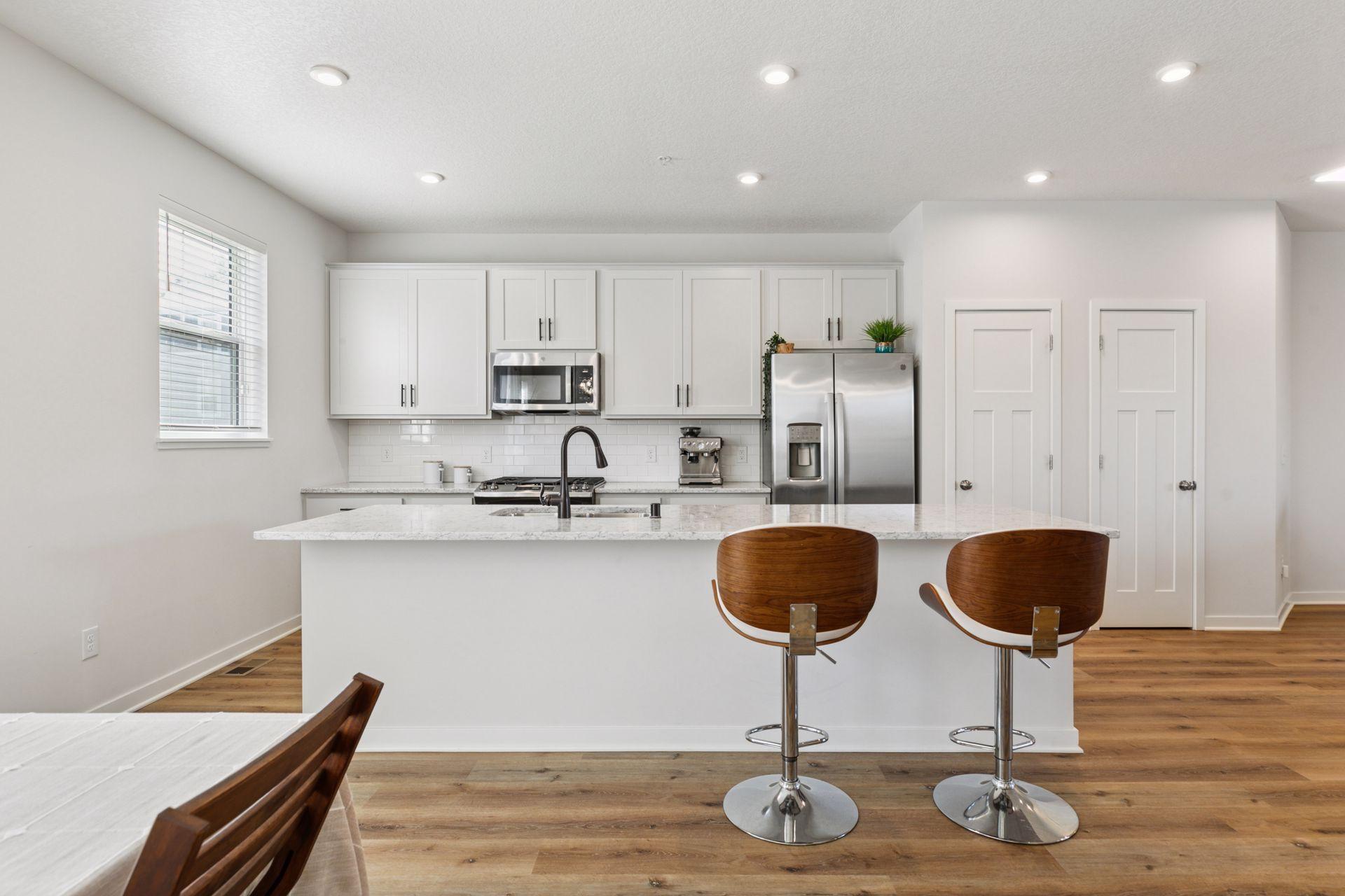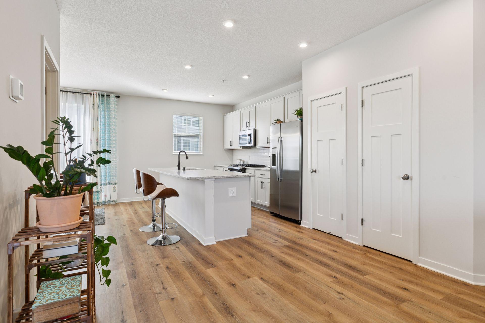 This beautiful townhome was built in 2021.You will enjoy this 4 year old townhome with a very open main floor plan design. Relax in the large family room by the electric fireplace or out on the deck. The kitchen boasts oyster cabinets, stainless steel appliances, a large center island and quartz countertops. On the upper level you will find a large owner's suite with its own private bathroom along with two additional bedrooms and laundry. The lower level recreation room is finished for extra livable space. Home offers plenty of natural lighting. Enjoy the convenience of being just a 5 minute walk to Lake Josephine, where you can take in a beautiful sunset or enjoy a refreshing summer swim. It is also just a 5 minute walk to Showtime Studio and Coffee, a local favorite for live music, great coffee, and music lessons. Located in a well-maintained association community, close to shopping, restaurants, walking trails, and major freeways. This move-in-ready, turn-key home is a must-see!