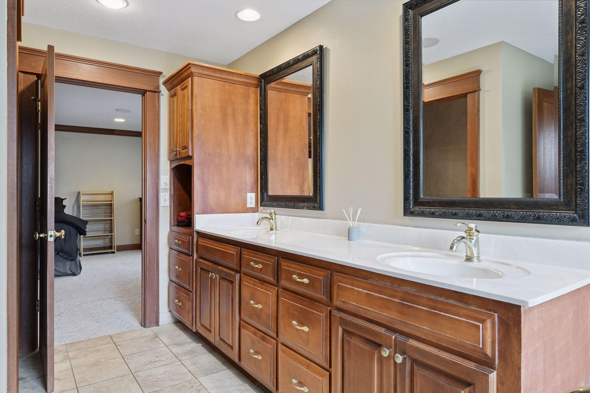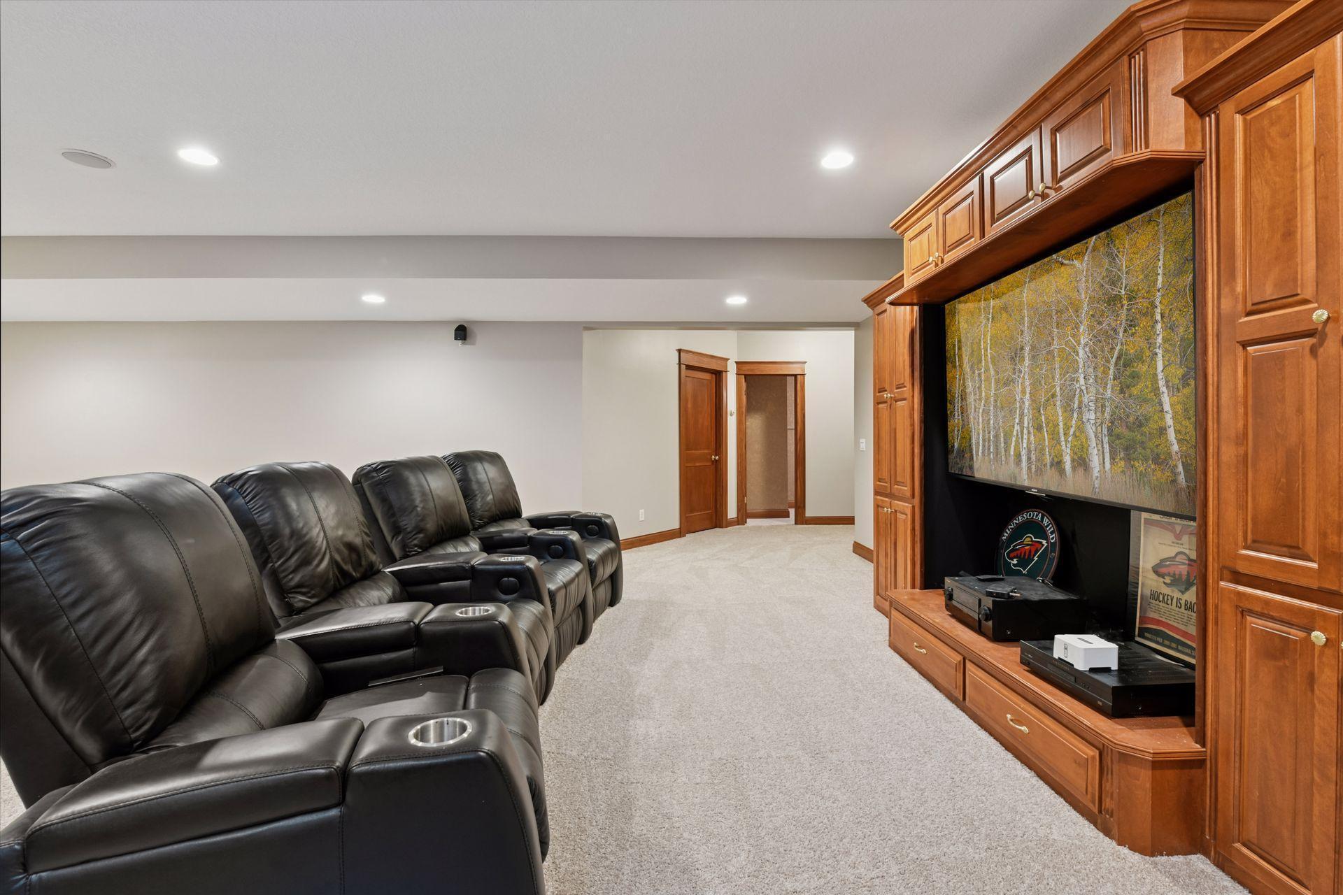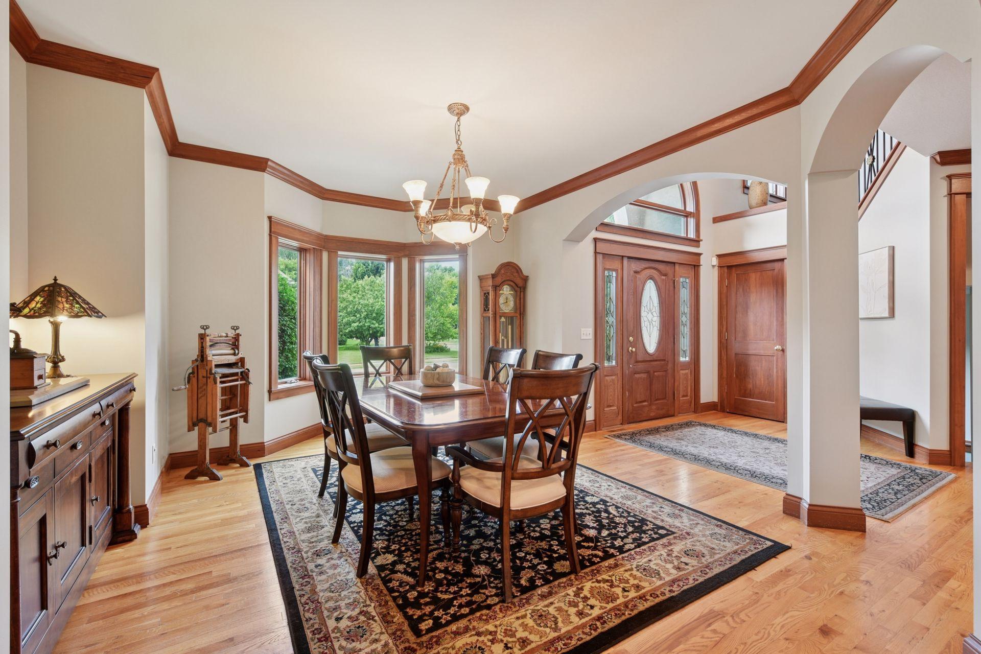 Custom, quality 2-story finished on all levels gracing large corner lot with adjacent park in high demand Autumn Woods. Dramatic soaring ceilings in the entryway greet your guests, along with hardwood floors and a lovely view of the open main floor. This home features the connected but open main floor living that you’ve been looking for – notice how the spacious living room flows effortlessly into the informal dining and kitchen. Living room is anchored by gas fireplace with pretty stone surround. The kitchen provides ample counter space and stainless-steel appliances, including a high-end Viking oven. Informal dining sits between the kitchen and living room and sports great backyard views and easy access via the updated sliding door. Formal dining is just off the entryway and is open to the whole main floor. My goodness, look at your lovely home office – moody and private, this office makes working at home enjoyable. Note the great wet bar! The back hallway of the main floor is all business with a huge closet, private powder room, and separate laundry room – so helpful! Heading upstairs you’ll note the brand-new carpet and lovely open staircase – adding drama and beauty. The primary bedroom is a spacious retreat with its own gas fireplace and sitting area, plus a private bathroom and walk-in closet – a wonderful place to wind down at the end of the day. Three large junior bedrooms and a very helpful junior bathroom (with two sinks and shower/stool separate) round out the upstairs. Keep going because you’re not done yet – head downstairs to experience the fun! Fifth bedroom and three-quarter bathroom are downstairs and create great guest area. Lower level features in-floor Wirsbo heating plus a huge family room and amazing rec room with built-in hockey training. Your backyard and side yard provide so much space to play and entertain – don’t miss the patio and pergola to soak in those summer and fall evenings. Pergola just refreshed in July. Entire exterior professionally painted July 2025. Adjacent park adds additional space for fun. Don’t miss the finished, large garage with included extra refrigerator. So close to Target, Cub, Home Depot, Costco, and with excellent schools (and school choice, if desired). Easy commute and great access to main roads but in quiet neighborhood. This home has everything you’ve been looking for to live the life you’ve imagined.