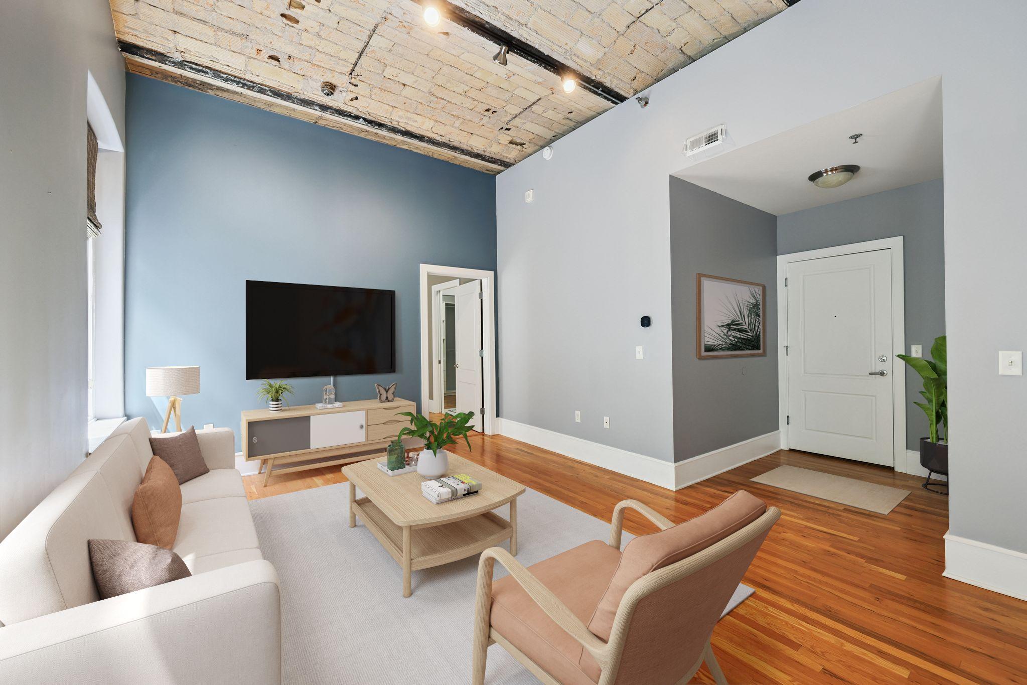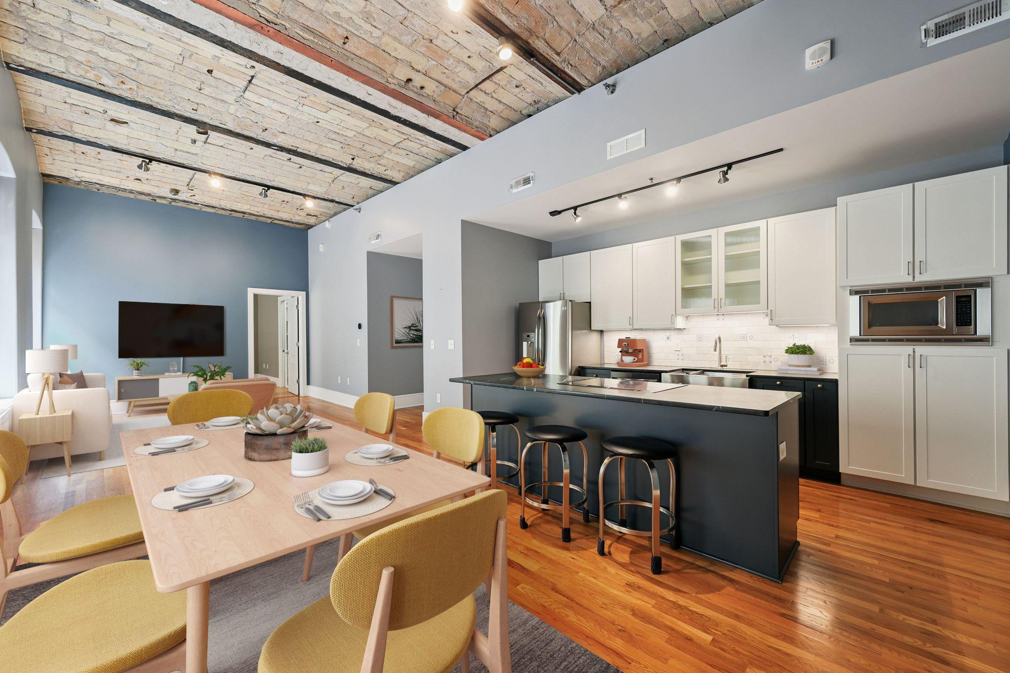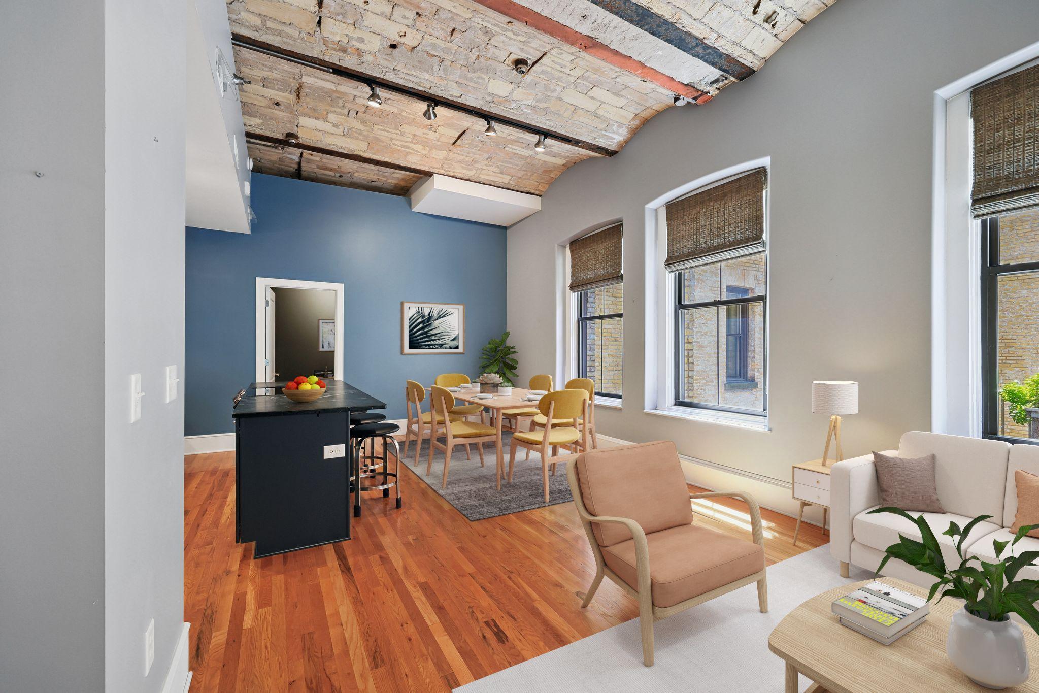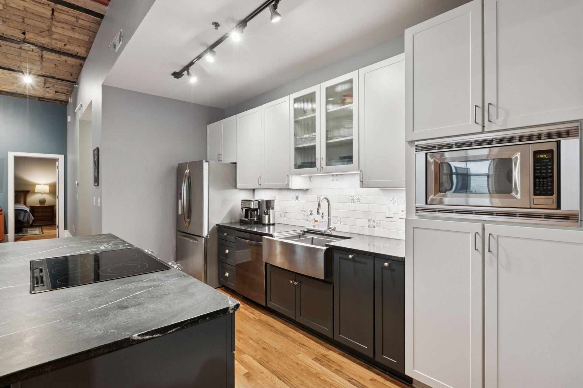 No need to worry about parking — this loft includes TWO dedicated off-street parking spaces in a fully covered/semi-enclosed parking ramp that’s secured and located directly across the street, plus BONUS guest parking. In downtown St. Paul, having two assigned stalls and free guest parking is almost unheard of. The covered ramp shields vehicles from the elements, and for weekly grocery runs, most residents simply keep a collapsible wagon in their unit — the same setup used in buildings with underground parking. Urban living made easy — convenience without compromise. Step inside and immediately feel the character of this exceptional 2BD/2BA Lowertown loft. Historic charm meets thoughtful modern design with soaring 12’ brick barrel ceilings, solid oak hardwood floors, and oversized windows that frame the private courtyard. Natural light fills the open living and dining areas, creating a warm, inviting backdrop for everyday living or entertaining. The kitchen blends function and sophistication with soapstone countertops, a new island with custom lower cabinetry, and stainless-steel appliances. Both bathrooms were taken down to the studs and rebuilt in 2024, featuring walk-in tile showers, custom cabinetry, and timeless black-and-white finishes. The primary suite includes custom closet organization and a cleverly concealed washer/dryer. The second bedroom features a custom Murphy bed with integrated shelving — perfect for guests, a home office, or both. Building amenities extend your living space with a fitness room, party room, courtyard patio, bike storage, and an additional storage locker. And when you’re ready to venture out, everything is at your doorstep — CHS Field, the Farmers Market, breweries, parks, river trails, and dining. Union Depot also sits just blocks away, offering effortless access to Amtrak, Light Rail, Rapid Transit, and airport connections, along with a full calendar of year-round community events — from winter markets to summer festivals. Here, convenience isn’t an extra. It’s the lifestyle.
