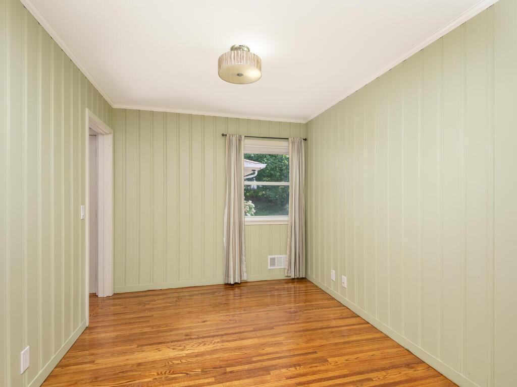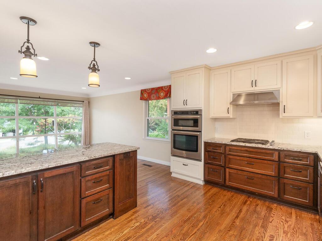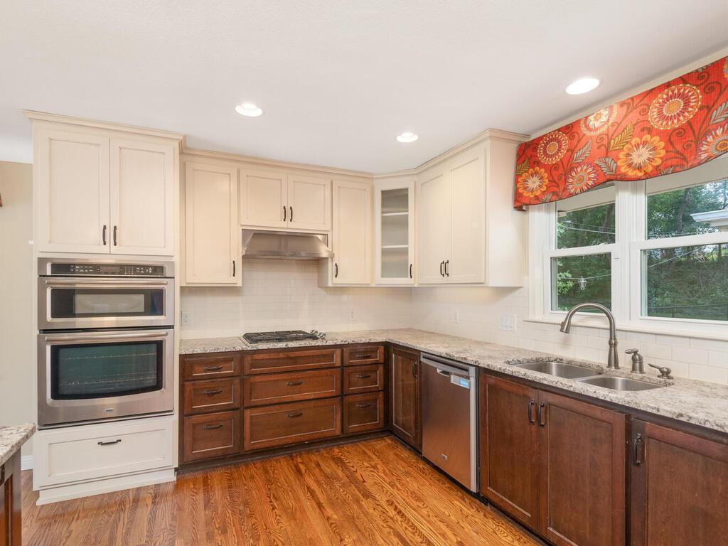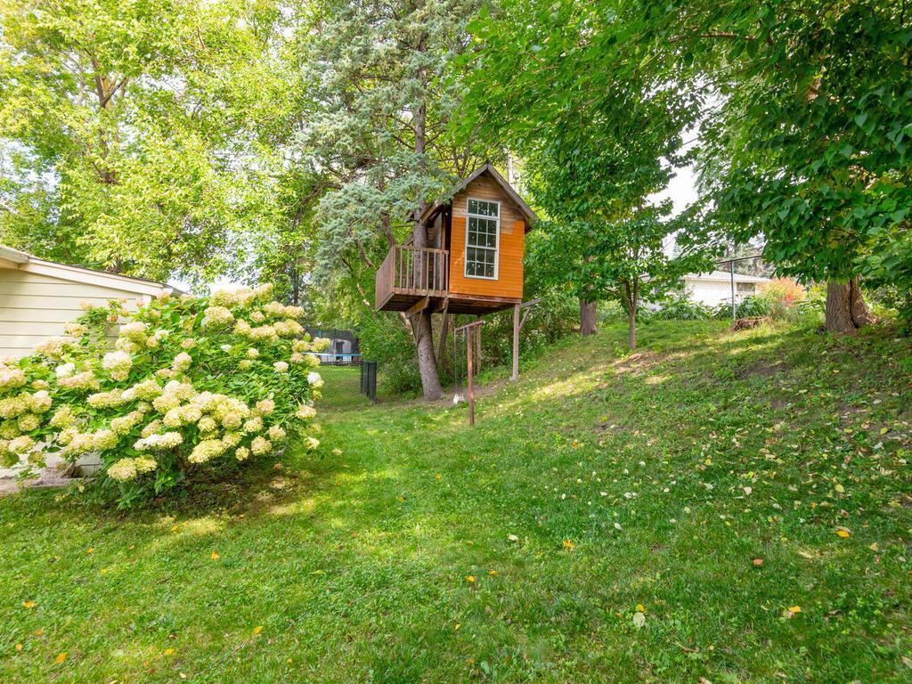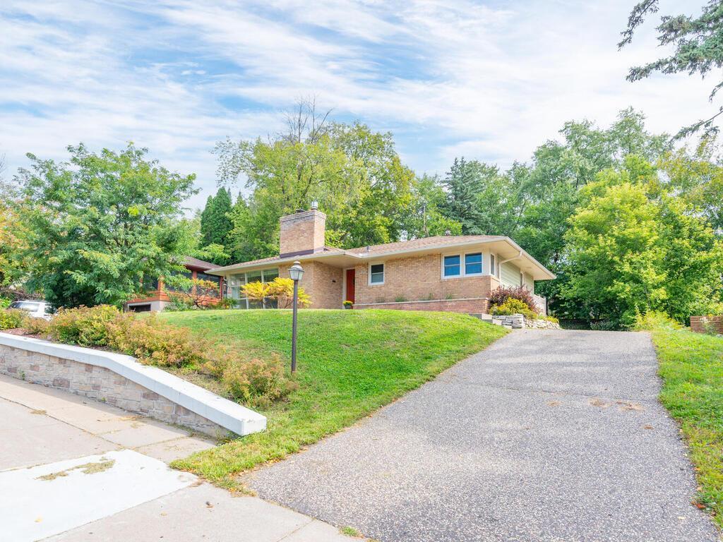 This beautifully maintained Mid-Century home blends timeless charm with thoughtful updates and a bright, open-concept floor plan designed for comfortable everyday living and easy entertaining. The inviting brick exterior, hardwood floors, two cozy fireplaces, and elegant cove ceiling showcase the home's character and warmth. A striking 9-pane, angled mid-century modern wall of windows fills the spacious Living Room with natural light and seamlessly connects to the stylish, updated Kitchen—perfect for hosting large gatherings. The Kitchen features sleek granite countertops, stainless steel appliances, a gas cooktop, recessed and under-cabinet lighting, and a functional peninsula with storage and casual breakfast bar seating. Two main-level bedrooms include mirrored closet doors – classic to this period, while the third bedroom, with French doors, offers a flexible space for a bright and quiet home office. The updated full bath includes a dual-sink vanity, jetted tub, tile floor, and tiled shower surround. The finished lower level expands your living space with a large and welcoming Family Room with recessed lighting and a gas brick fireplace, plus a private fourth bedroom and stylish ¾ bath with a floating vanity, vessel sink, and raised shower “tub”—ideal for pet baths. Outside, enjoy a fenced dog run, a whimsical treehouse, and a private 20x10 patio—great for relaxed outdoor gatherings. The extra-wide 2-stall garage includes a convenient built-in workspace. Just a short stroll to Silver Point Park and only ½ mile to the Community Center, Water Tower Park, and the High School. Less than 10 minutes to Rosedale Center and an easy drive to downtown Minneapolis or St. Paul.