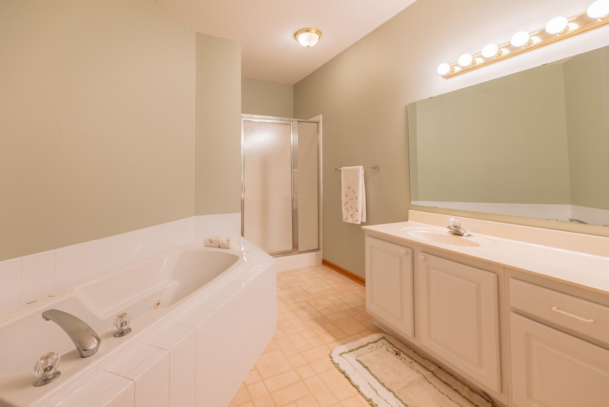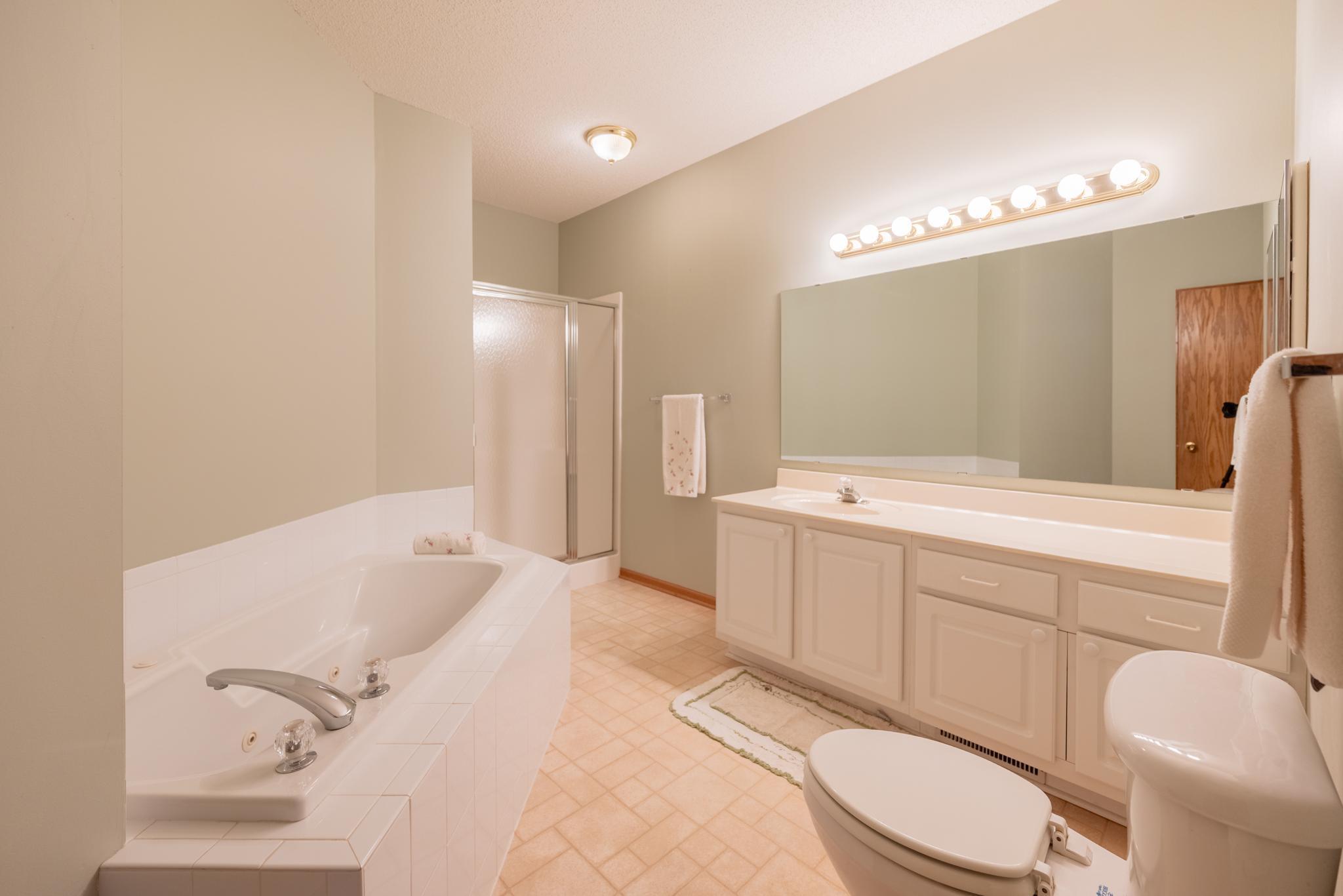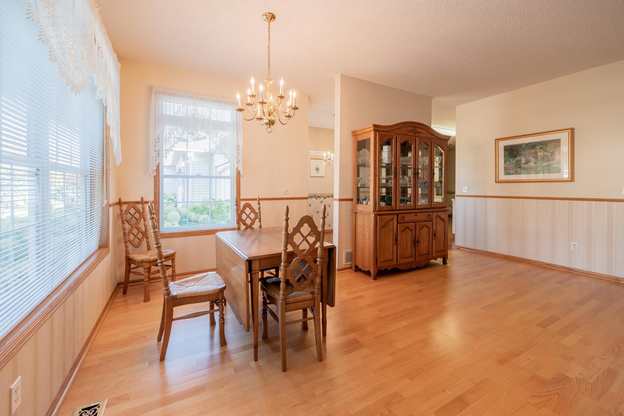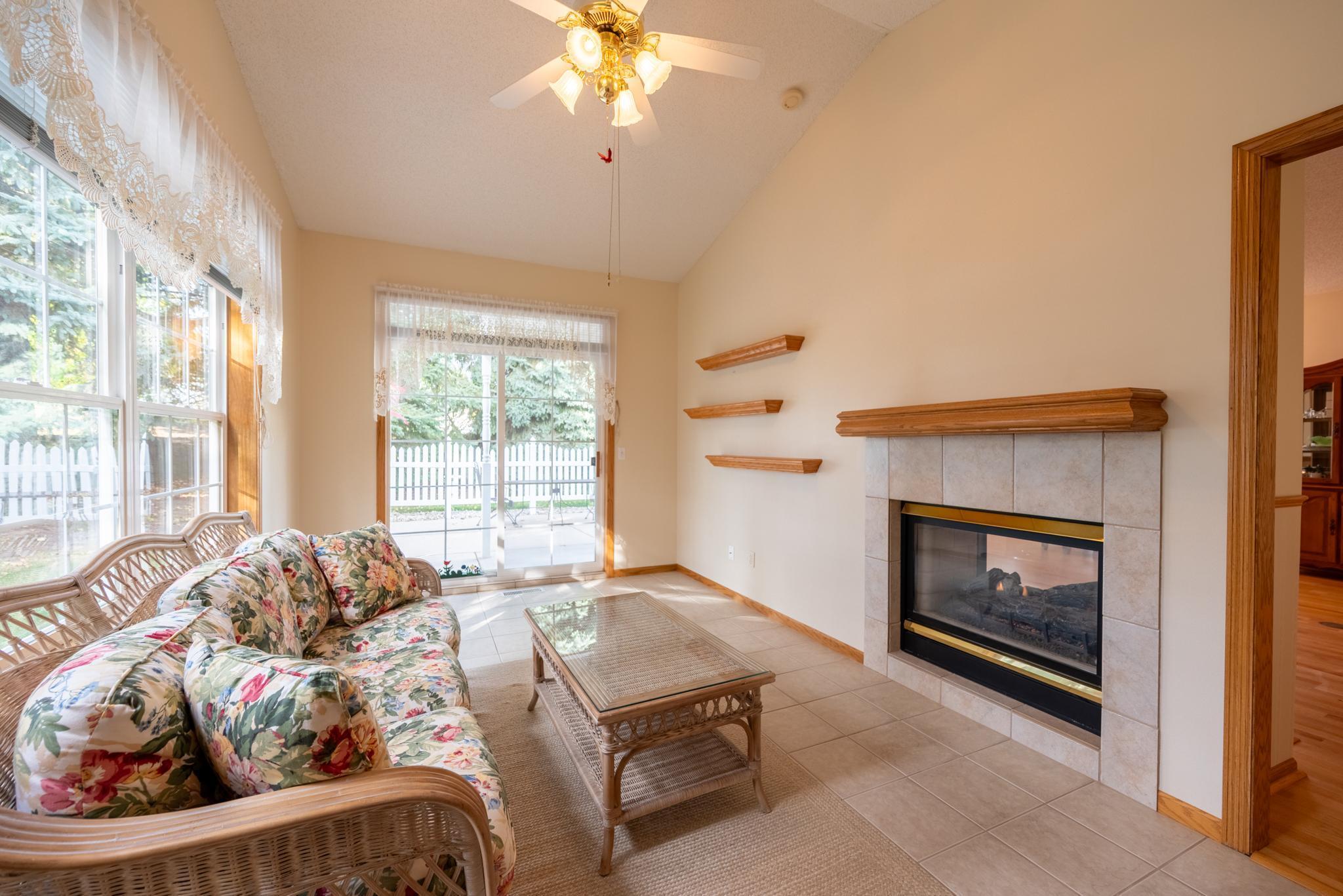 Welcome to this well maintained home in the highly desirable Timberwood Village 55+ community! The home features one-level living with spacious light-filled spaces throughout. Social floorplan includes a living room with pass-through gas fireplace, kitchen with new dishwasher, plenty of counter and cabinet space and space for bistro table, separate dining area, and relaxing sunroom. The primary bedroom includes an attached full bath with soaking tub, separate shower, and a walk-in closet. A shared bath with walk-in shower is conveniently located outside the secondary bedroom and living area. The mudroom/laundry room features double closets for storage that lead to the 2 car garage with workshop bench. Furnace, A/C, water heater, water softener, all updated. Hard to find a cleaner home than this! ->Plenty of shopping, walking paths, and Eagan Community Center with activities and weekly Wednesday Farmers Market a short walk or drive away! Clubhouse just down the road with exercise room for connecting with members of the community. <- Welcome home!