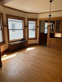 Now Available! Vintage Beautiful old world craftsmenship thru-out, natural woodwork, hardwood floors and built-in buffets! Spacious rooms, 2 BR, Tiled Bath, Spacious & Sunny New front porches, updated kitchens! Three season back porch! Upper level allows for a very Sunfilled unit! for Shared laundry in basement. Newer windows thru-out, garage and off street parking.