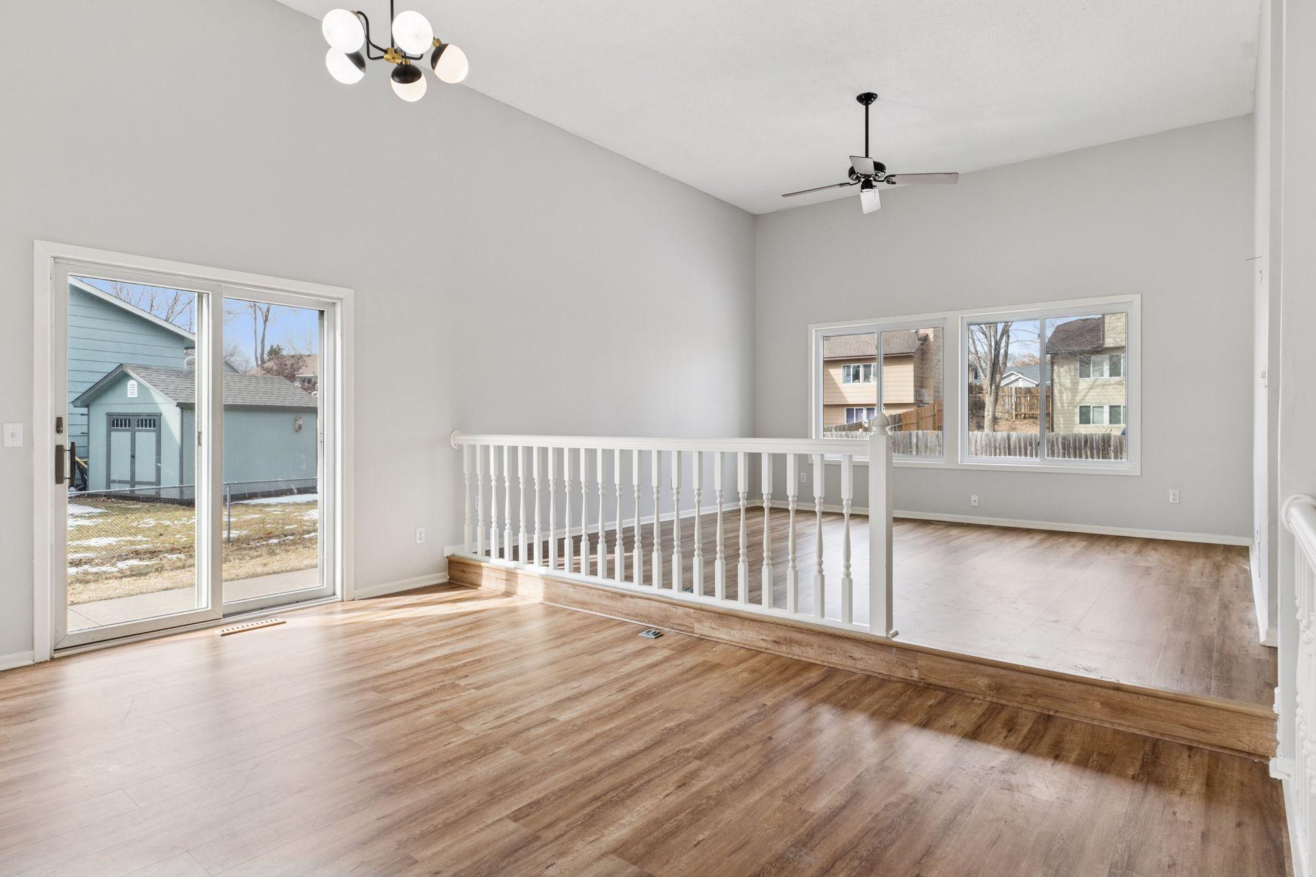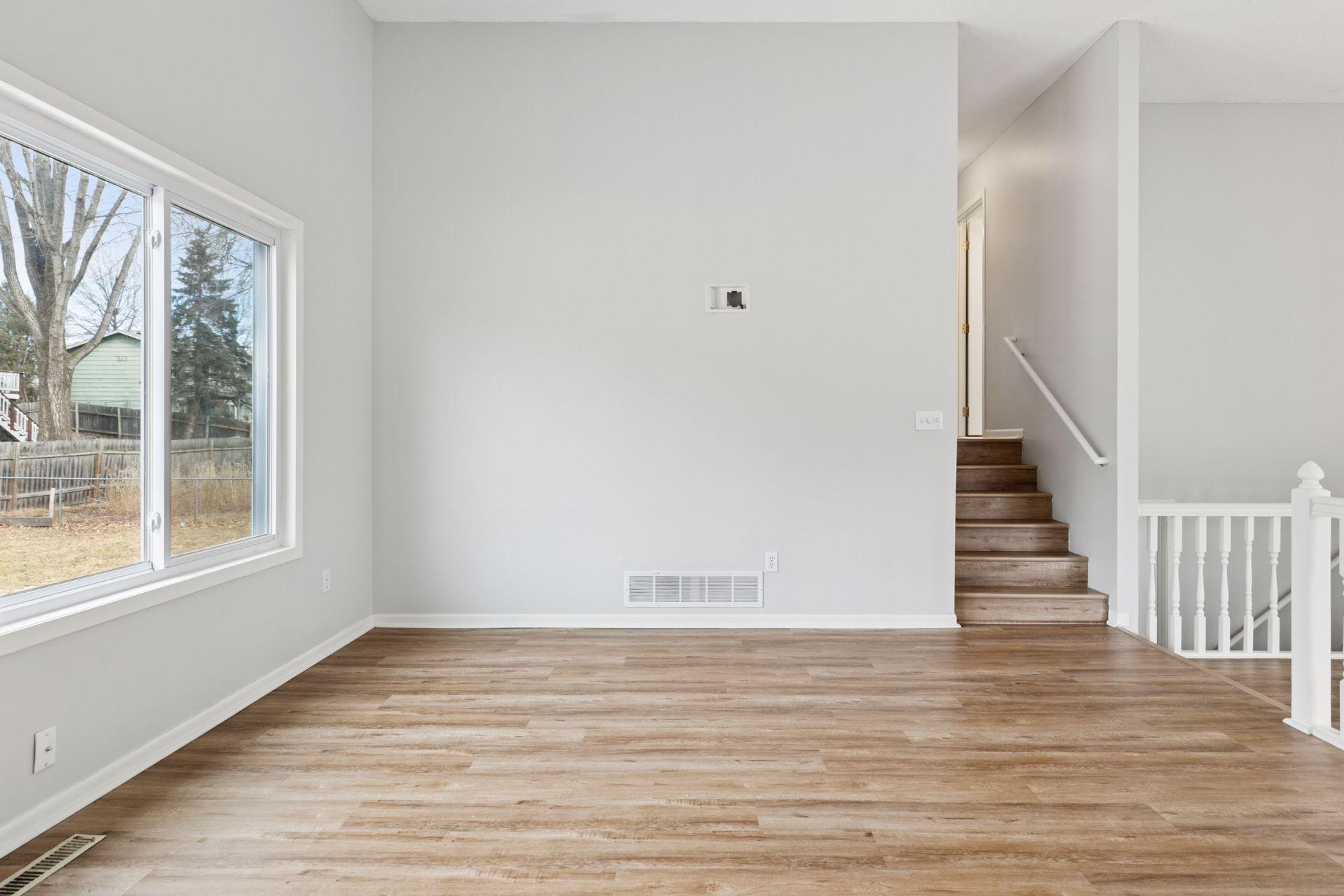 High demand location in top rated Mounds View school district. Wonderful home with great natural light, open floor design, spacious kitchen with informal dining room. Three bedrooms on one level, primary bedroom with private full bath. Huge unfinished lower level with wood burning FP and roughed-in bath. Big fenced in backyard, 22x12 concrete patio, 2 car garage.