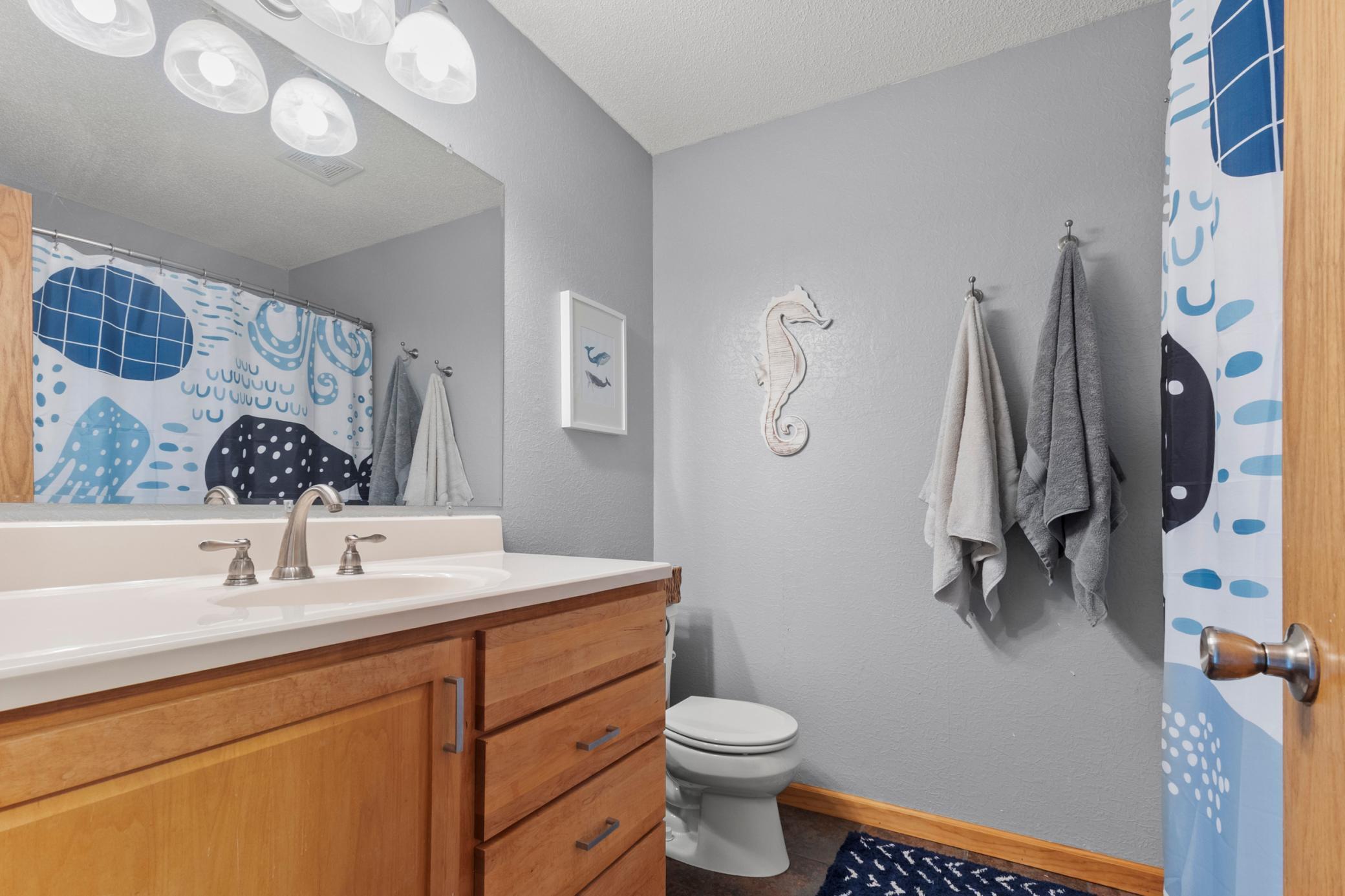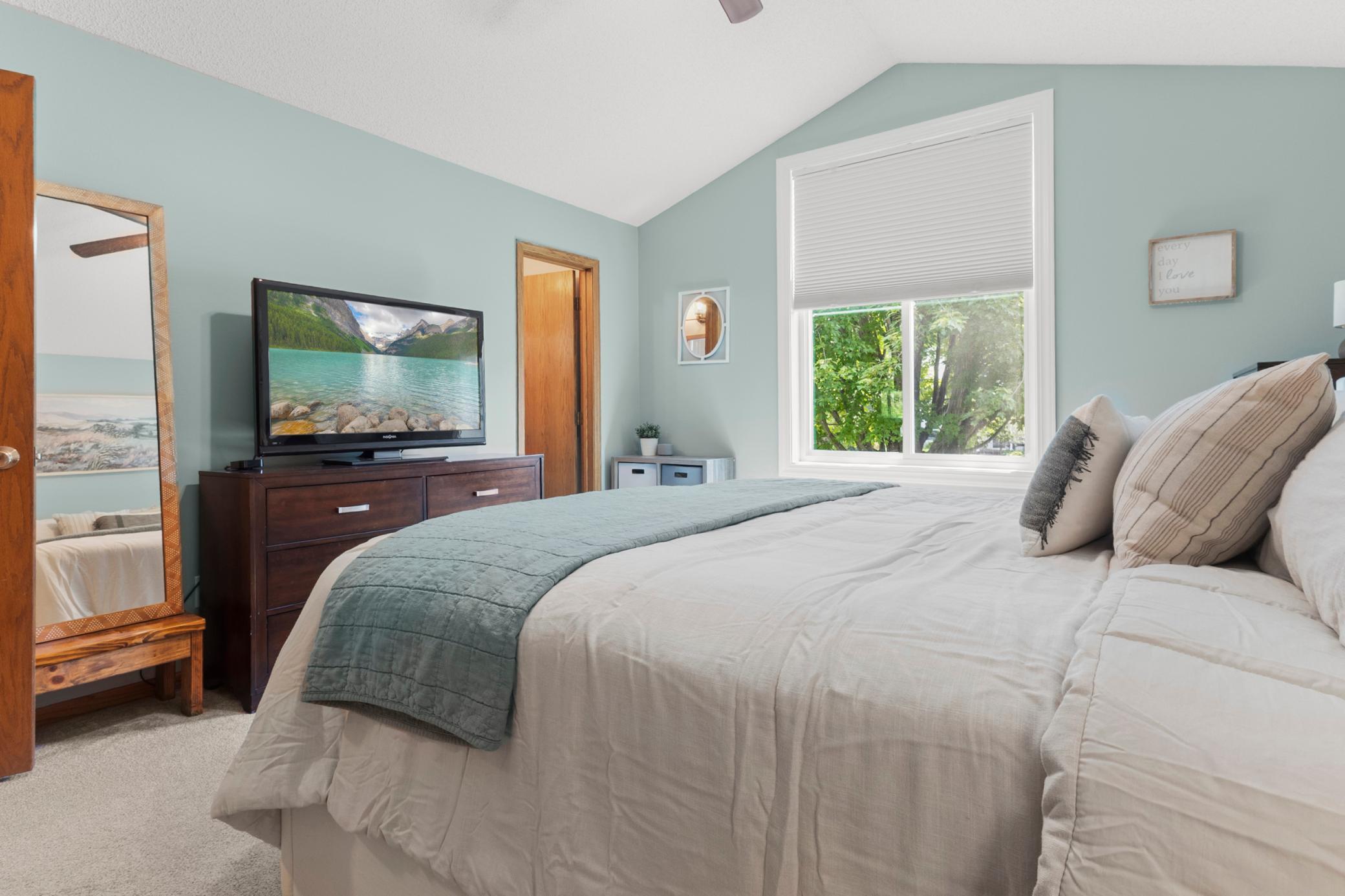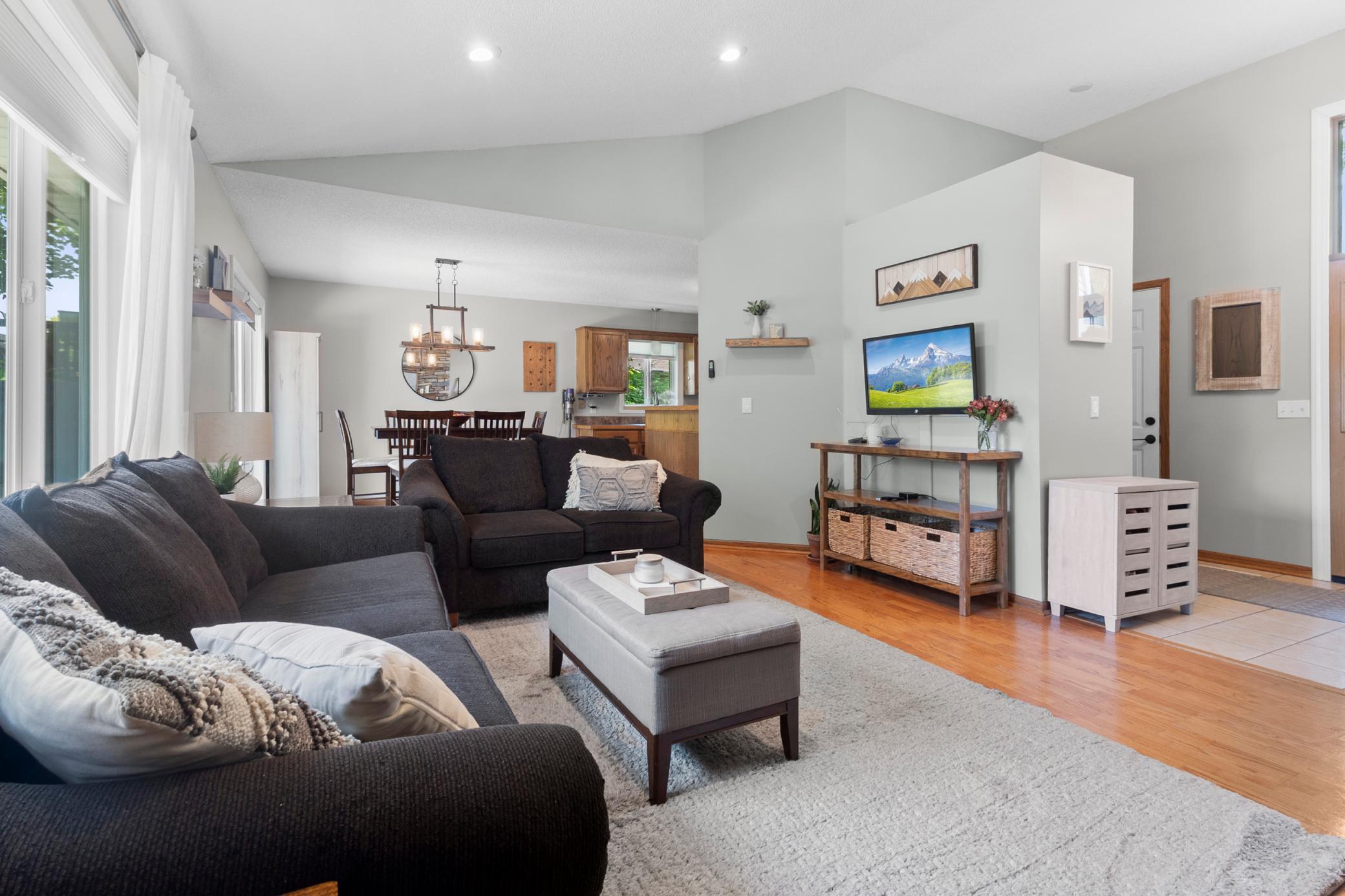 Welcome to 349 69th Street N! This tastefully designed home is located in the highly sought-after Mahtomedi school district and is nestled in a quiet neighborhood. The foyer welcomes you into the open main floor layout, featuring soaring vaulted ceilings and abundant natural light. Main floor rooms include a living room with a stone floor-to-ceiling gas fireplace, dining room with access to the backyard deck, and kitchen complete with stainless steel appliances and tons of cabinet and counter space. The upper level offers three bedrooms, including the master suite with an en-suite bathroom and wall-to-wall closets. Downstairs, you'll find a fourth bedroom, 3/4 bathroom, laundry, and a family/flex room with walkout access to the backyard. The only thing this home needs is you!