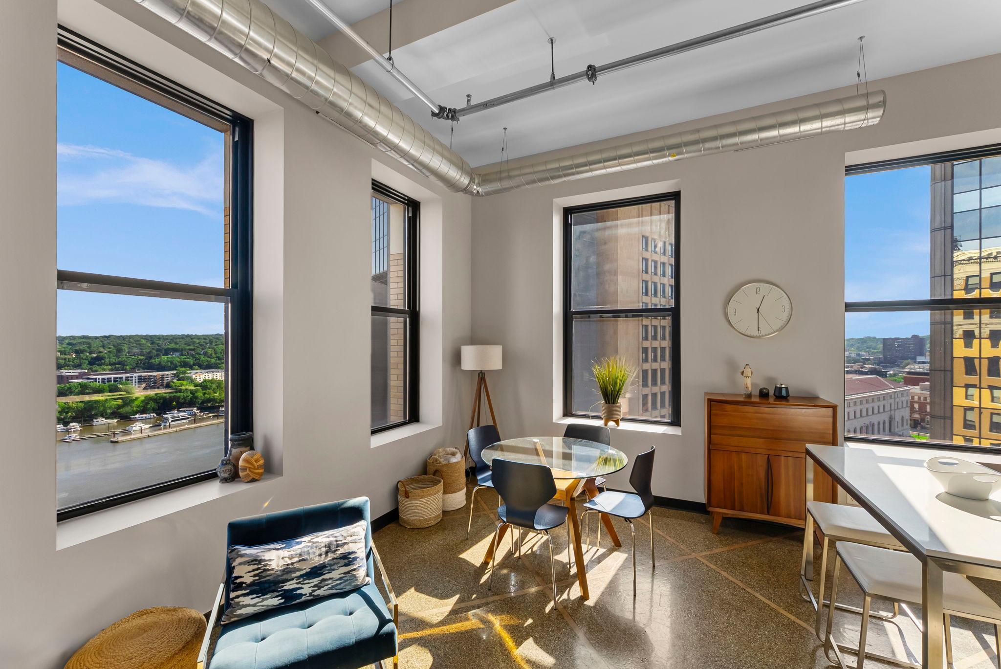*FREE PARKING!!* Seller is offering a parking spot in the ramp for one year upon a successful closing! This beautifully updated corner loft in The Lowry offers unparalleled urban living with truly exceptional scenic views. Enjoy 13-foot ceilings, huge 9-foot high operable windows, and original terrazzo tile floors. Numerous enhancements include upgraded lighting, closet systems, new HVAC, light-blocking shades, and newer appliances. Experience affordable luxury with association dues covering internet, heat, AC, security, water, recycling, trash, and direct skyway access. The Lowry boasts a strong HOA with no assessments and a recently redesigned lobby. Residents benefit from concierge service from a premier St. Paul hotel and convenient parking options, including monthly valet by contract and attached contract parking via skyway. This pet-friendly and non-smoking building is ideally located across from The St. Paul Hotel, above Sakura and Subtext Books. You're just blocks from the Ordway Center, Landmark Center, Rice Park, Xcel Energy Center (with skyway access for Wild games!), and renowned dining like The St. Paul Grill and Meritage. A short walk leads to the Mississippi River paths. This is hands down the best value in St. Paul!