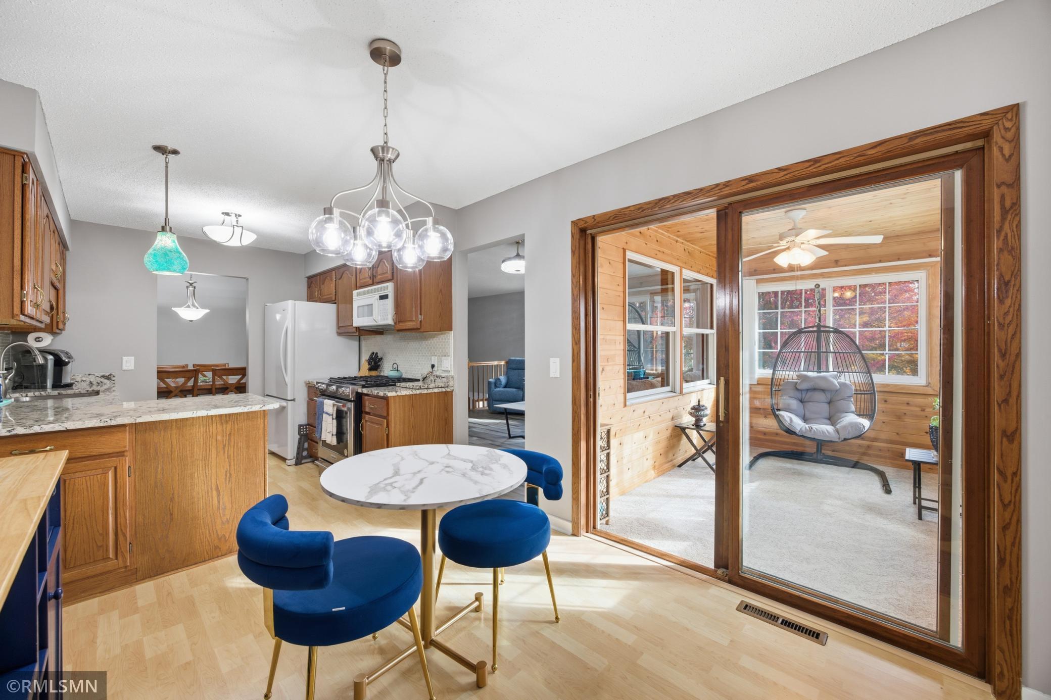 Simply Irresistible! This move-in-ready split-entry townhome offers 2,016 finished square feet of comfortable living space, featuring 3 bedrooms and 3 bathrooms. The main level includes a spacious primary suite with a large walk-in closet and private 3/4 bath, vaulted ceilings, and both formal and informal dining areas. Enjoy warm summer evenings in the inviting three-season porch. The lower level is designed for relaxation, showcasing a cozy family room and a four-season porch with a gas fireplace, perfect for Minnesota winters. Recent updates include new flooring throughout most of the home, refreshed staircase steps and baseboards, upgraded appliances, modern lighting, bright white switches, and efficiency enhancements to the sprinkler system. The roof was replaced in 2023, and the entire interior was professionally repainted in 2025, giving the home a fresh, modern feel. Your search is over. This is the one!