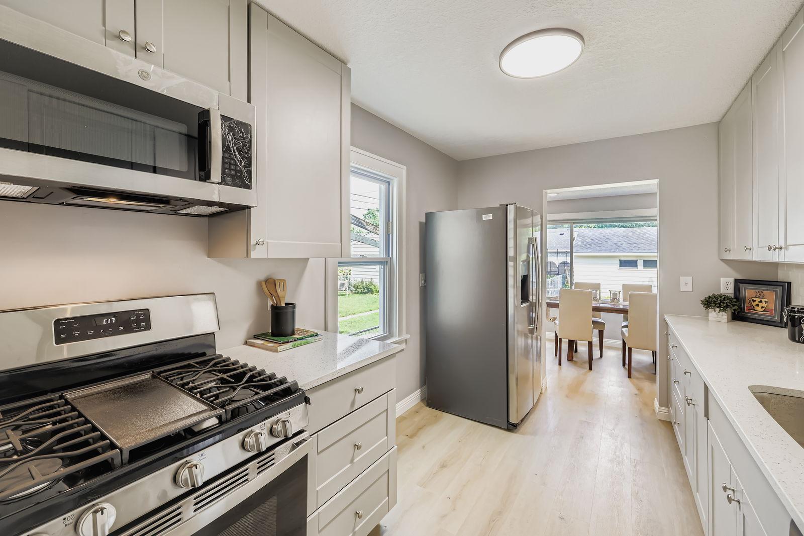 Beautifully remodeled Bungalow. This home looks fantastic. Enjoy wonderful living spaces, great room sizes, 3BR, 3BA floor plan, detached 2-car garage, and freshly finished spacious basement for entertaining including a 1/2 bathroom. Updates include new kitchen featuring stainless steel appliances, all new bathrooms, refinished hardwood flooring in living room and main level bedrooms, new carpeting in basement and upper level. The main floor has one bedroom and a full bath. The upper level features 2 bedrooms and a 3/4 Bath. New LVP in kitchen and bathrooms, new roof, all new interior paint. New Furnace and A/C and much more. Excellent location right next Parks, schools, highways and all city amenities. Move right in, everything is ready for you!