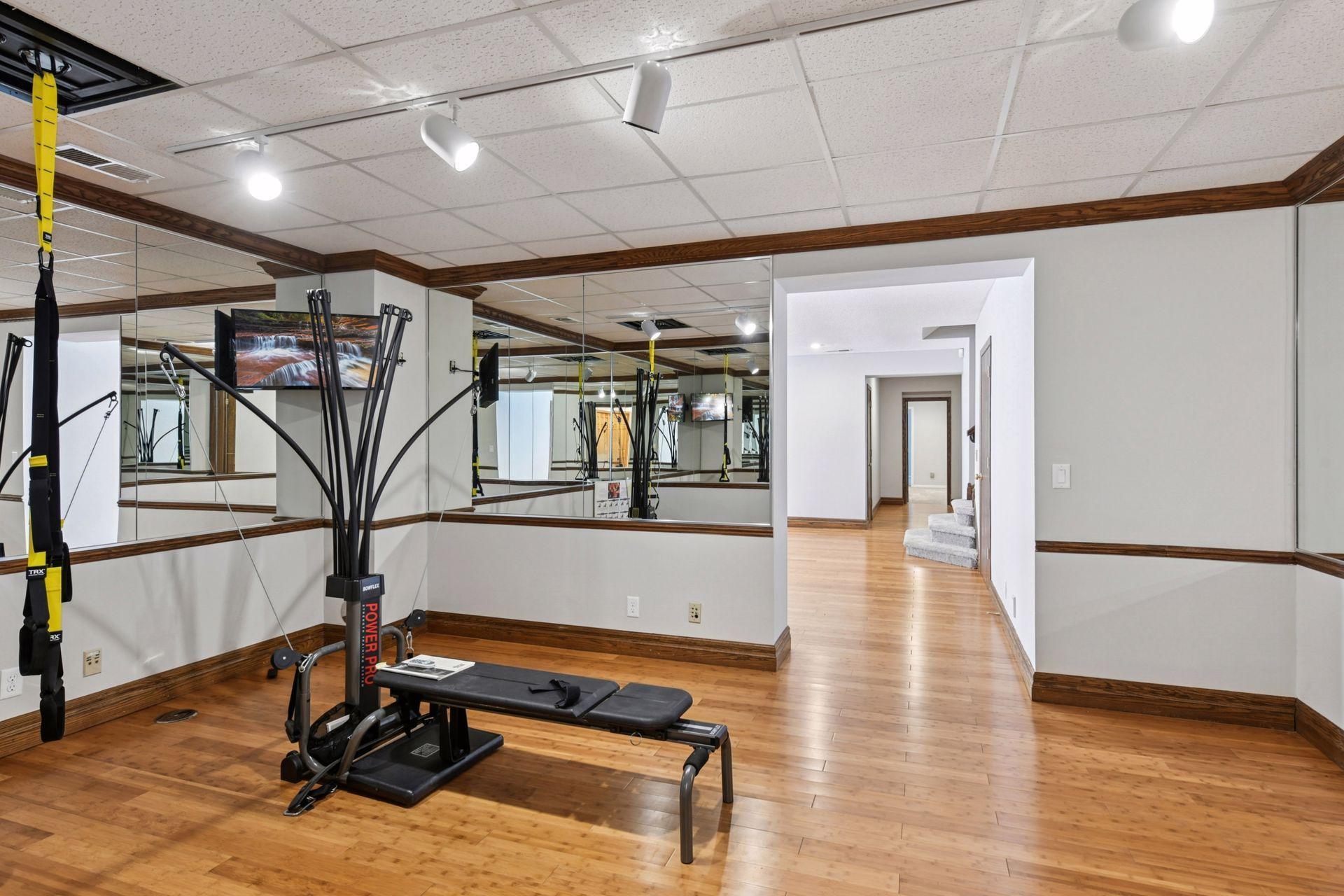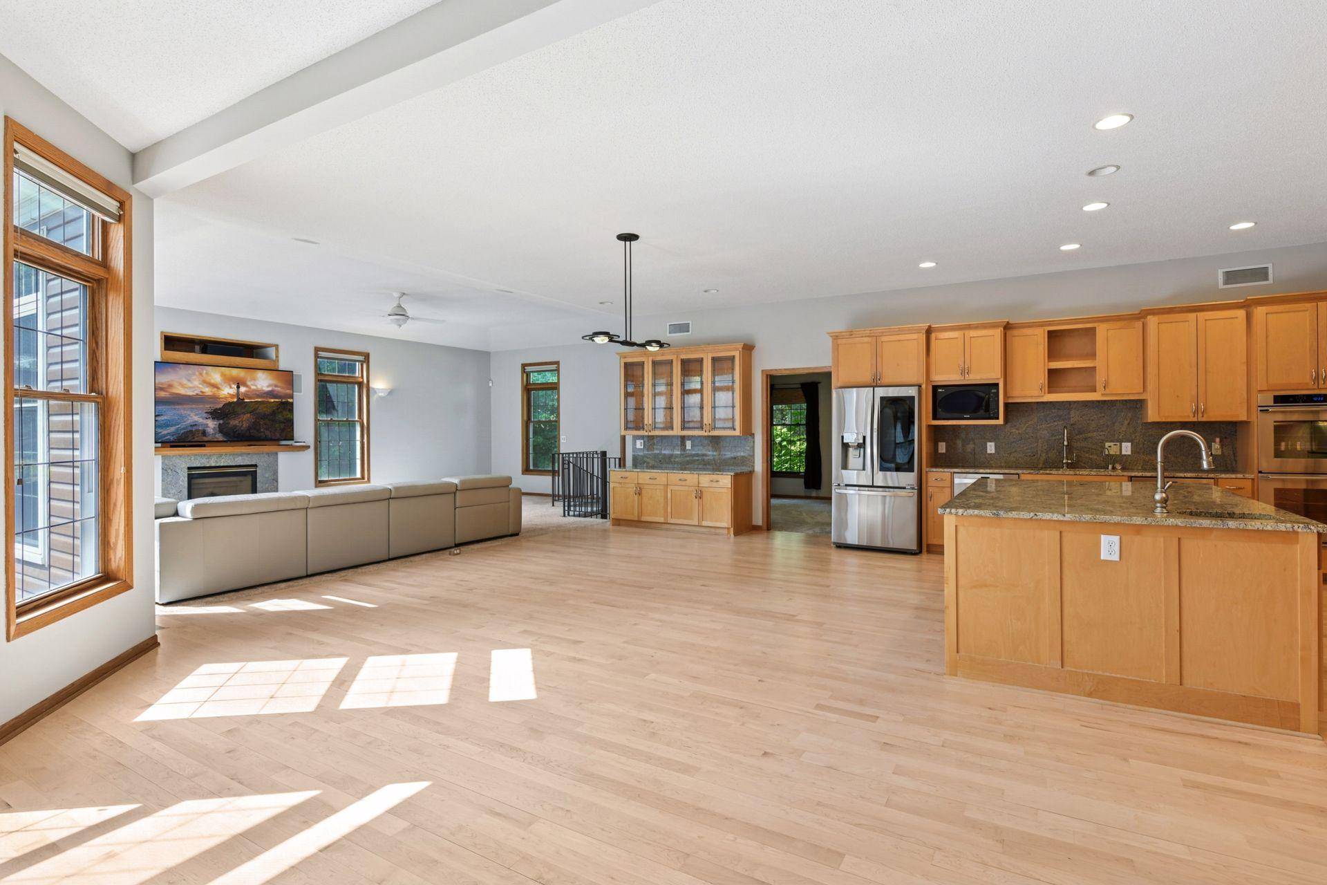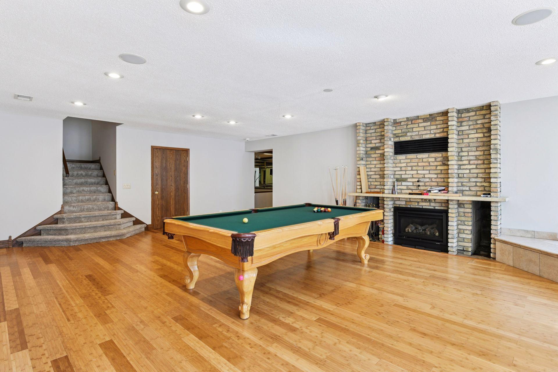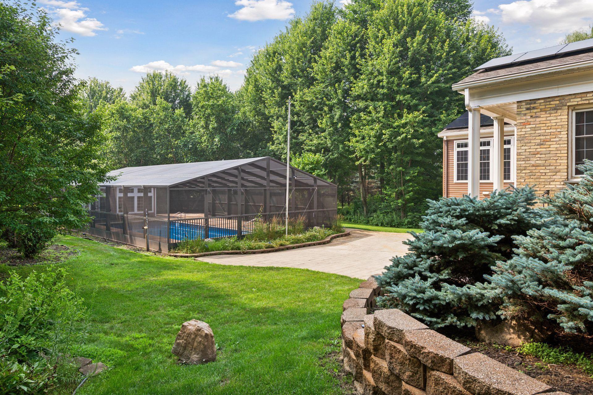 Welcome to this one-of-a-kind estate, nestled on 3 wooded acres in the heart of Gem Lake. Ideally located near major highways, shopping, and dining, this stunning property offers the best of both worlds—ultimate privacy with easy access to city amenities. Step inside to discover a thoughtfully designed home featuring expansive rooms, abundant natural light, and elegant details throughout. Craftsmanship shines in the intricate woodworking, rich paneling, and custom wainscoting. An entertainer’s delight, the home boasts a formal dining room with built-in shelving and a gourmet kitchen designed for both style and function. The kitchen features an oversized center island with counter-height seating, multiple sinks, an indoor grill, and a cozy hearth room. A spacious mudroom entry off the garage includes space for a substantial walk-in closet, and two main-level offices offer versatility—easily converted into additional bedrooms if desired. The main level also offers true single-level living, including a welcoming foyer and a luxurious primary suite complete with its own four-season porch, a fireplace, a cedar-lined walk-in closet, a steam shower, and a private deck. A beautifully crafted curved staircase leads to the upper level, which includes three additional bedrooms—one with an en-suite bath and two that share a spacious Jack-and-Jill bathroom. The finished lower level is an entertainer’s dream, featuring a full second kitchen, game room, family room, two additional bedrooms, a spa-like bathroom with space for a massage table, and a dedicated fitness room. Generous storage and workshop areas are also included. Heated flooring throughout the home includes a mix of hardwood, tile, and brand-new carpet, ensuring warmth and comfort in every room. Outside, a large paver patio leads to a screened-in outdoor pool—perfect for critter and bug-free summer gatherings. The pool house offers additional storage and a bright solarium/changing room for guests to relax or refresh. Additional exterior highlights include a large pole shed, a drive-through 4-car garage, and beautifully maintained grounds. Recent mechanical updates include four geothermal units, solar panels, water heaters, an Owens generator capable of powering the entire home, and an electric vehicle charger. This exceptional estate offers a rare blend of luxury, function, and natural serenity—ideal for entertaining, multigenerational living, or simply enjoying the beauty of your own private retreat. A truly extraordinary home that must be seen to be fully appreciated.