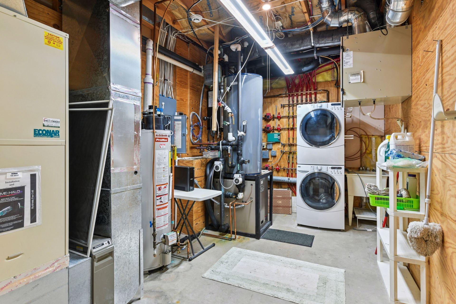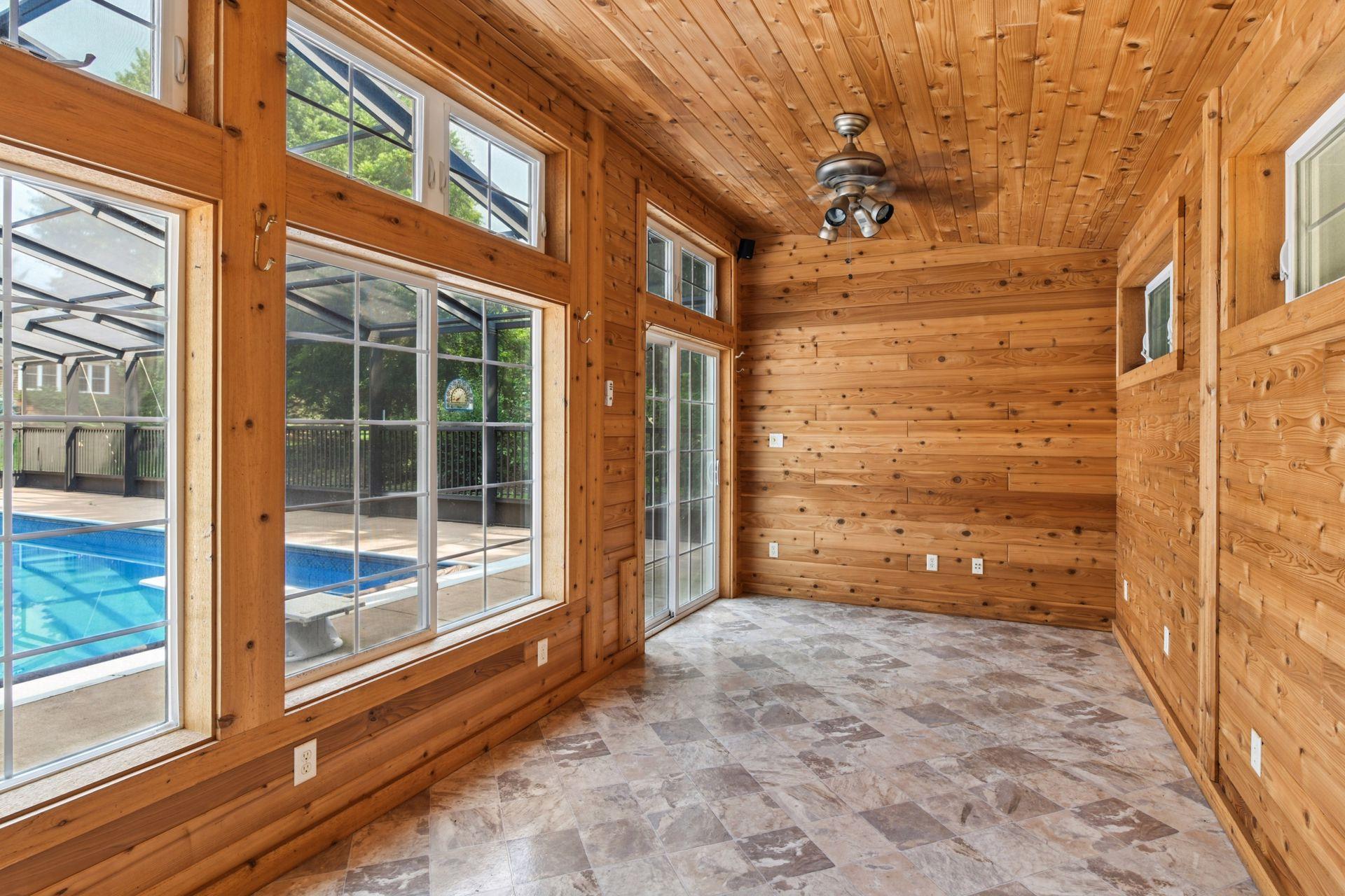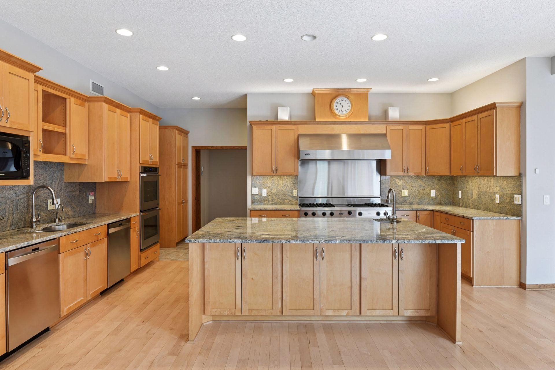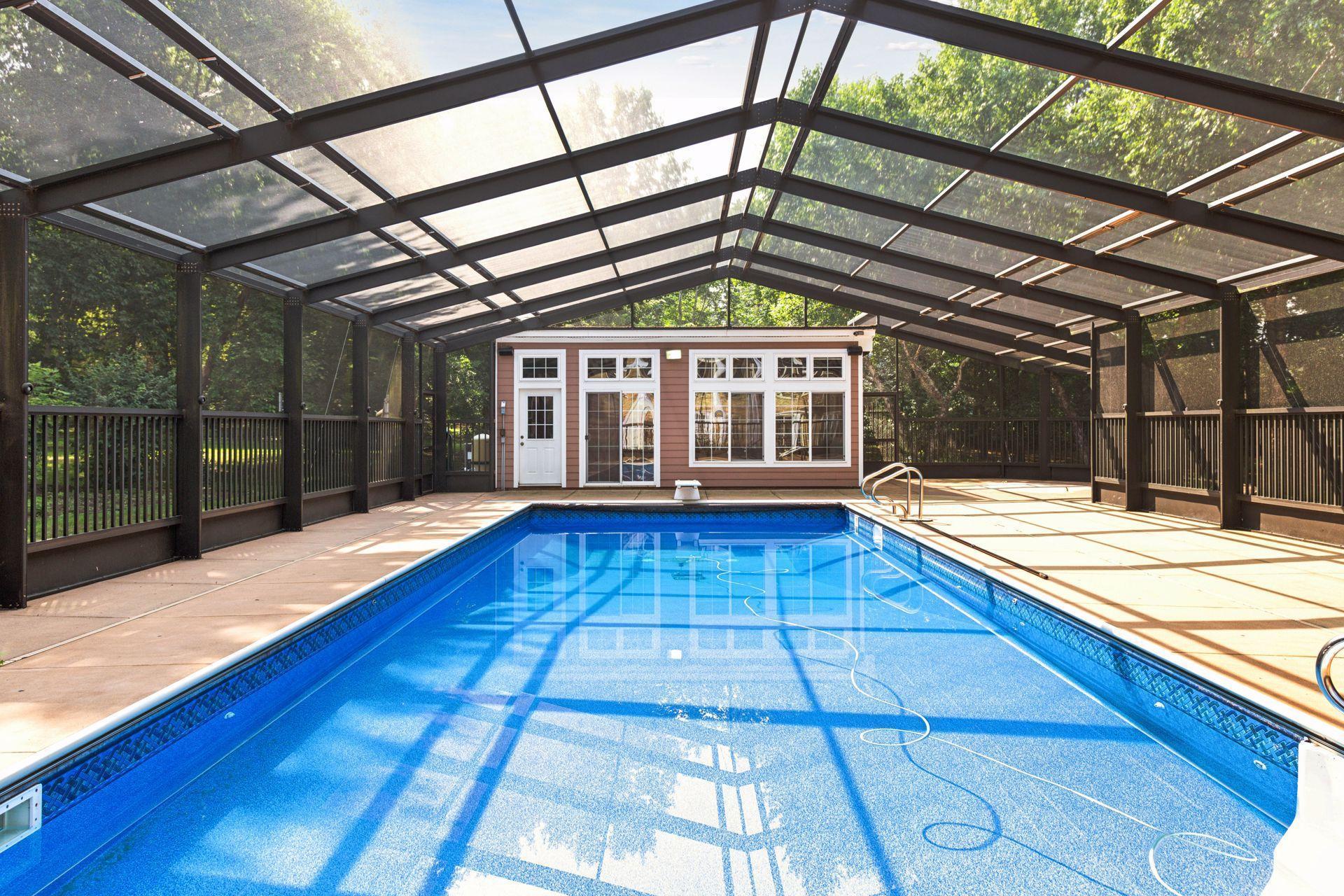 Welcome to this one-of-a-kind estate, nestled on 3 wooded acres in the heart of Gem Lake. Ideally located near major highways, shopping, and dining, this stunning property offers the best of both worlds—ultimate privacy with easy access to city amenities. Step inside to discover a thoughtfully designed home featuring expansive rooms, abundant natural light, and elegant details throughout. Craftsmanship shines in the intricate woodworking, rich paneling, and custom wainscoting. An entertainer’s delight, the home boasts a formal dining room with built-in shelving and a gourmet kitchen designed for both style and function. The kitchen features an oversized center island with counter-height seating, multiple sinks, an indoor grill, and a cozy hearth room. A spacious mudroom entry off the garage includes space for a substantial walk-in closet, and two main-level offices offer versatility—easily converted into additional bedrooms if desired. The main level also offers true single-level living, including a welcoming foyer and a luxurious primary suite complete with its own four-season porch, a fireplace, a cedar-lined walk-in closet, a steam shower, and a private deck. A beautifully crafted curved staircase leads to the upper level, which includes three additional bedrooms—one with an en-suite bath and two that share a spacious Jack-and-Jill bathroom. The finished lower level is an entertainer’s dream, featuring a full second kitchen, game room, family room, two additional bedrooms, a spa-like bathroom with space for a massage table, and a dedicated fitness room. Generous storage and workshop areas are also included. Heated flooring throughout the home includes a mix of hardwood, tile, and brand-new carpet, ensuring warmth and comfort in every room. Outside, a large paver patio leads to a screened-in outdoor pool—perfect for critter and bug-free summer gatherings. The pool house offers additional storage and a bright solarium/changing room for guests to relax or refresh. Additional exterior highlights include a large pole shed, a drive-through 4-car garage, and beautifully maintained grounds. Recent mechanical updates include four geothermal units, solar panels, water heaters, an Owens generator capable of powering the entire home, and an electric vehicle charger. This exceptional estate offers a rare blend of luxury, function, and natural serenity—ideal for entertaining, multigenerational living, or simply enjoying the beauty of your own private retreat. A truly extraordinary home that must be seen to be fully appreciated.