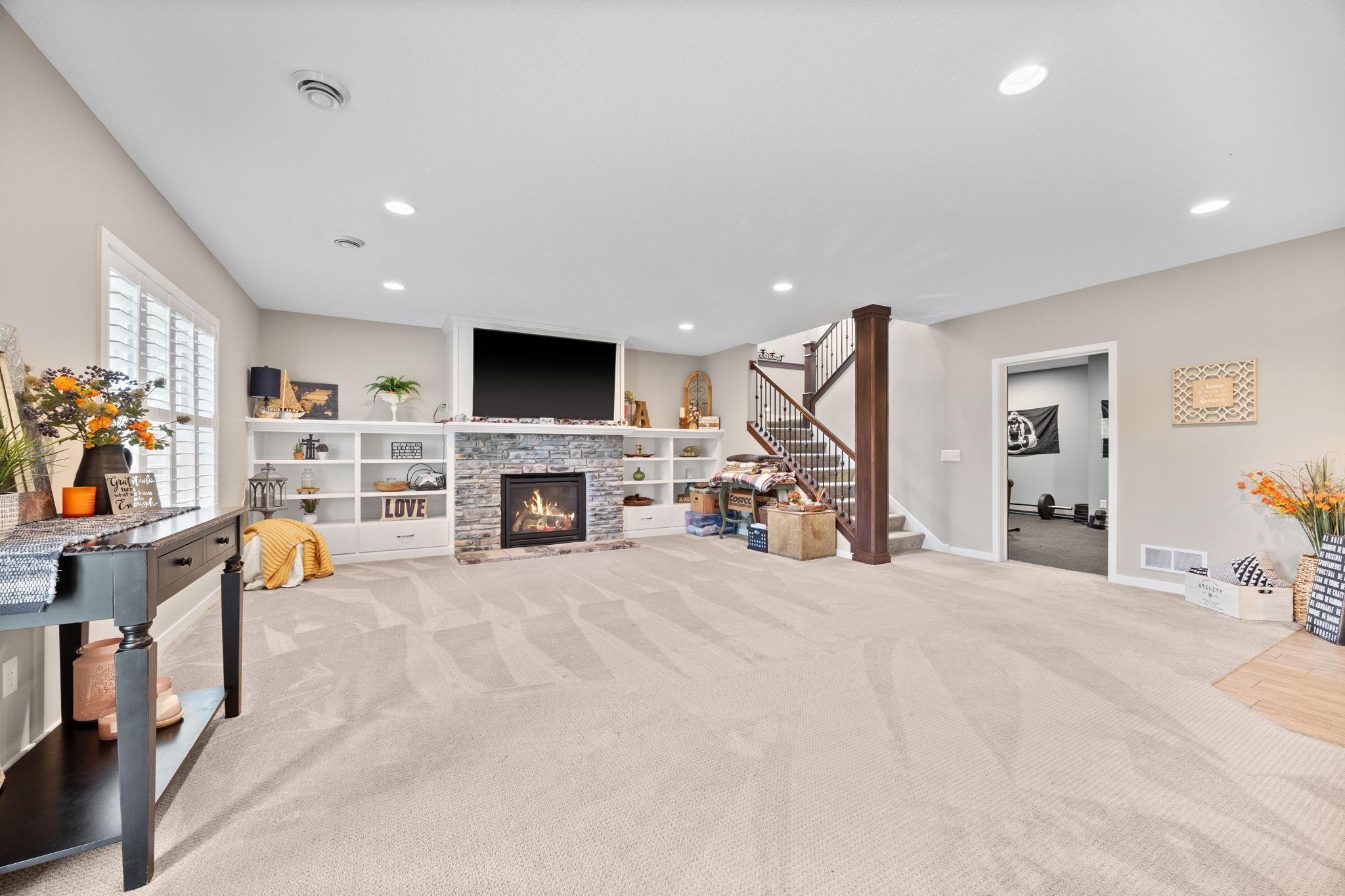 An Exceptional Opportunity in an Incredible Setting! This beautifully custom crafted detached luxury villa offers the ease of main-floor living in a private, low-HOA neighborhood. Thoughtfully designed with a functional and flowing floorplan, this home features stunning white woodwork, custom built-ins, high-end finishes, and meticulous craftsmanship throughout. Set on a quiet cul-de-sac surrounded by picturesque views, the home offers easy, maintenance-free living with breathtaking indoor and outdoor spaces overlooking ponds that attract swans, egrets, ducks and more.... The sunlit main level includes wide open living areas, spacious living room with gas fireplace and beautiful surround, gourmet kitchen, spacious primary suite, laundry, drop zone off garage, mudroom, study, and more—everything you need on one level. Step out to enjoy your no-maintenance deck or head down to the walkout lower level with a paved patio, oversized amusement room, gas fireplace with custom built-ins, wet bar, two additional bedrooms, a full bath, home gym and an enviable storage room. Extras include two cozy gas fireplaces, a covered front porch, maintenance free deck with retractable awning, a large 3-car garage, and pristine landscaping. Located in the sought-after Chevalle community, you’ll have access to trails, a shared beach, day dock, and kayak/paddleboard/canoe storage—making outdoor living effortless and enjoyable. A gorgeous home, an ideal floorplan, and a lifestyle you won’t want to miss. The unbeatable location is the cherry on top! Just minutes from charming downtown Victoria with restaurants, live music, coffee shops, Wednesday night car shows, and ice cream, or head a few miles away to Chaska or Chanhassen for major retail conveniences OR grab a bike and take the regional trail system all the way to Excelsior! For the golf enthusiasts you will find yourself less than 1 mile to either Deer Run or Chaska Town Course! Truly the best of both worlds!