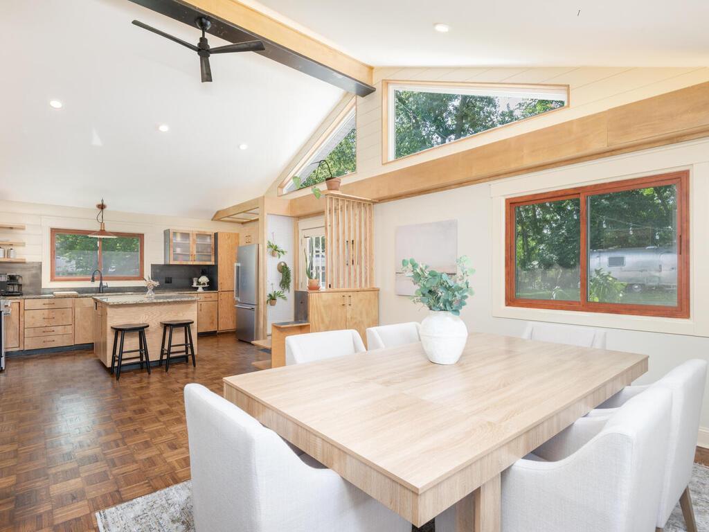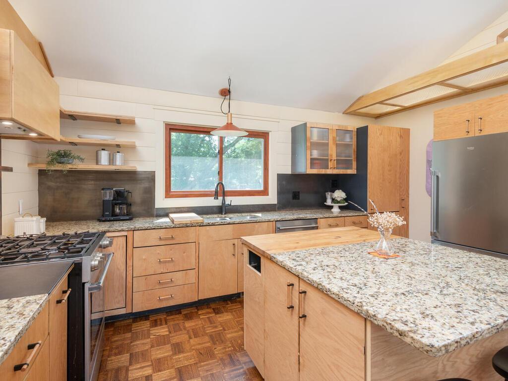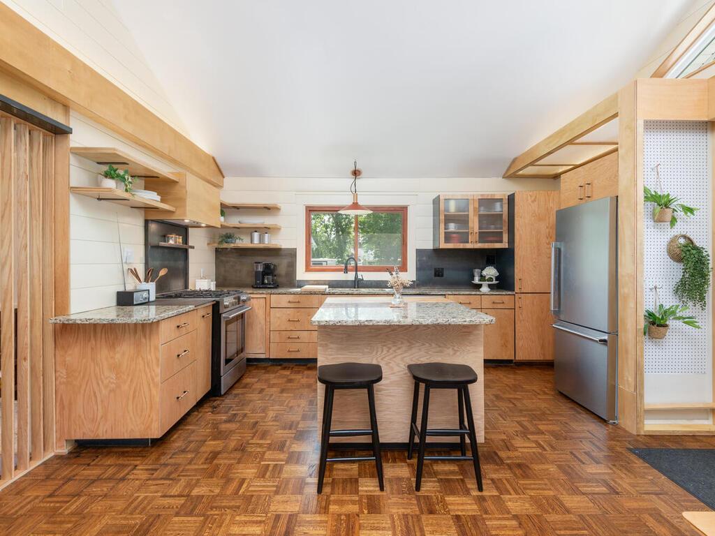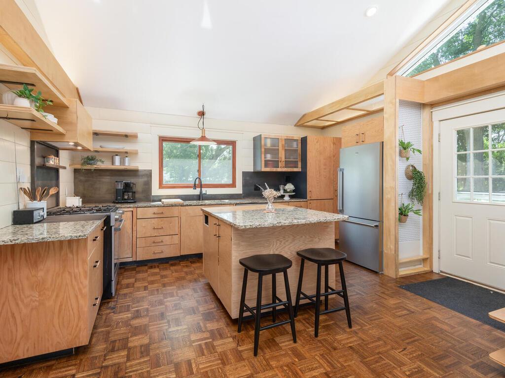 A Rare Gem in the Heart of Lake Minnetonka Living! Nestled on a private and spacious 0.88-acre lot, this beautifully renovated 1920-built two-story home blends timeless charm with modern comfort - all in one of Lake Minnetonka’s most sought-after communities. Step inside to find 3 bedrooms, 2 full baths, and a truly move-in-ready layout. The inviting sunroom welcomes you with abundant natural light and opens seamlessly into the living room, where a stunning tiled two-sided gas fireplace creates a cozy ambiance shared with the dining area. The heart of the home lies in the open kitchen/dining area, featuring hardwood floors, vaulted ceiling, and expansive south-facing gable windows that flood the space with sunlight. With light wood cabinetry, floating shelves, granite countertops, sophisticated metal backsplash, and stainless-steel appliances, this Scandinavian-inspired kitchen is both stylish and functional - the perfect setting for colorful meals and memorable gatherings. The main-level bedroom includes a generous walk-in closet, while upstairs you'll find two more bedrooms and a full tiled bath. The lower level offers a dedicated laundry area, ample storage, and a flexible bonus room ideal for a home office, theater room, or art studio. Step outside to enjoy a large paver patio, fenced backyard with cozy campfire area, and a fenced garden space ready for your dream vegetable or flower garden. A rare bonus: the oversized 3-stall garage offers room for vehicles, gear, and more. All of this just ½ mile to Lord Fletcher’s, Lund’s & Byerly’s, restaurants, and hardware store. Easy access to the Dakota Rail Trail and close to the Spring Park Boat Launch on Lake Minnetonka. This is the perfect blend of privacy, location, and charm - a truly rare find!