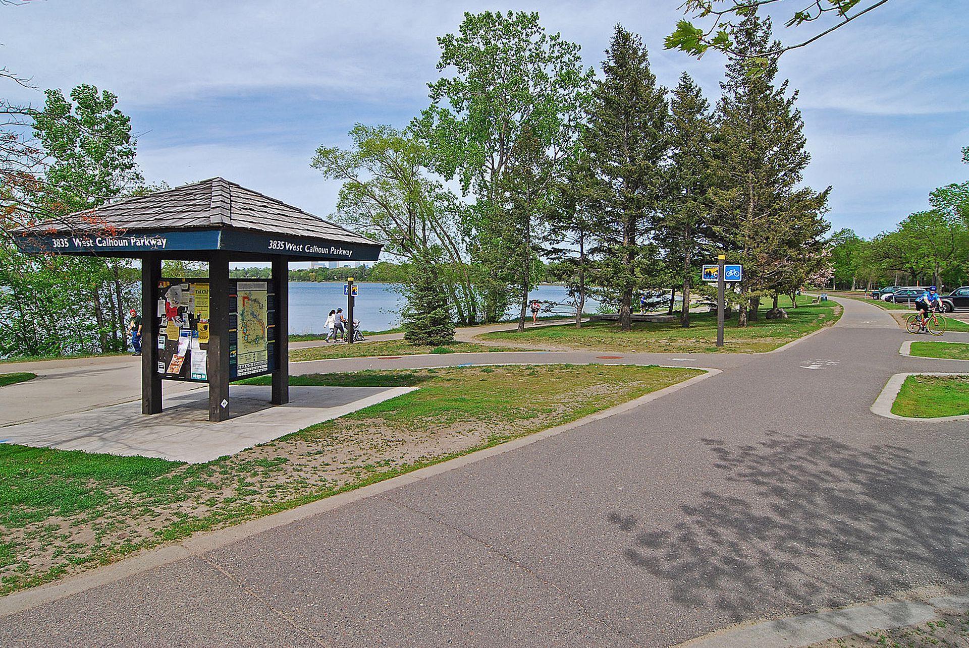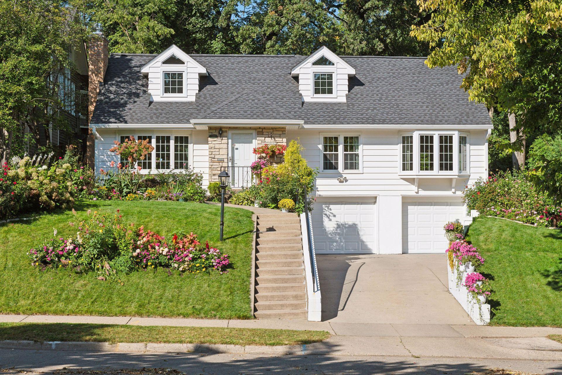 Premier location! Steps from the city lakes! Lake Bde Maka Ska is less than two blocks away! This recently updated home gives you a staycation every day! A totally new retro kitchen will be the talk of the town. Step back in time with the vintage look of the 1950's, with top of the line Big Chill appliances. The large primary suite with a vaulted ceiling is impressive. The upstairs has an office area, two cozy bedrooms adjoined by a bathroom. The two-tiered large backyard is beautiful and perfect for entertaining. The yard has had major landscaping done with many pretty perennials and a new inground sprinkler system. Also, there is a new workout /laundry room, newer roof, new gutters with leaf protection, air exchanger, water heater, new gas fireplace, and new insulated garage doors. Close to fun restaurants, popular coffee shops, great stores, parks, bike paths and everything Linden Hills has to offer. Owner/agent. (Partial, seasonal views of 1/3rd of the top of the city skyline from an upstairs bedroom window, at night, while standing on a chair.)