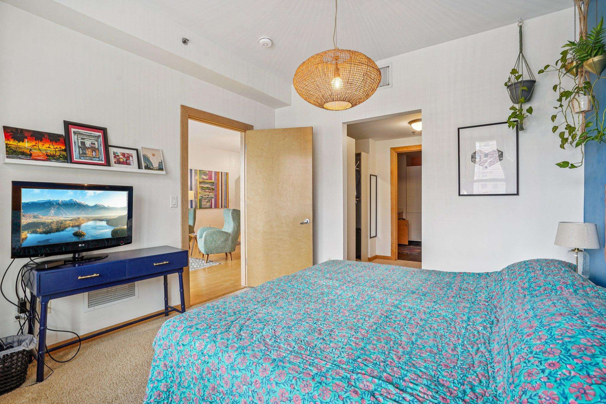 Welcome to 5th Avenue Lofts, a stunning urban loft located in the highly desirable North Loop neighborhood. This stylish 2-bedroom, 2-bathroom condo offers a spacious open layout perfect for every day living. Enjoy the luxury of a huge walk-through closet and a private ensuite full bath in the primary bedroom. Step outside to your private balcony and take in the vibrant city views. Additional features include a laundry room, a heated parking stall and a dedicated storage unit. Access to building amenities in both 5th Ave and Security Lofts include: two community rooms, workout rooms, a roof top patio and a dog run. Experience the best of city living in this exceptional North Loop residence!
