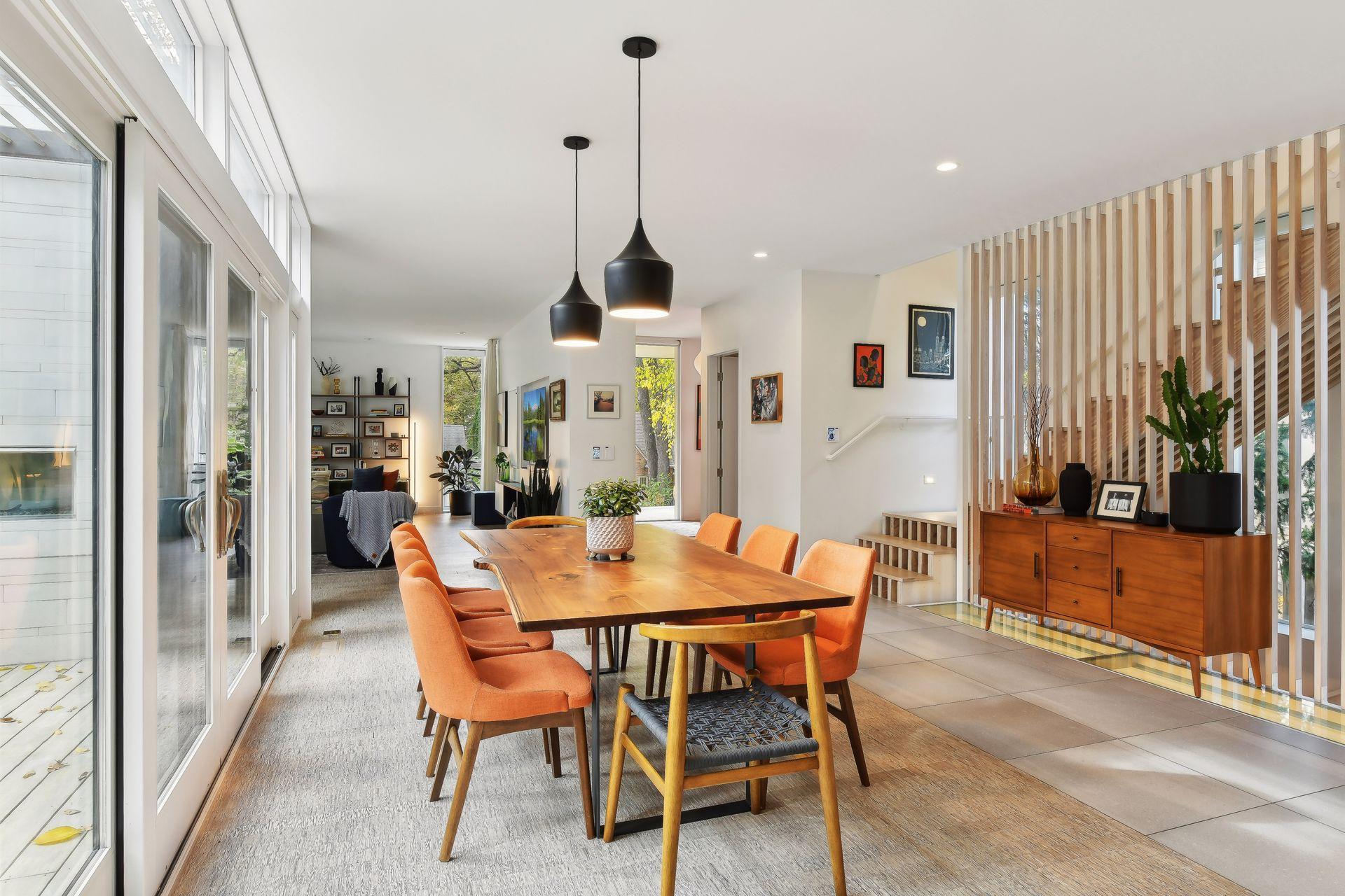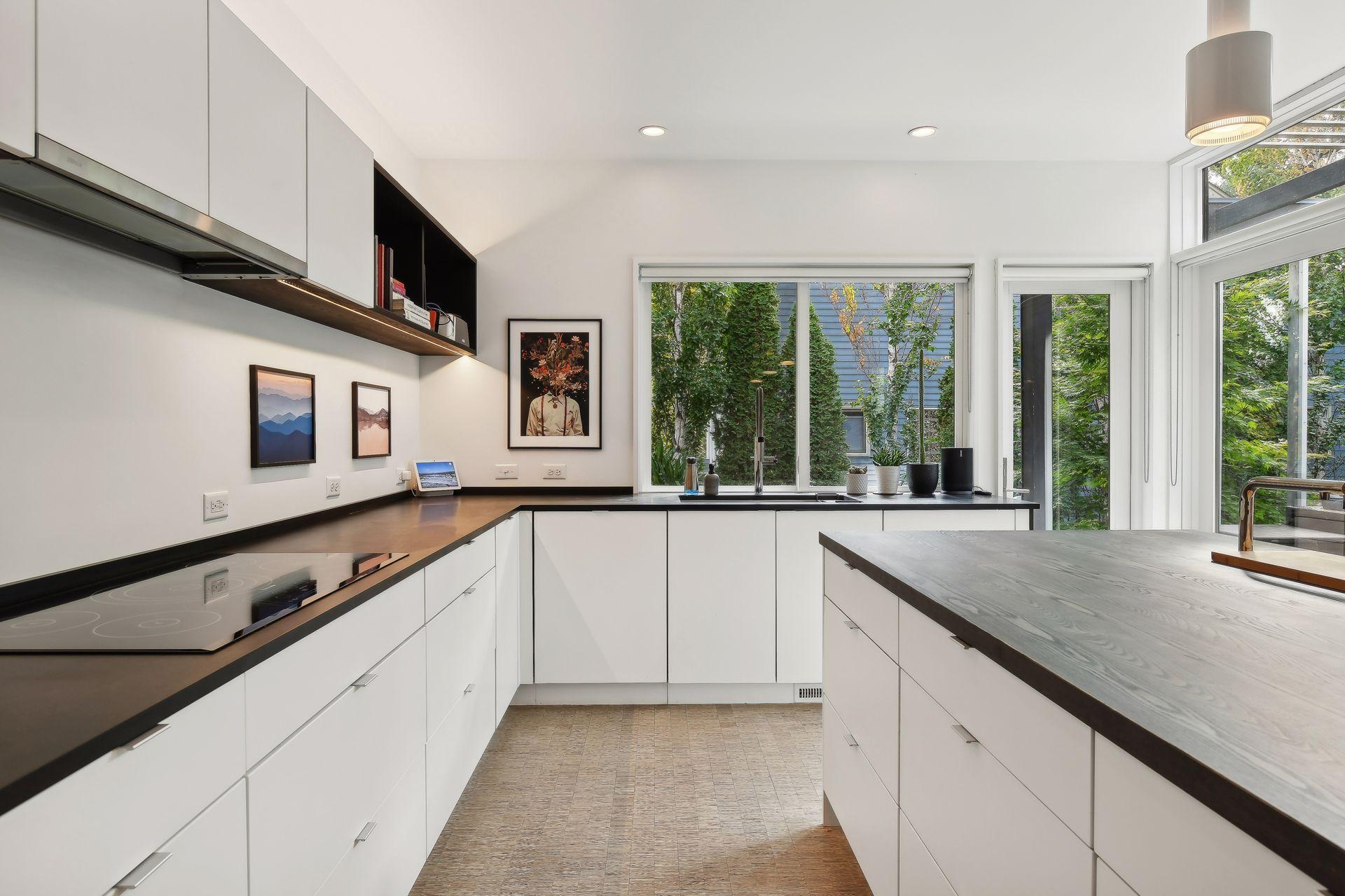 Designed by award-winning architect Christian Dean, this sophisticated and modern home blends innovative design with effortless functionality. The bright, open floor plan features expansive living, dining, and kitchen areas, all connected to a stunning outdoor living space. Step onto the large deck, complete with a fireplace, grilling area, and a convenient pass-through window—perfect for entertaining. This spacious and thoughtfully designed home features a chef’s kitchen with Thermador appliances, two primary bedroom suites for ultimate comfort, convenient main floor laundry, and lower level guest space with family room and kitchenette. Built with energy efficiency in mind, this home features: 5KW rooftop solar system, EV charging for two vehicles, Home Energy Rating System (HERS) - 30, full home automation for effortless control, and sustainable materials for an eco-friendly lifestyle. Enjoy the beautifully landscaped perennial gardens, offering a private and serene retreat in your backyard. This exceptional home offers both modern luxury and environmental consciousness in one of Minneapolis’ most sought-after neighborhoods.