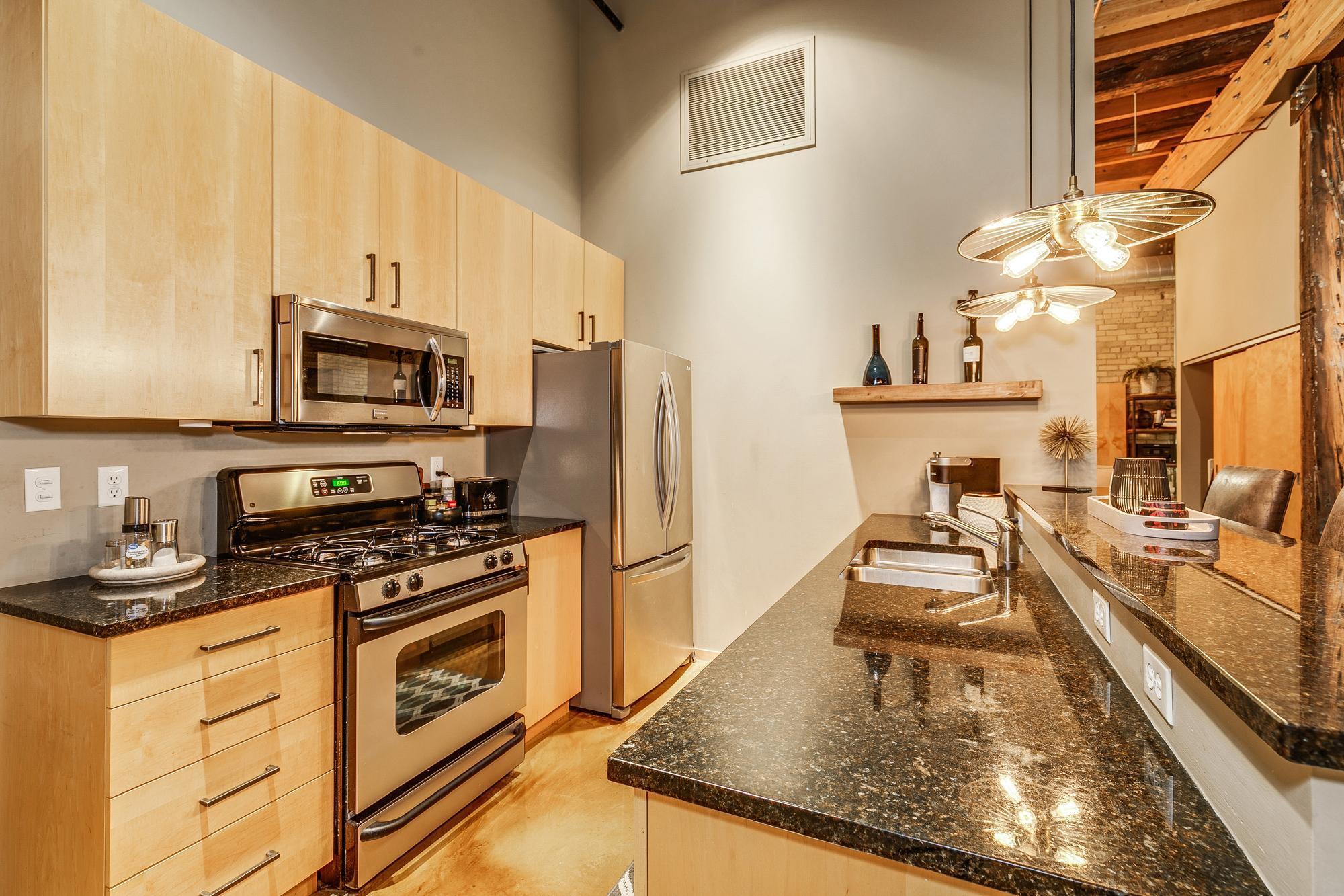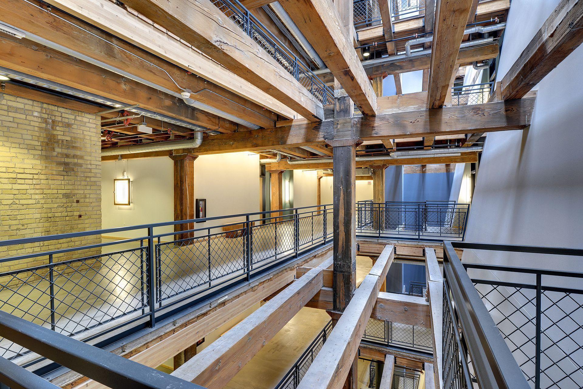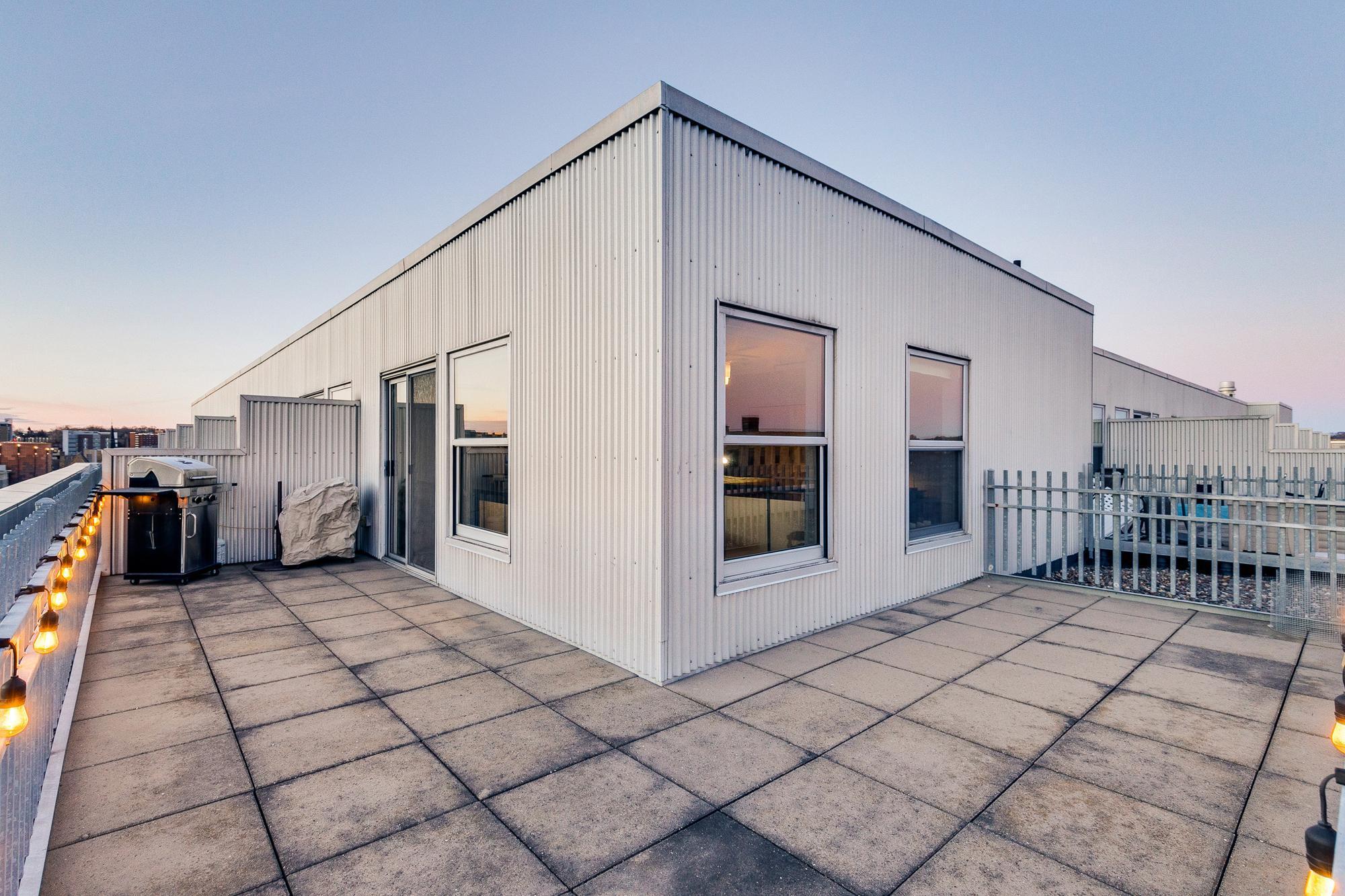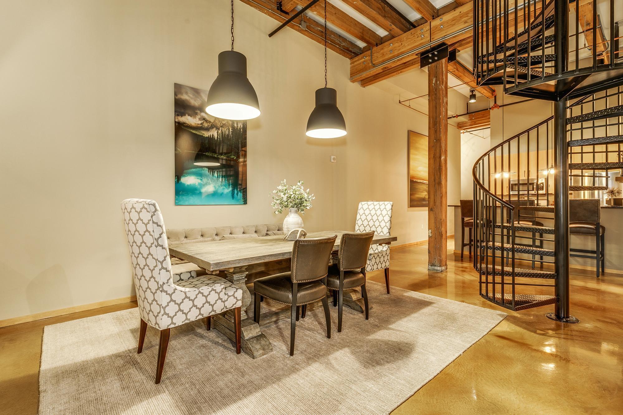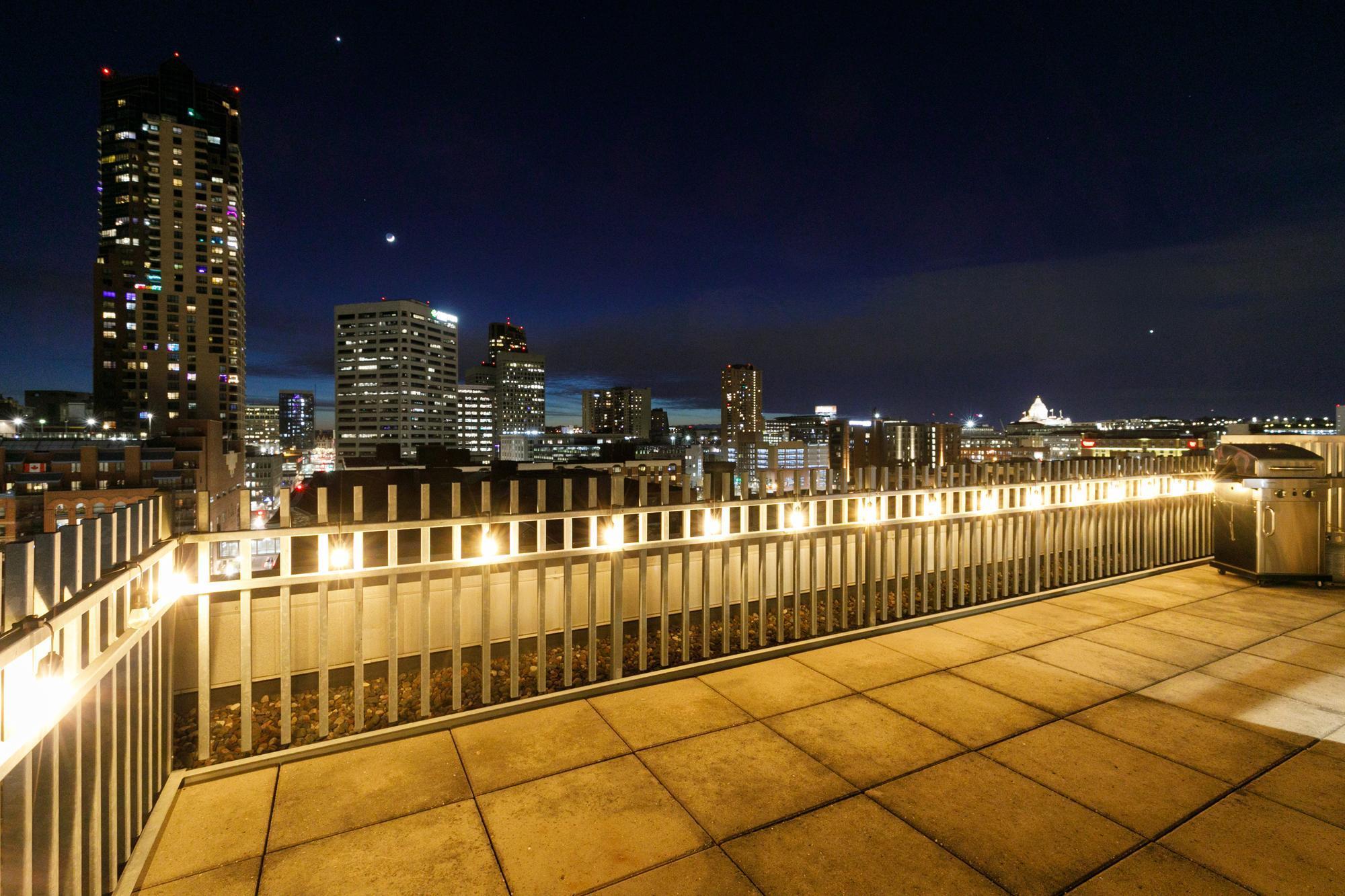 7th-floor penthouse loft on the SW corner of Historic River Park Lofts, overlooking Mears Park, CHS Fields in Lowertown! Every Saints game you can enjoy the fireworks off your large wrap-around patio!! Wait till you see the views. The unit boasts exposed brick & beams, gorgeous stained concrete floors, high ceilings, true open loft. Main level living with large wide-open spaces & spiral staircase to 2nd level with 2nd bedroom, 3/4 bath, sitting room, & fabulous corner wrap-around rooftop deck with panoramic city views. Heated indoor parking (In the building and not in the ramp next door)for 2 cars and a storage locker included. Walk to the farmers market, ballpark, river, light rail, exciting restaurants, great shops, and more. This building is pet-approved and has 2 dog parks very close by. Community spaces, inclusive of Community room/business center and fitness facility on G level of the building. Skyway access is on the 2nd floor of the building. Owners only pay for electricity! Heating, air conditioning, internet, cable, snow removal, water/sewer, security, and all other amenities are included in the monthly association fee. River Park Lofts offers homeowners safety, security, on-site property management, and heated and secured parking. Modern living paired with pieces of historic architecture.
