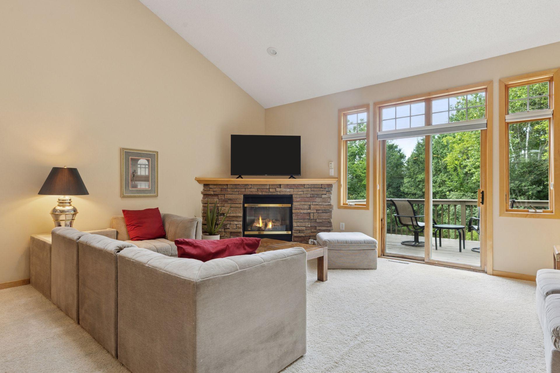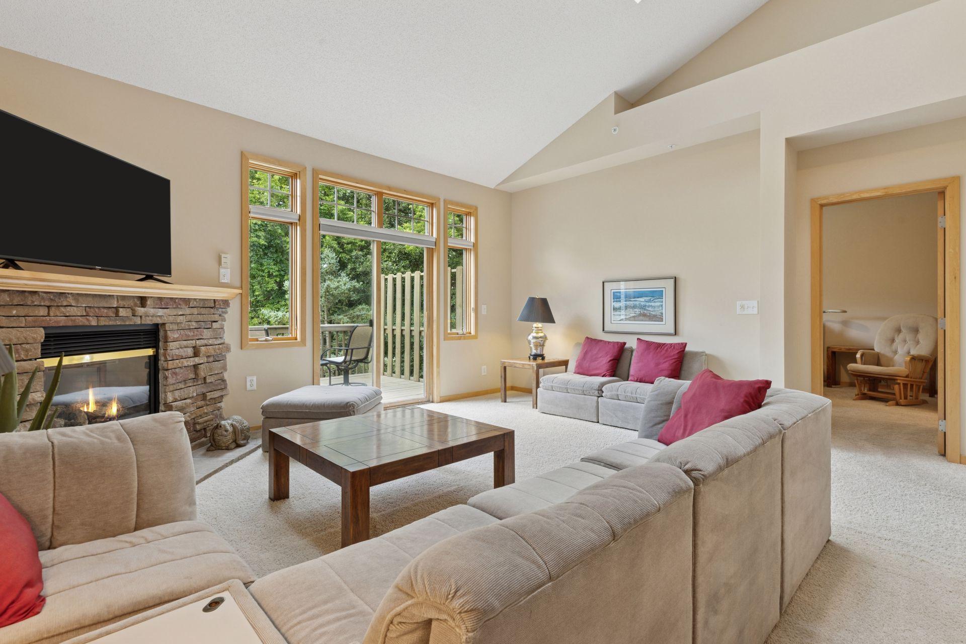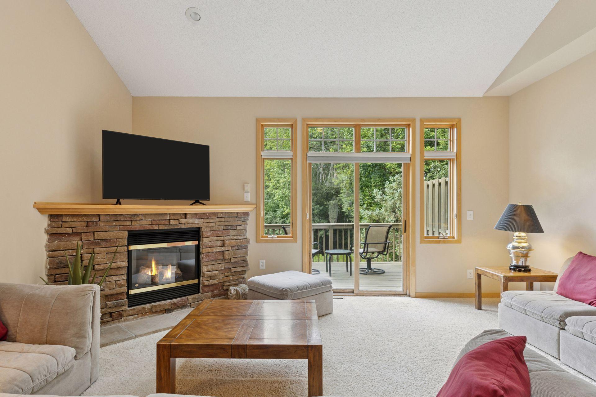 Welcome home to easy main-level living in this well maintained, move-in-ready home offering over 3,000 square feet of thoughtfully designed space. Soaring vaulted ceilings and large windows fill the home with natural light, highlighting a bright, open layout and peaceful pond views from multiple rooms. The main level features a spacious primary suite, laundry, an eat-in kitchen, dining room, and living room with a gas fireplace and sliding doors leading to a brand-new deck—perfect for relaxing or entertaining. The lower-level walkout offers an additional gas fireplace, a wet bar, a full bath, and a comfortable guest bedroom, along with abundant storage and flexible living space. Located in the highly sought-after Wayzata School District, this townhome blends comfort, style, and convenience in a serene, low maintenance setting close to shopping, restaurants, and freeway access.