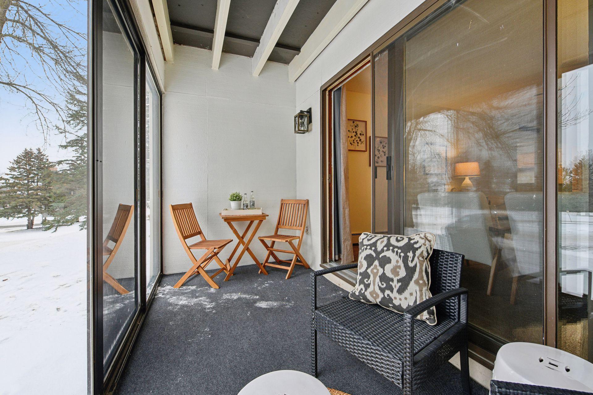 Bright and Beautiful Condo - A Rare Opportunity! Don’t miss this exceptional main-floor unit in a highly sought-after tranquil community. Boasting an open layout with tasteful updates throughout. This condo features spacious inviting rooms, including a large primary bedroom with double closets. Wonderful private three-season porch. Enjoy the convenience of in-unit, full-size laundry, central air-conditioning, and a heated underground garage with a car wash, vacuum bay, hobby room, and private storage. Experience resort-style living with incredible amenities: Indoor and outdoor pools, sauna and fitness center, community recreation center with billiards, a full kitchen, and event-hosting capabilities. Scenic walking trails wind around a serene pond, resident garden, playground, BBQ area, horseshoe pit, tennis, and basketball courts. Perfectly located near shopping, dining, parks, and lakes, this condo combines convenience and lifestyle in a well-kept and manicured property.