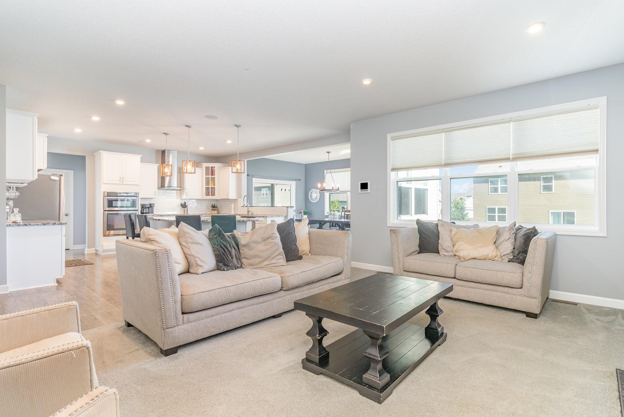 Come see this nearly new well cared for home with a sought after quiet cul-de-sac location. The open main level features an expansive kitchen with a large center island, great for quick meals or a buffet for football games and family gatherings. The sunroom is a flexible space which can be used as an informal dining area or an additional sitting space to enjoy. The mudroom has built-in lockers for storage and a huge walk-in closet for coats and sports equipment. The main level also features a formal living & dining room, a large great room and a convenient home office. The upper level has a huge primary suite with a luxurious bath and big walk-in closet, 3 additional bedrooms, a convenient upper level laundry room and loft area. The lower level is designed for entertaining, there is a home theatre, an area for a pool table or other gaming, a rough-in for a kitchenette or wet bar, & still space for exercise equipment. The lower level 5th bedroom and bath makes for a great guest space for friends and family. The yard is huge and surrounded by a maintenance free privacy fence, there’s plenty of space for kids, pets, yard games and/or a garden. The maintenance free deck was designed with Arborvitae trees around it for added privacy while you enjoy BBQs with family and friends. The home has 4600+ sq ft & has upgrades like dual zone HVAC for a comfortable house & energy savings, ethernet connections in many rooms, a sound system throughout the home, a battery back-up for the sump pump and much more.. The home is located close to Bielenberg Sports Complex & East Ridge High School, walking distance to shopping and has easy access to Saint Paul & airport.