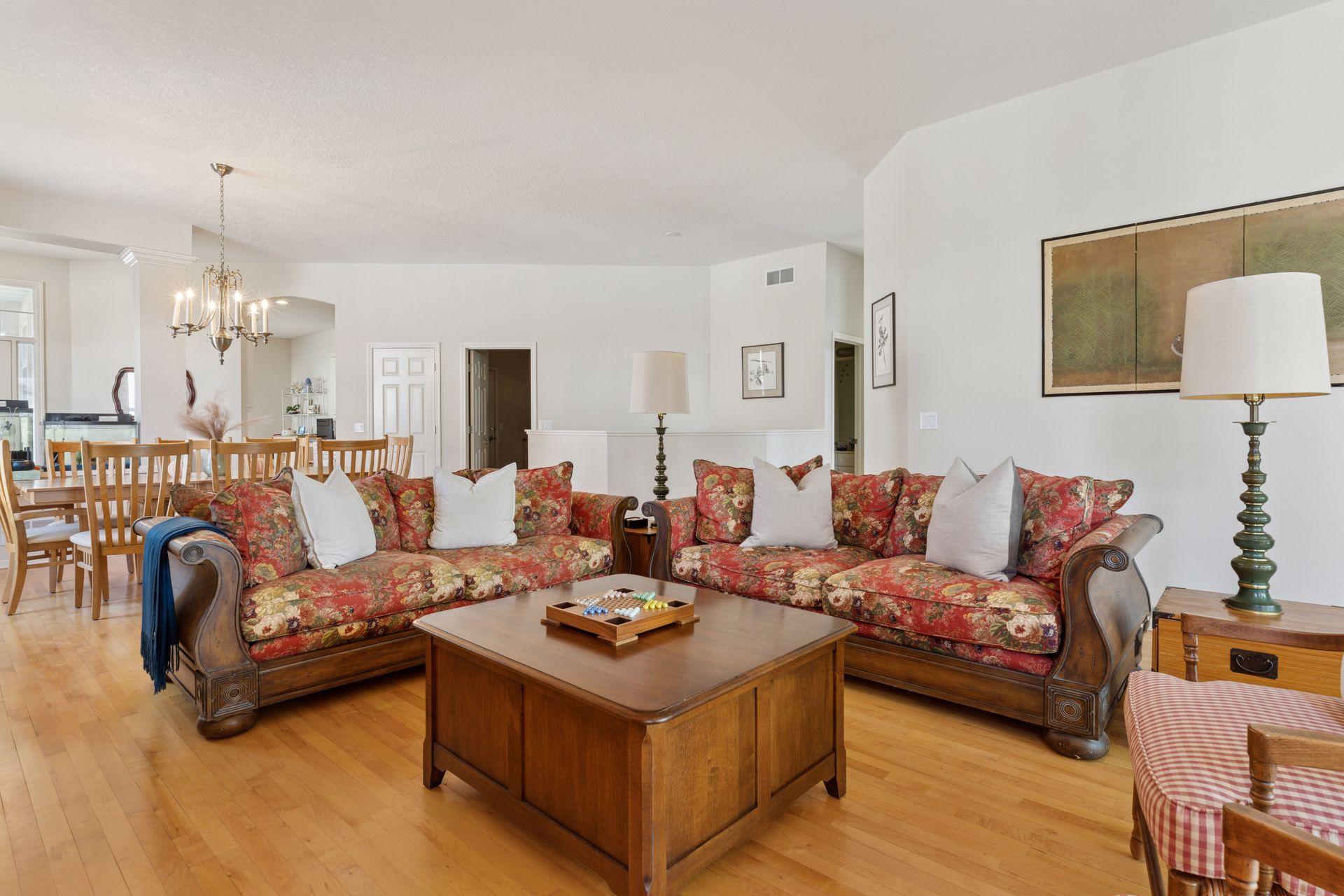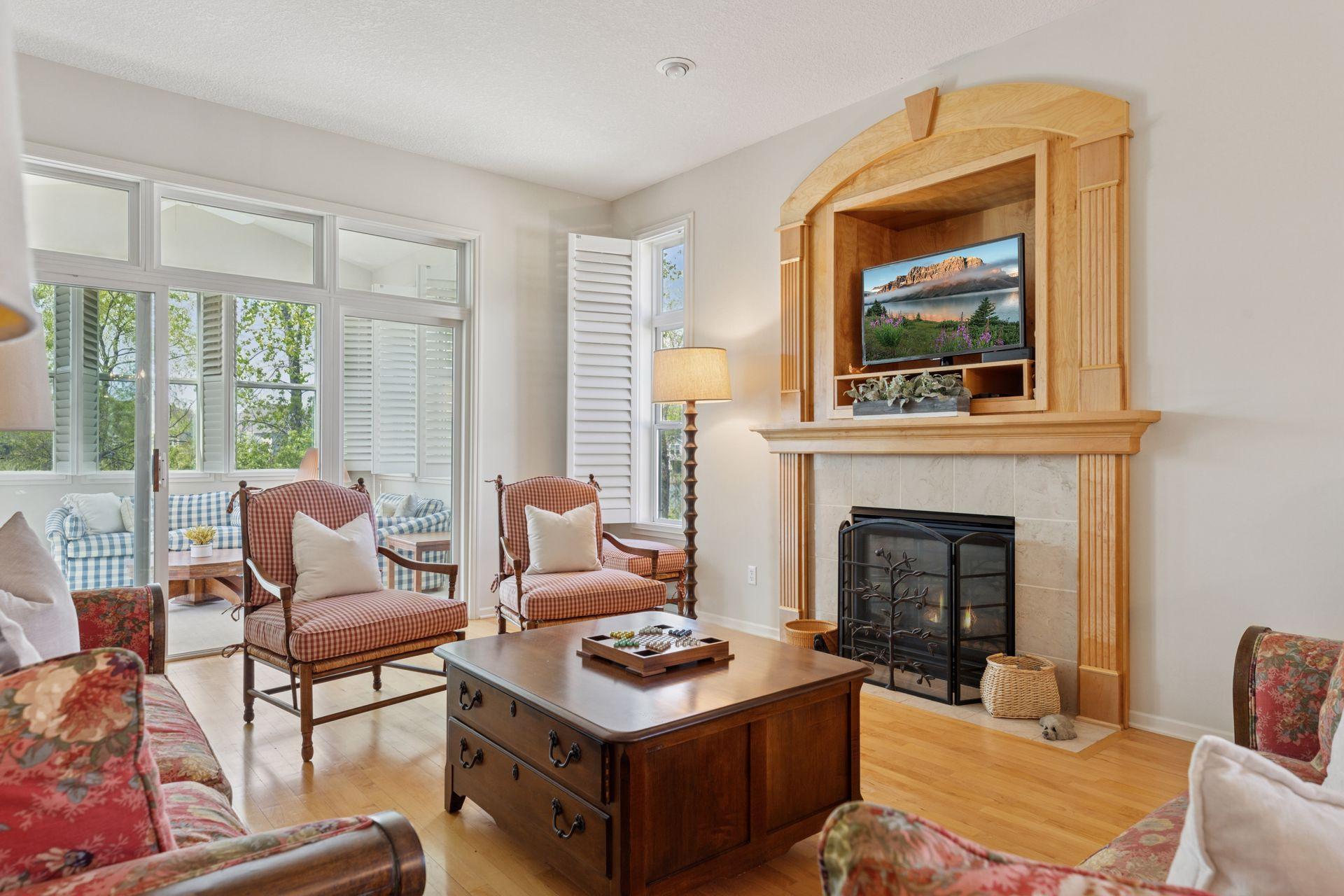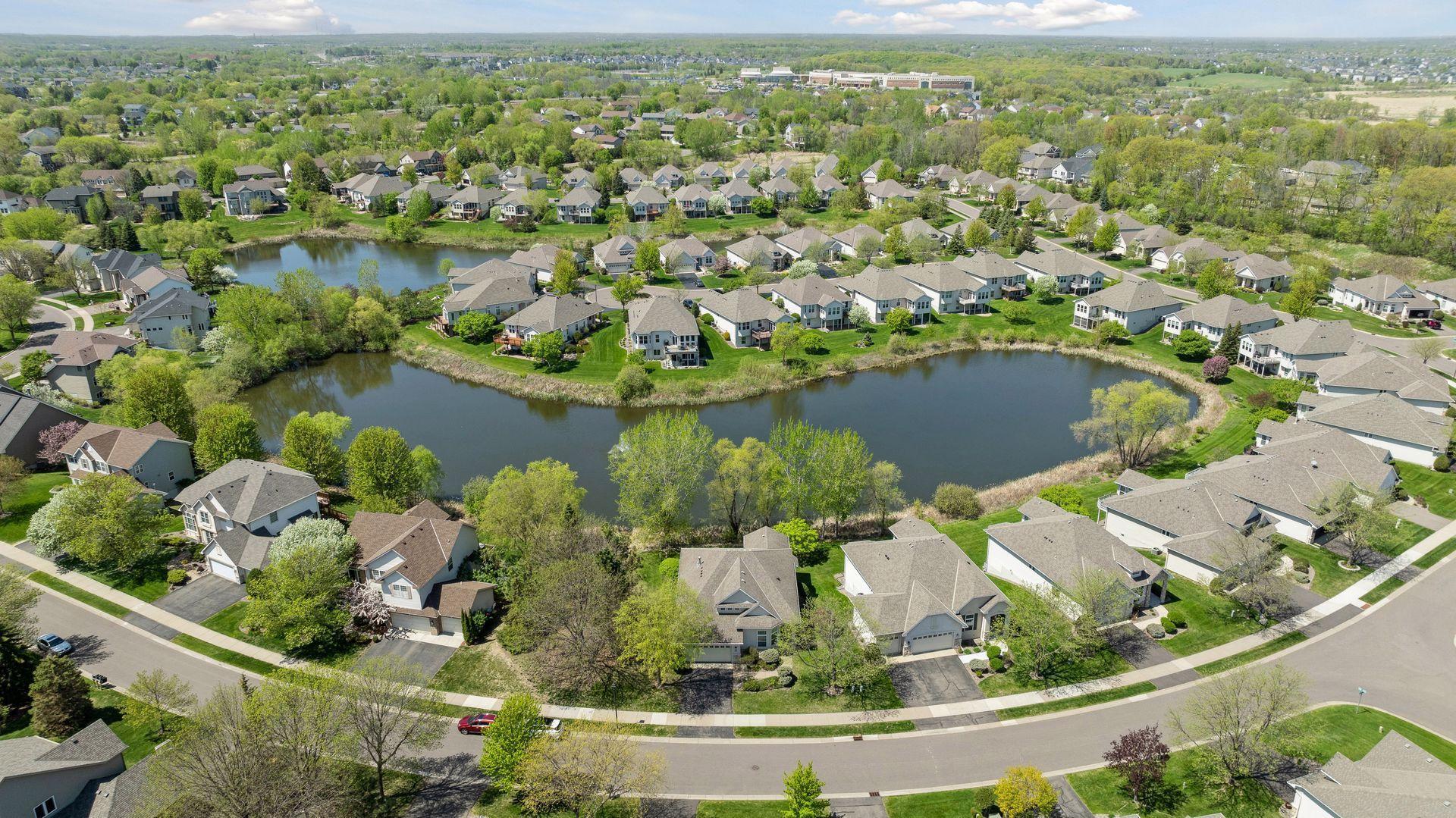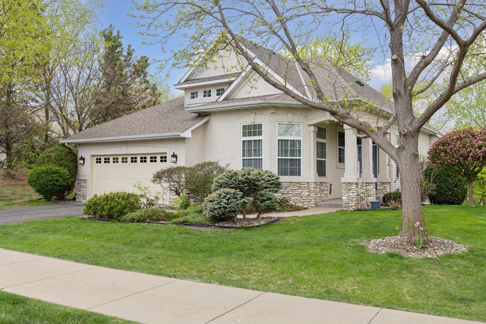 This Lundgren-built detached villa nestled in the Plum Tree neighborhood is a fantastic opportunity for main level living with beautiful pond views! Step inside on hardwood floors & appreciate the soaring 10 foot ceilings, open floor plan & generous spaces throughout! The Kitchen provides double-oven, SS appliances, plenty of counter space, storage & cozy breakfast area! Entertain with ease between the Dining & Living Rooms featuring gas fireplace, all the while enjoying everyone’s favorite room in the house – the gorgeous Sun Room - complete with vaulted ceilings & overlooking beautiful outdoor scenes year-round! The Owner’s Suite provides plenty of space for oversized furniture, walk in closet & private Bathroom with dual vanities plus separate tub & shower. Other convenient main level features include Laundry & flexible Den space for Office or guest area. Head downstairs to the walkout lower level with enormous Family/Recreational Room, 2 additional Bedrooms plus Jack & Jill Bathroom plus 2 huge additional storage areas! Neighborhood features shared park & outdoor heated pool! Conveniently close to Medina Golf Course, trails, parks, groceries, restaurants & located in desirable Wayzata School District!