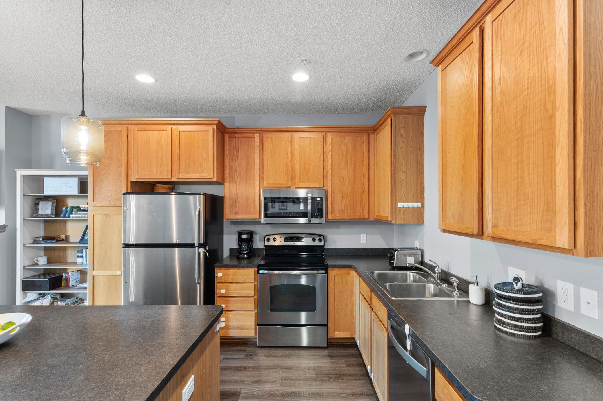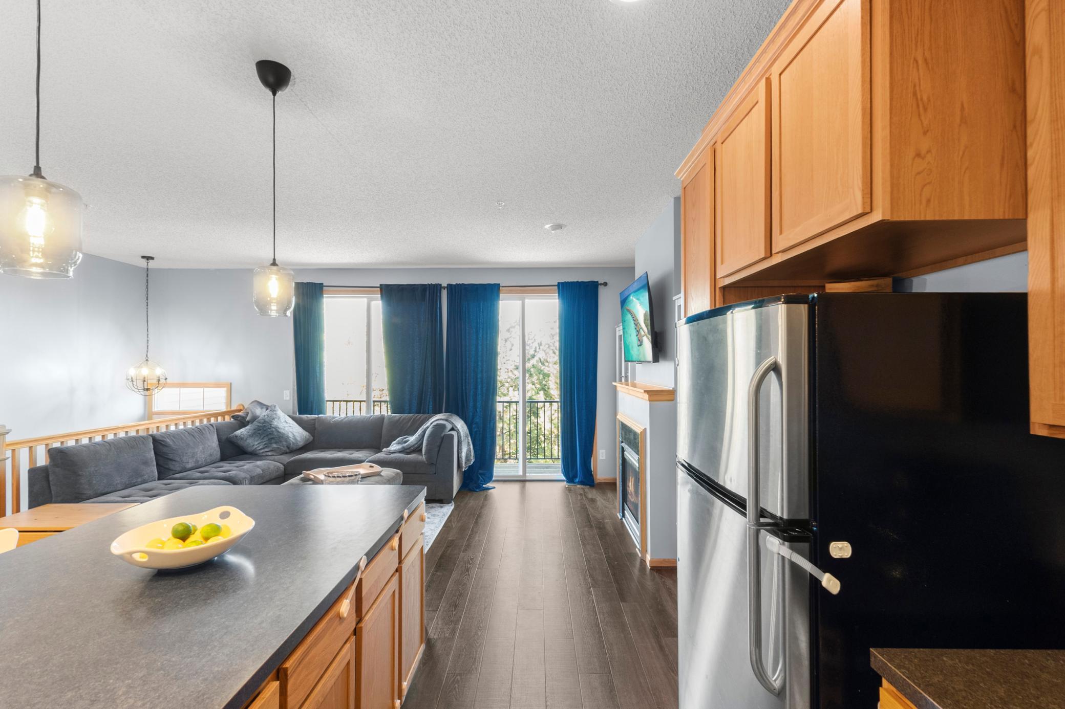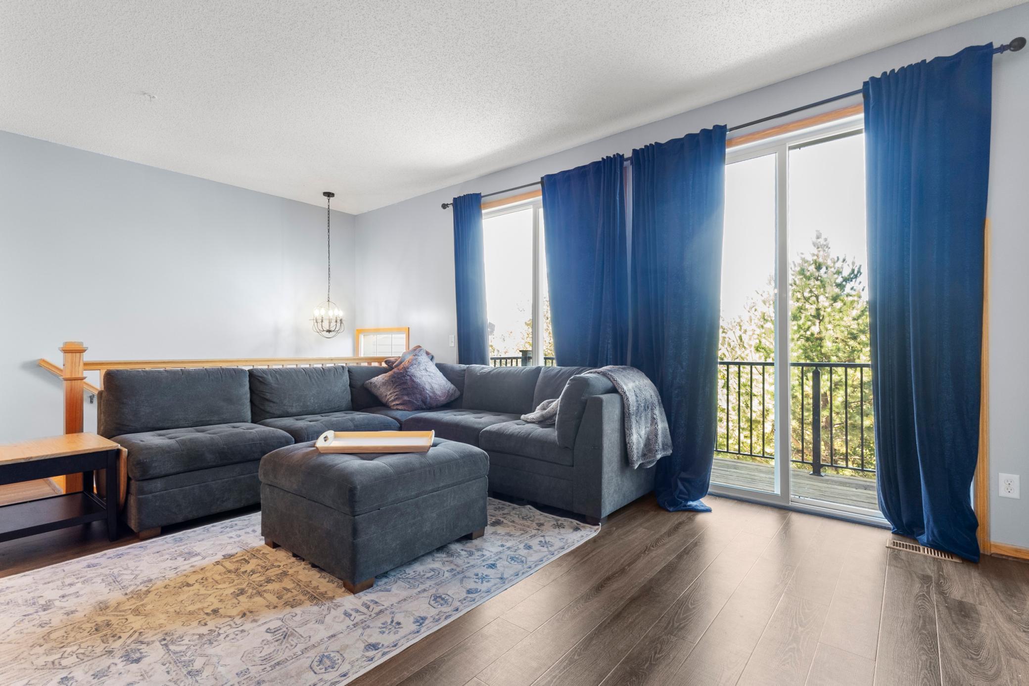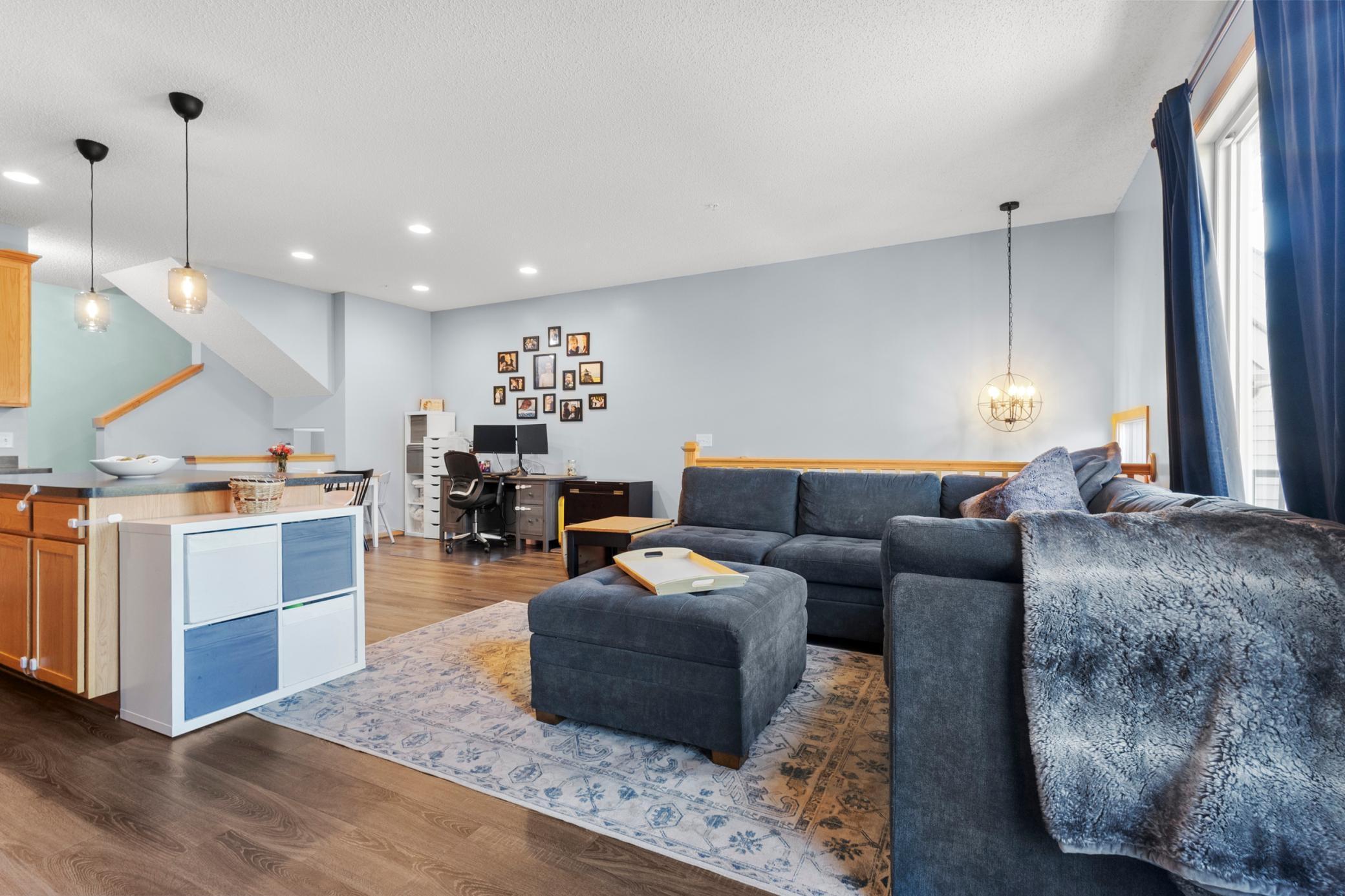 Welcome to modern townhome living in Hugo! Discover this beautifully maintained home offering the ideal blend of comfort, style, and convenience, featuring an open concept main floor with generous natural light, perfect for entertaining or relaxing. The kitchen features ample counterspace making it ideal for cooking or baking to your heart's content. This level is also home to a half bath for added convenience, and a sizeable deck for outdoor enjoyment. Upstairs, you'll find a loft which makes the perfect family room/play area, as well as the spacious primary bedroom with walk-through bathroom and oversized closet, and an additional bedroom and full bath. The lower level features plenty of storage space as well as an additional sitting room for an added living area. Recent updates include new paint, carpeting, and a new water heater. Nearby are your shared amenities: a basketball court, the playground, the swimming pool, and the fountain. With close proximity to shopping, parks, and commuter routes, this fresh and modern home is ready for you to move right in!