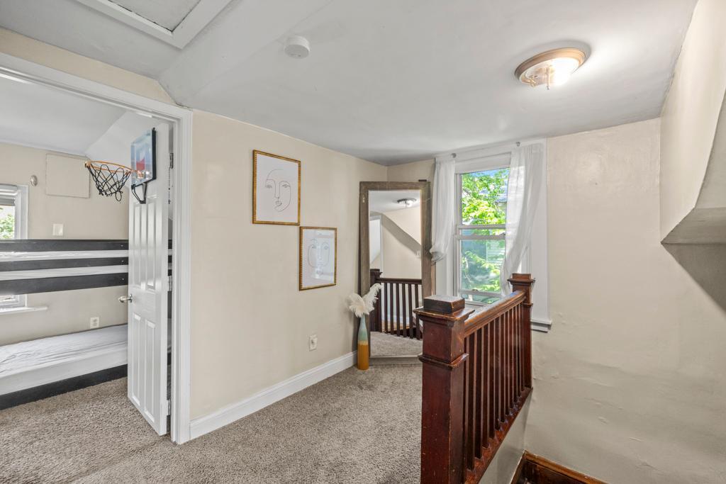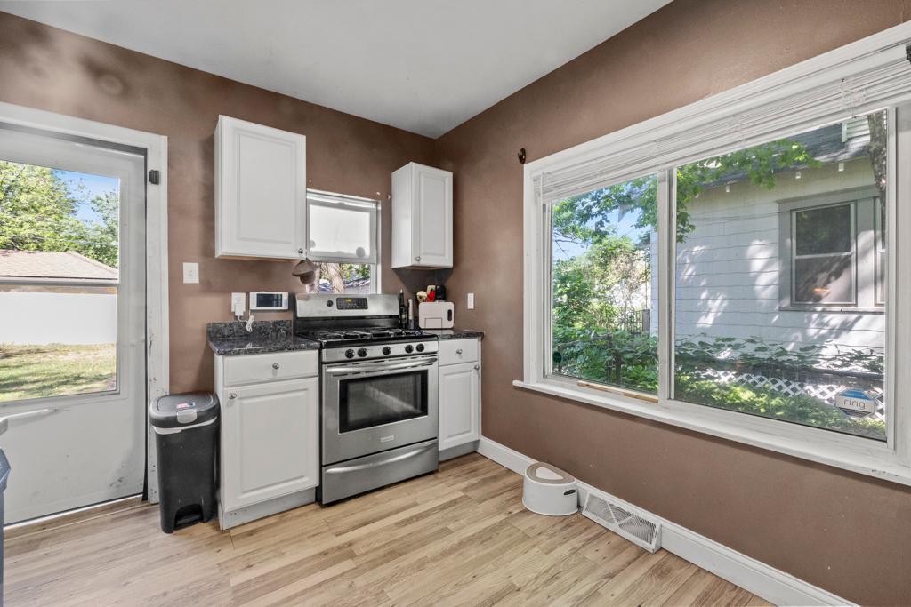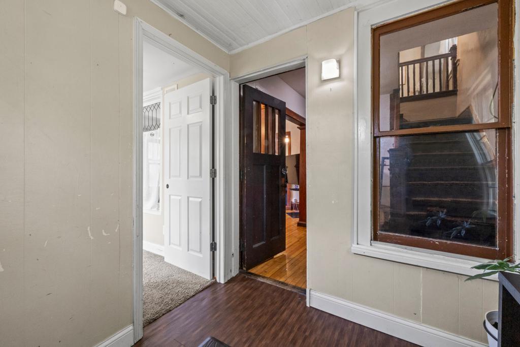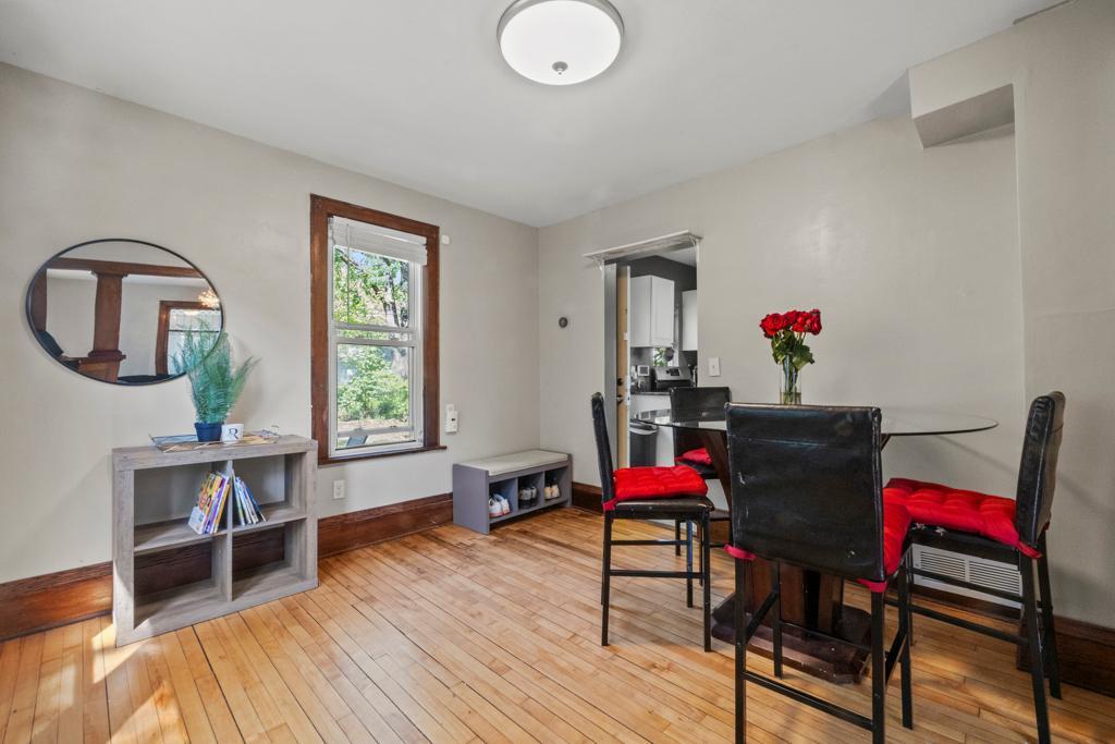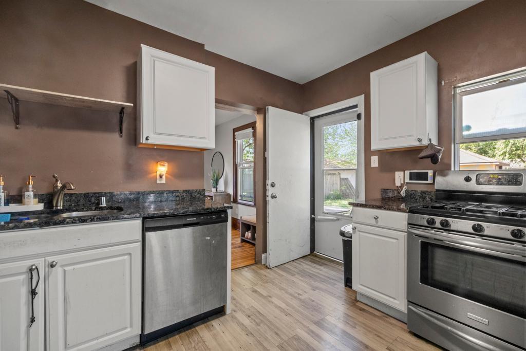 Welcome to this charming and well-maintained 3-bedroom, 2-bath home full of warmth and character! Step into the enclosed porch/mudroom, and be greeted by gorgeous original hardwood floors, an open staircase, and timeless wooden accents between the formal living and dining rooms—adding to the home's classic charm. The remodeled kitchen features stainless steel appliances and granite countertops, blending modern convenience with Old World style. A sun-filled bedroom or office on the main level offers ideal flex space for work or guests. Upstairs, you'll find two additional bedrooms and a full bath, all accessed by the beautiful original hardwood banister. The basement includes a finished bonus room, 3/4 bath, laundry, and plenty of storage. Enjoy the fully fenced backyard—perfect for pets or outdoor relaxation—and a 1-car garage with alley access. Full of character and move-in ready—come see this lovely home today!