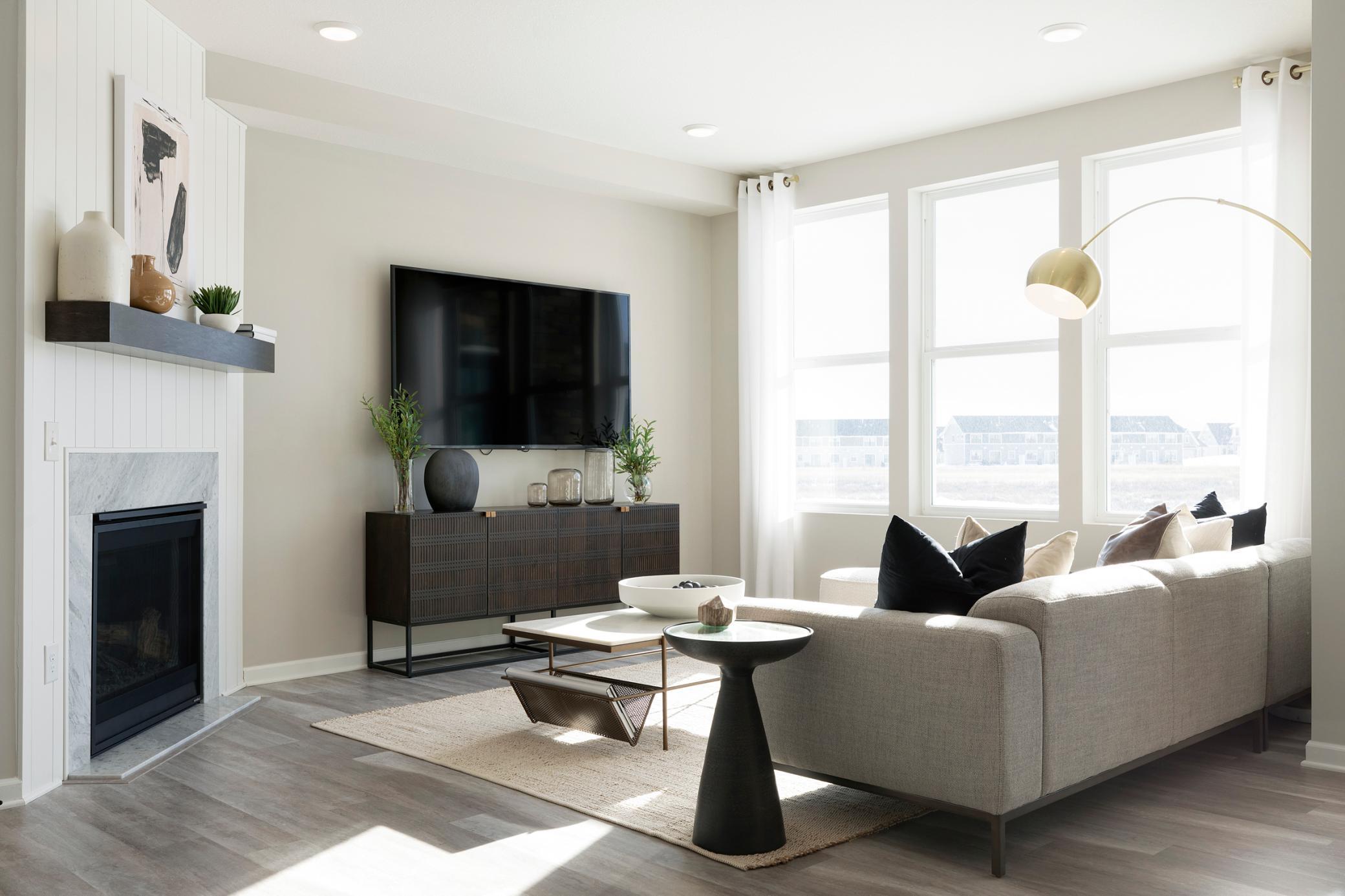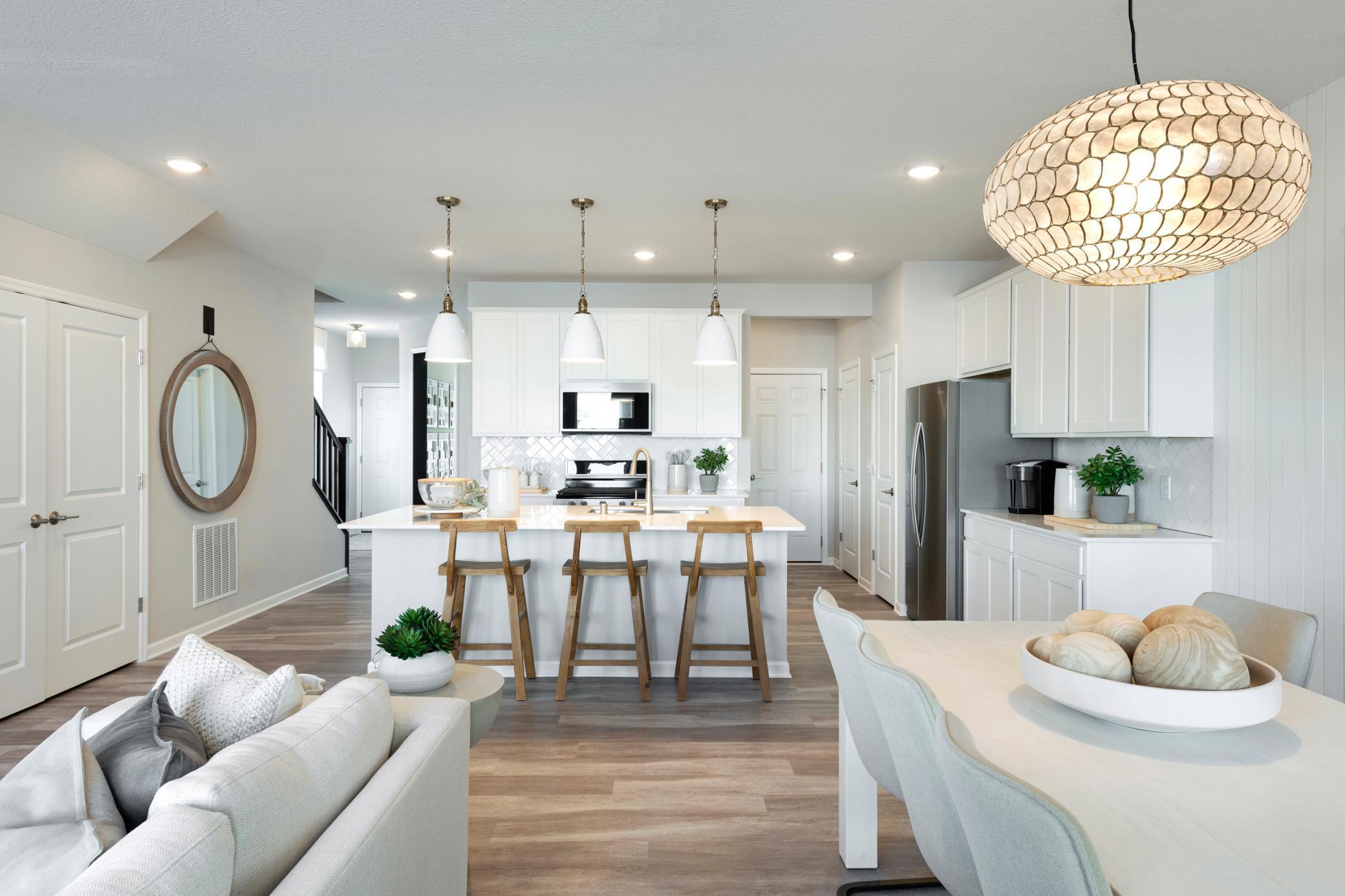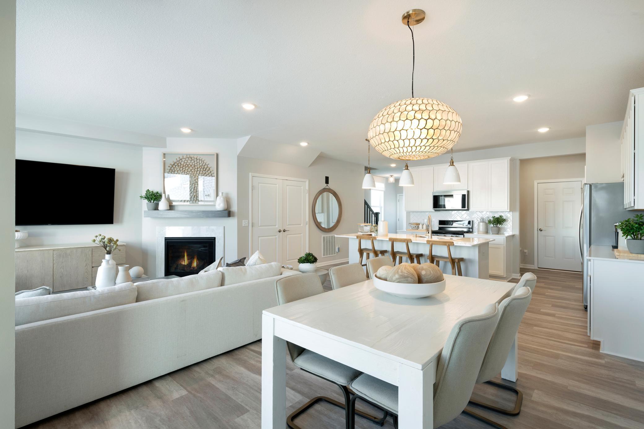 Move into this timeless classic, Ashton floorplan featuring an inviting, open-concept kitchen and living space, perfect for entertaining. Enjoy the sleek white cabinets, gorgeous white quartz countertops, and a spacious island. Relax in the gathering room in front of the fireplace, where three large windows along the back wall fill the space with natural light, creating a warm and inviting atmosphere. The upper level offers three bedrooms, including two with walk-in closets, as well as two full bathrooms and a separate laundry room equipped with an energy-efficient washer and dryer. Located in AirLake, this home is just steps away from a brand-new city park featuring a playground, baseball field, basketball court, and pickleball court. You’ll also be minutes from the Woodbury Lakes shopping center and popular restaurants.