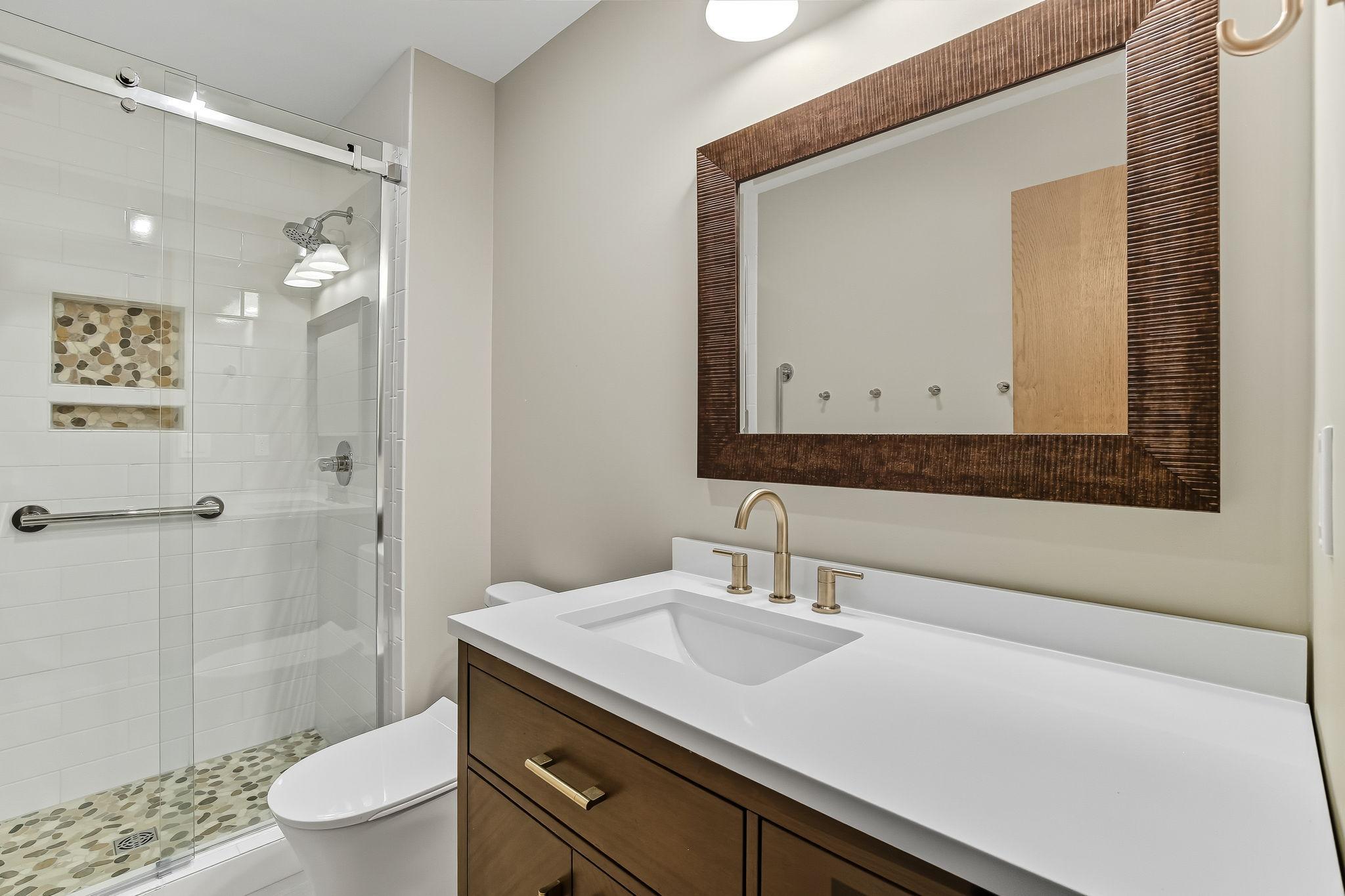 This professionally renovated end-unit condo combines modern elegance with serene surroundings, offering sweeping views of the lake and golf course. Renovated from top to bottom, the home features all new flooring, light fixtures, and fresh paint throughout. The chef’s kitchen boasts custom cabinetry, quartz countertops, premium stainless steel appliances, and a brand-new tile floor. The open living and dining area centers around a wood-burning fireplace and flows seamlessly into a sun-filled four-season sunroom with heated floors, stylish ceiling fans, and panoramic views. The private owner’s suite overlooks the lake and includes an oversized closet and a brand-new tiled ¾ bath with a charming vanity and designer fixtures. A second full bath features a tiled shower surround and floor, a stylish vanity, and custom fixtures, serving both guests and the second bedroom. That bedroom, with golf course views, offers a custom walk-in closet with built-in storage. Practical amenities include an in-unit laundry with new washer/dryer and cabinetry, plus a heated underground garage with car wash station and private storage unit. Move-in ready, this stunning condo offers modern finishes, thoughtful design, and resort-like views.