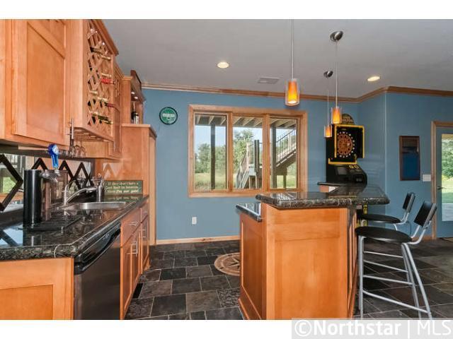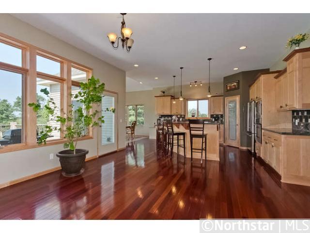Executive, walkout rambler w/every possible upgrade. 10ft ceilings, vlts, cherry flrs w/maple accents & cabinets, 3 panel drs, upgraded Jenn Air apps, wirsbo in flr heat, granite tops, surround sound, sauna, wet bar w/kegerator, wired for hot tub on patio