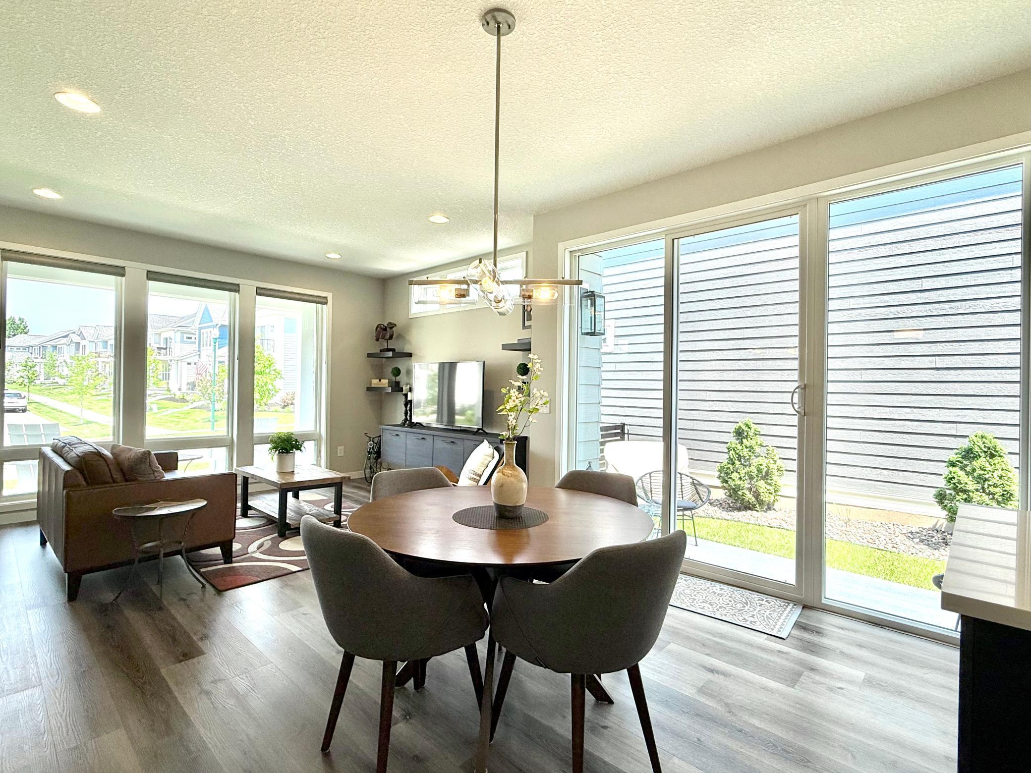 Luxury 4 bedroom 4 bath detached townhome, located on the border of Lakeville/Apple Valley/Rosemount in prestigious Spirit of Brandtjen Farms neighborhood. Spacious and open main level interiors, high ceilings, beautiful finishes, floor-to-ceiling windows, and plentiful natural light. Gourmet kitchen features stainless steel range hood and microwave drawer. Refreshed surfaces, LPV floors, high-end cabinets and appliances, quartz counters, ceramic tile backslash. 8 foot sliding glass doors open to fenced in private side yard. Full finished basement with second living room, large bedroom, and 3/4 bath. 3 spacious bedrooms upstairs, with full guest bath. Large primary bedroom with en-suite bath and walk-in closet. Spirit of Brandtjen Farms development features common elements including multiple pools, clubhouses, workout facilities, sand volleyball courts, basketball courts, lakes, extensive walking trails, and a community dog park. Homeowners Association is responsible for lawn maintenance, irrigation, snow removal, trash and recycling. Convenient access to grocery stores, shopping, and restaurants. Come see this very well maintained home today! Agents and potential buyers to verify all measurements for accuracy.