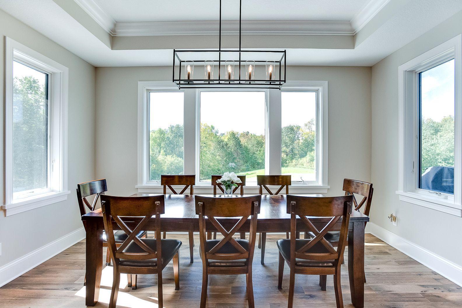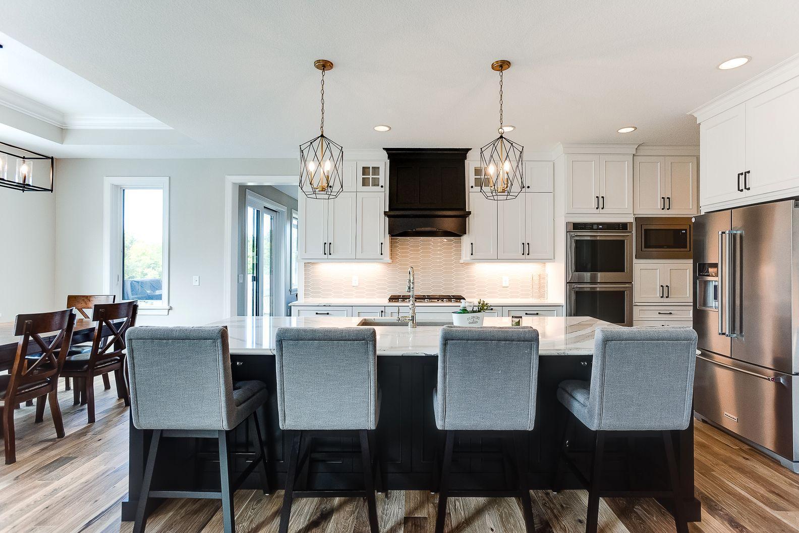 To-Be-Built Home in the New Elwell Farms – Ham Lake This stunning to-be-built home is located in the new Elwell Farms development of Ham Lake and offers beautiful pond views. NIH Homes has 15 premium acreage sites available, featuring wooded, pond, and scenic views overlooking the Carlos Avery Wildlife Management Area. The neighborhood features outstanding amenities including a pool and clubhouse, park trails, a fishing pier, and so much more! Enjoy one-level living at its finest, with tall, expansive windows and ceilings, custom wood beam details, and a gourmet kitchen with a large island — perfect for entertaining. The main floor includes a luxurious primary suite with a spa-like bathroom, second bedroom, dedicated home office and a bright and airy sunroom The finished lower level boasts 9' ceilings, a spacious family room/rec room, wet bar, two additional bedrooms, a full bath, a large exercise room, and abundant storage space.