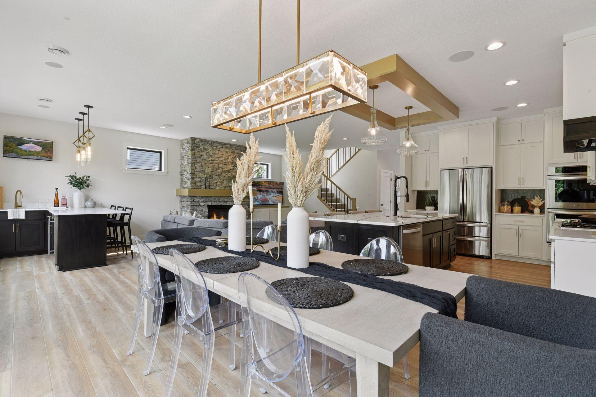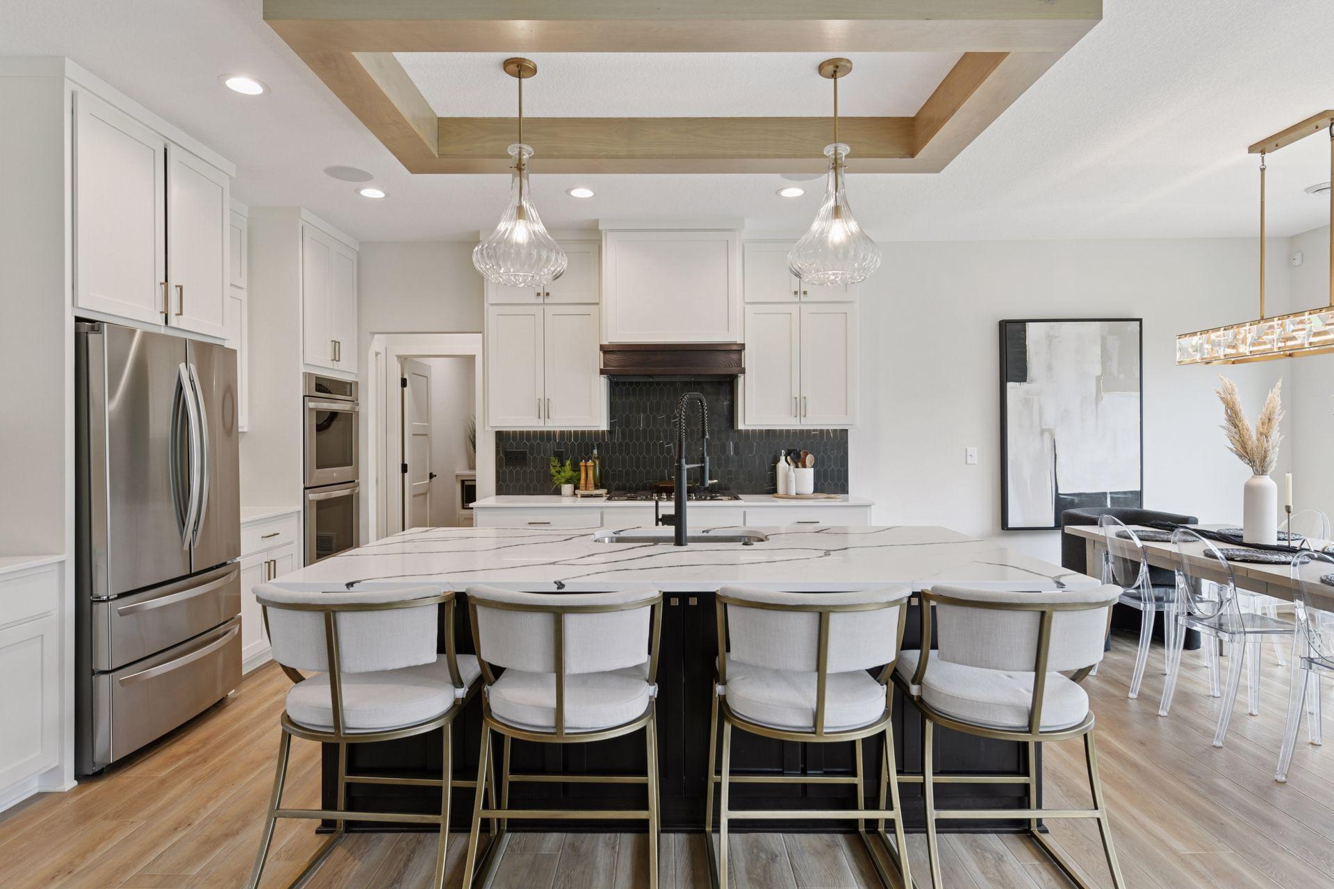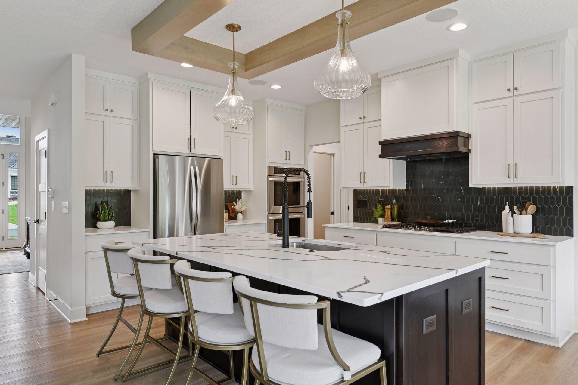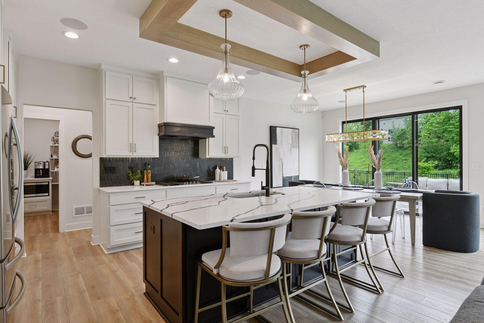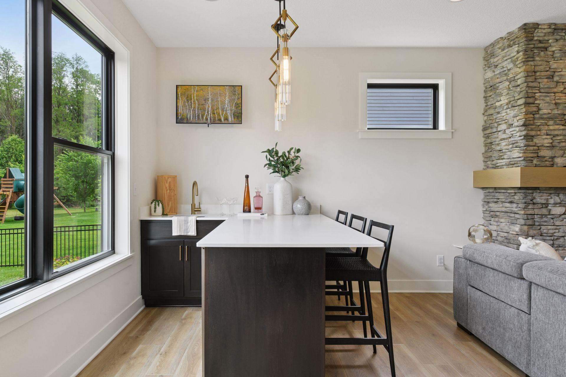 Welcome to this stunning 2022-built home in a quiet cul-de-sac just one street off beautiful Prior Lake! Designed for both luxury and function, this 5-bed, 4-bath gem features a main-floor bedroom with a full bath—perfect for guests or multigenerational living. The chef’s kitchen is a showstopper with premium finishes, open flow to the living space, and a sleek wet bar ideal for entertaining. Cozy up around the stone fireplace or head upstairs to a lofted living area that provides the perfect flex space. The primary suite is a retreat all its own, boasting a spa-inspired ensuite with a bubbler bath and a spacious walk-in closet. Outside, the flat, fenced-in backyard is ready for your dream setup—wired for both a hot tub and pool. The 3-car heated garage with mounted TV makes winter mornings easier and game nights better. Fully equipped with a security system and built-in speakers, this home offers peace of mind and the perfect soundtrack for every season. Located just five minutes from schools, shops, dining, and lake access, this home truly has it all!