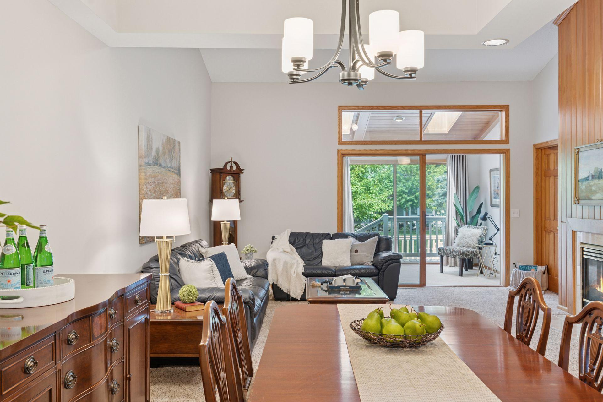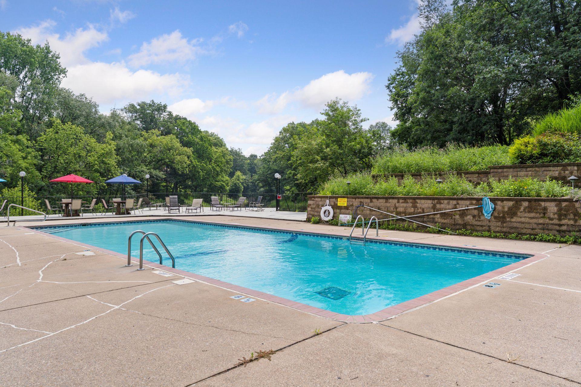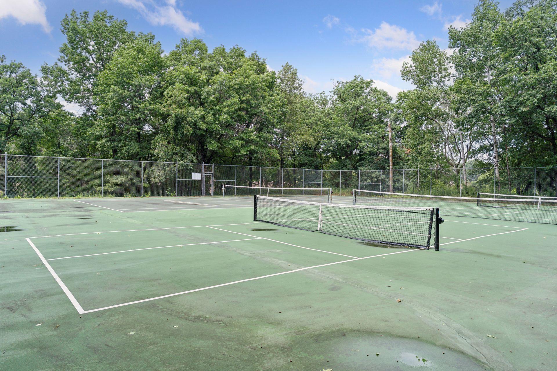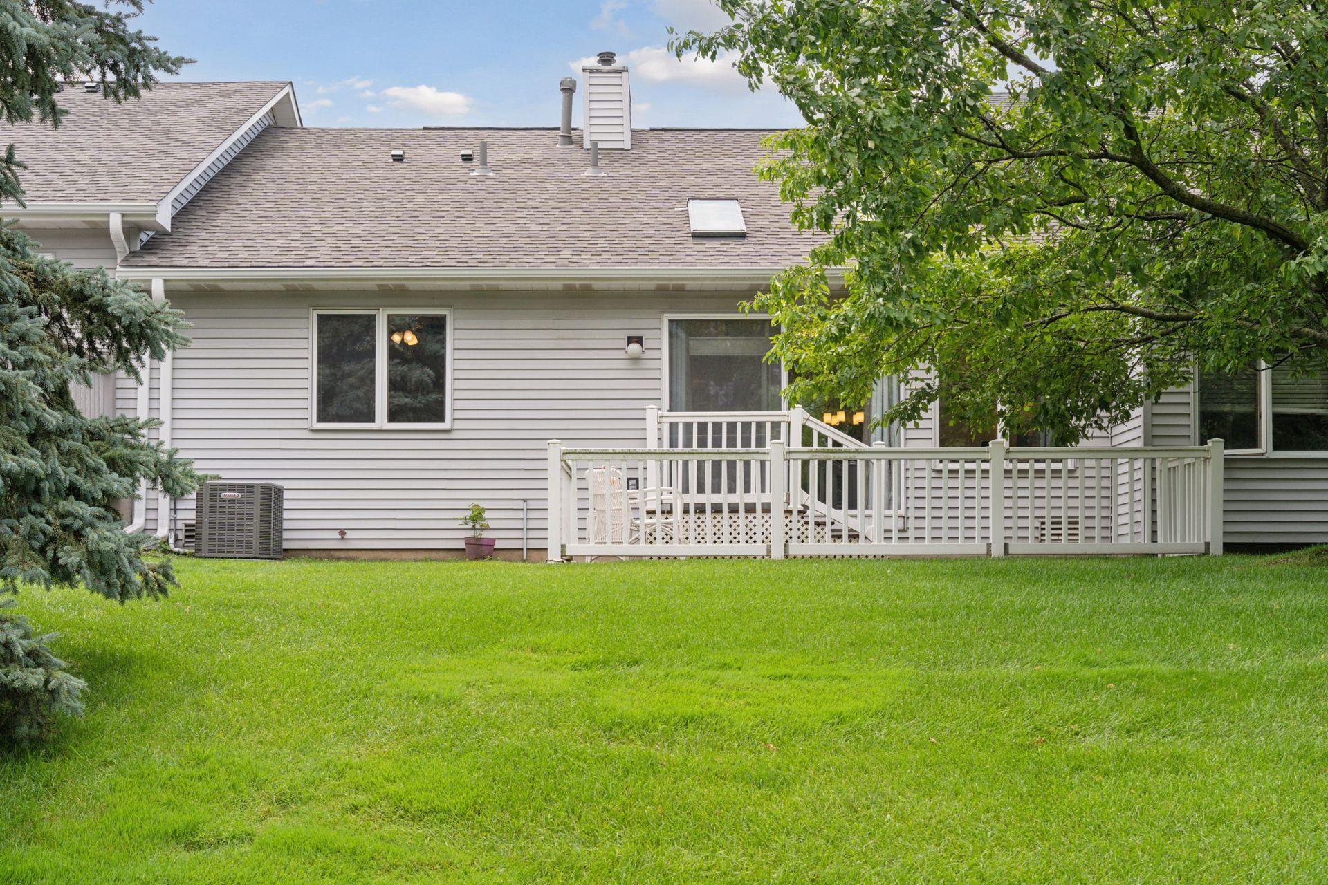 Discover one level living at its best. This rambler style townhome has all the must have features plus rarely available Association amenities including community pool, tennis & pickleball courts and a fabulous Club House. FEATURES & UPDATES INCLUDE: You are welcomed by a covered front porch, then greeted by an open floor plan with vaulted ceilings, a floor to ceiling gas fireplace is the focal point of the living room, there is the must have sunroom also with vaulted ceiling, a wall of windows and skylights to keep it open light & bright, a main floor primary suit with large walk-in closet and a private primary bath with a Jacuzzi walk-in whirlpool tub, freshly paint throughout in designer grey colors, new on-trend light fixtures in matte black, hardwood laminate flooring in the foyer, kitchen and both bedrooms, spacious eat-in kitchen with pullout cabinet shelves, ceramic tile main bath, convenient main floor laundry, sliding glass for the sunroom leads to a nice sized patio, the garage has finished walls and ample storage cabinets. The Association features a Club House with a community room & kitchen, recreation room with fireplace, a beautiful pool with views overlooking the pond, tennis & pickleball courts. These are really nice amenities! All this plus the townhome is covered by a one year home warranty.