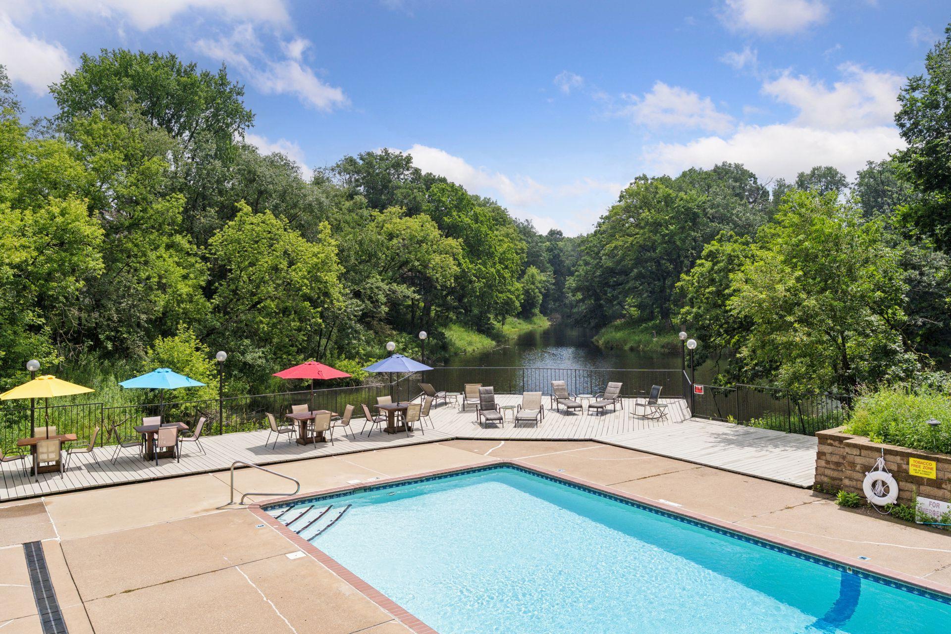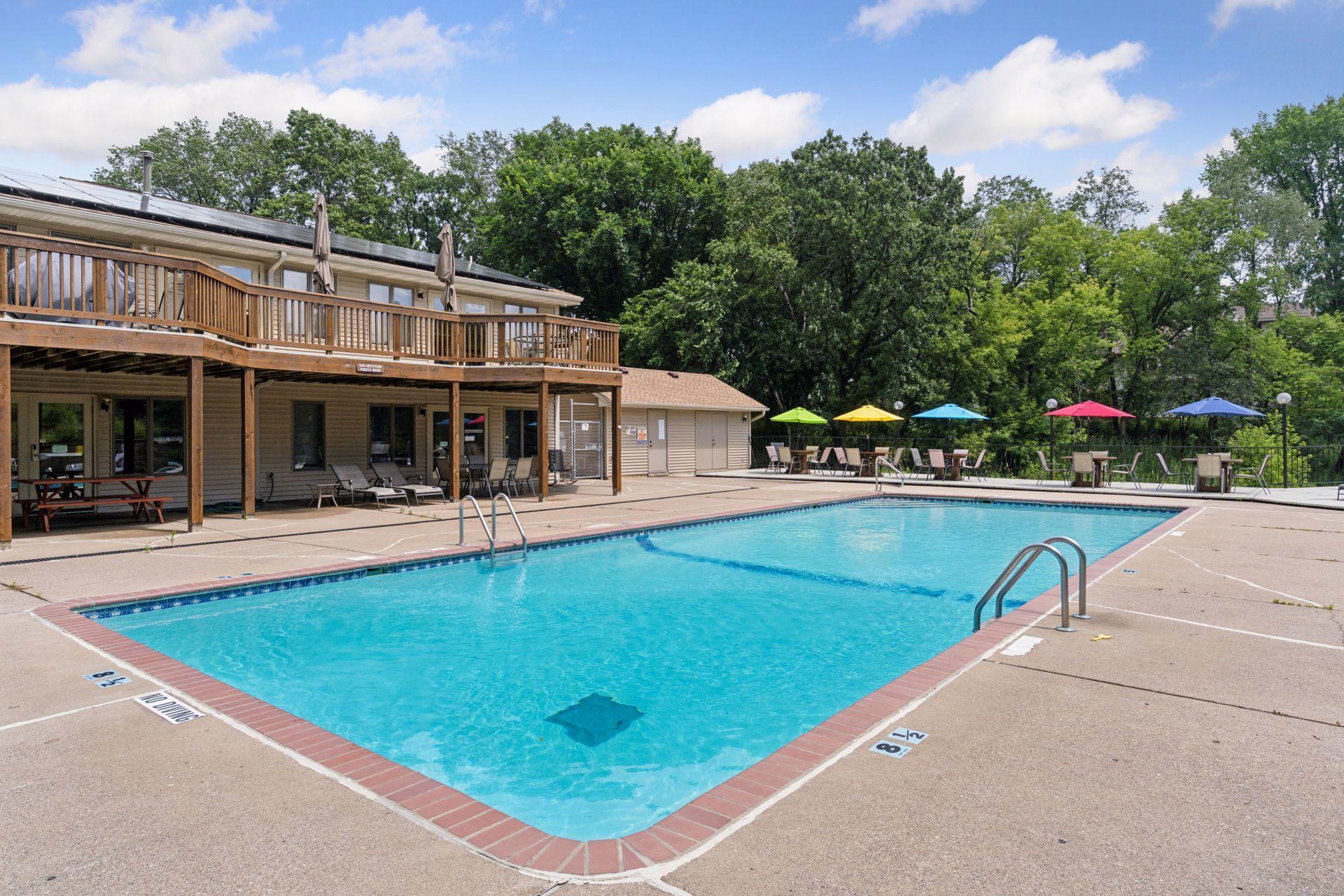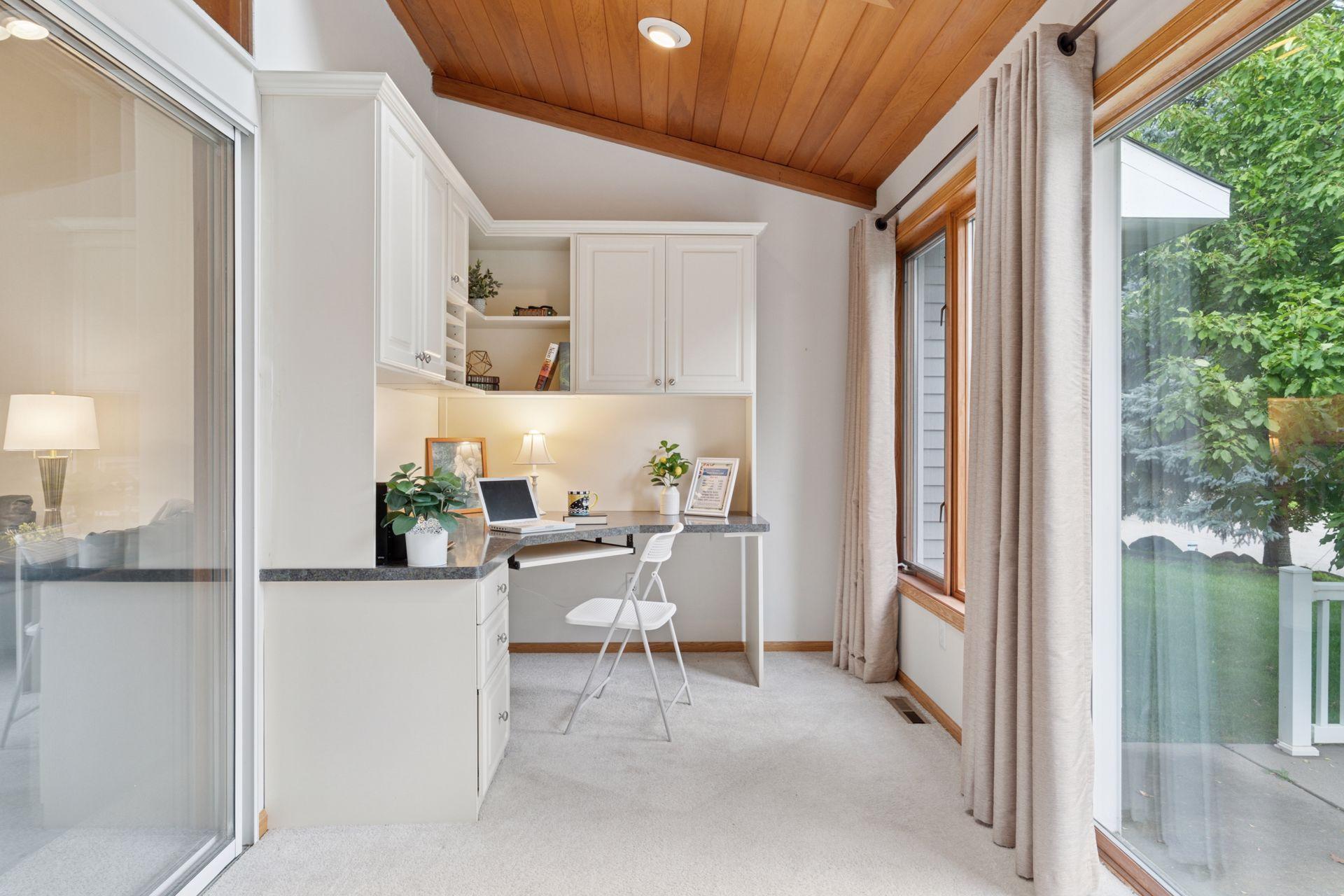 Discover one level living at its best. This rambler style townhome has all the must have features plus rarely available Association amenities including community pool, tennis & pickleball courts and a fabulous Club House. FEATURES & UPDATES INCLUDE: You are welcomed by a covered front porch, then greeted by an open floor plan with vaulted ceilings, a floor to ceiling gas fireplace is the focal point of the living room, there is the must have sunroom also with vaulted ceiling, a wall of windows and skylights to keep it open light & bright, a main floor primary suit with large walk-in closet and a private primary bath with a Jacuzzi walk-in whirlpool tub, freshly paint throughout in designer grey colors, new on-trend light fixtures in matte black, hardwood laminate flooring in the foyer, kitchen and both bedrooms, spacious eat-in kitchen with pullout cabinet shelves, ceramic tile main bath, convenient main floor laundry, sliding glass for the sunroom leads to a nice sized patio, the garage has finished walls and ample storage cabinets. The Association features a Club House with a community room & kitchen, recreation room with fireplace, a beautiful pool with views overlooking the pond, tennis & pickleball courts. These are really nice amenities! All this plus the townhome is covered by a one year home warranty.