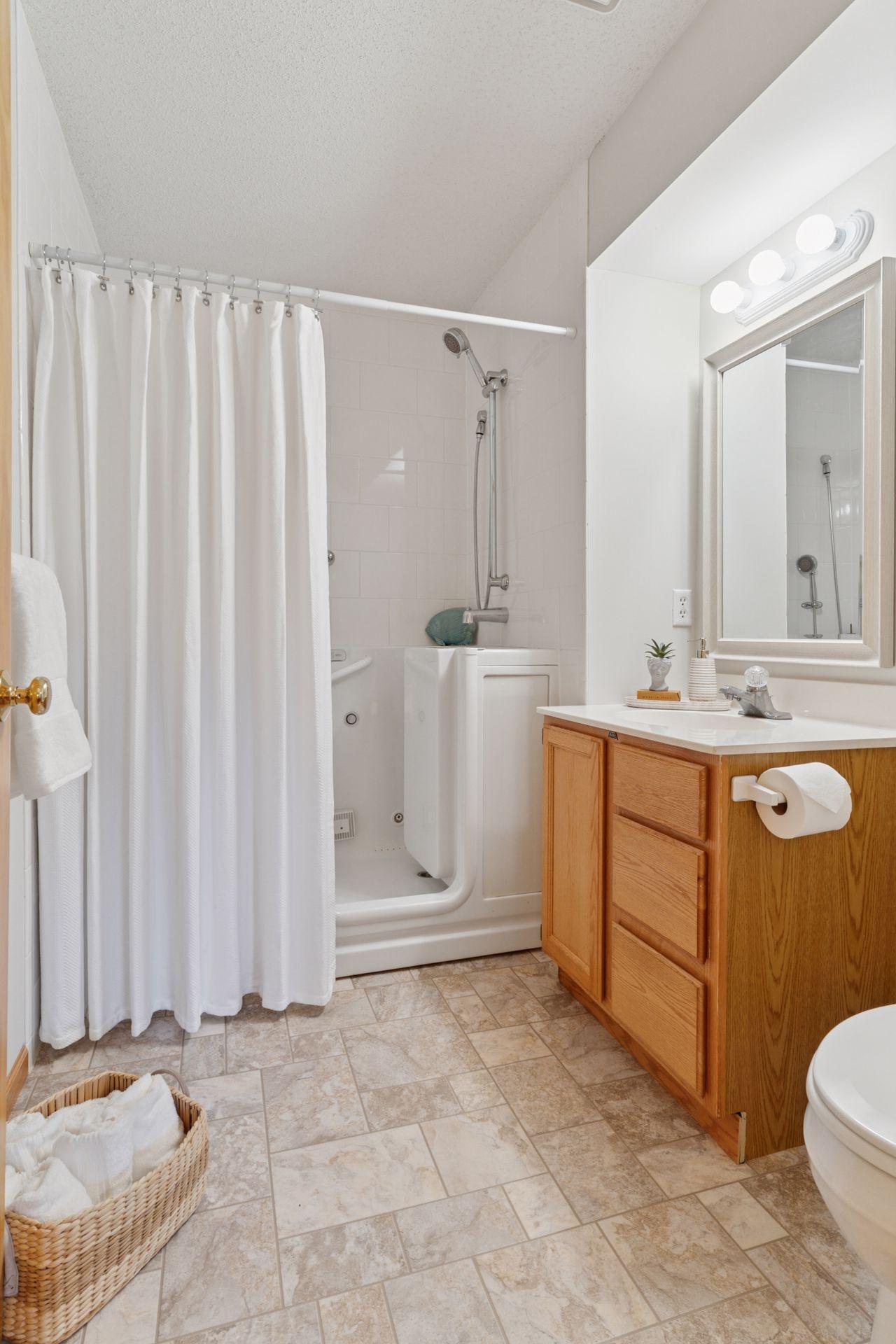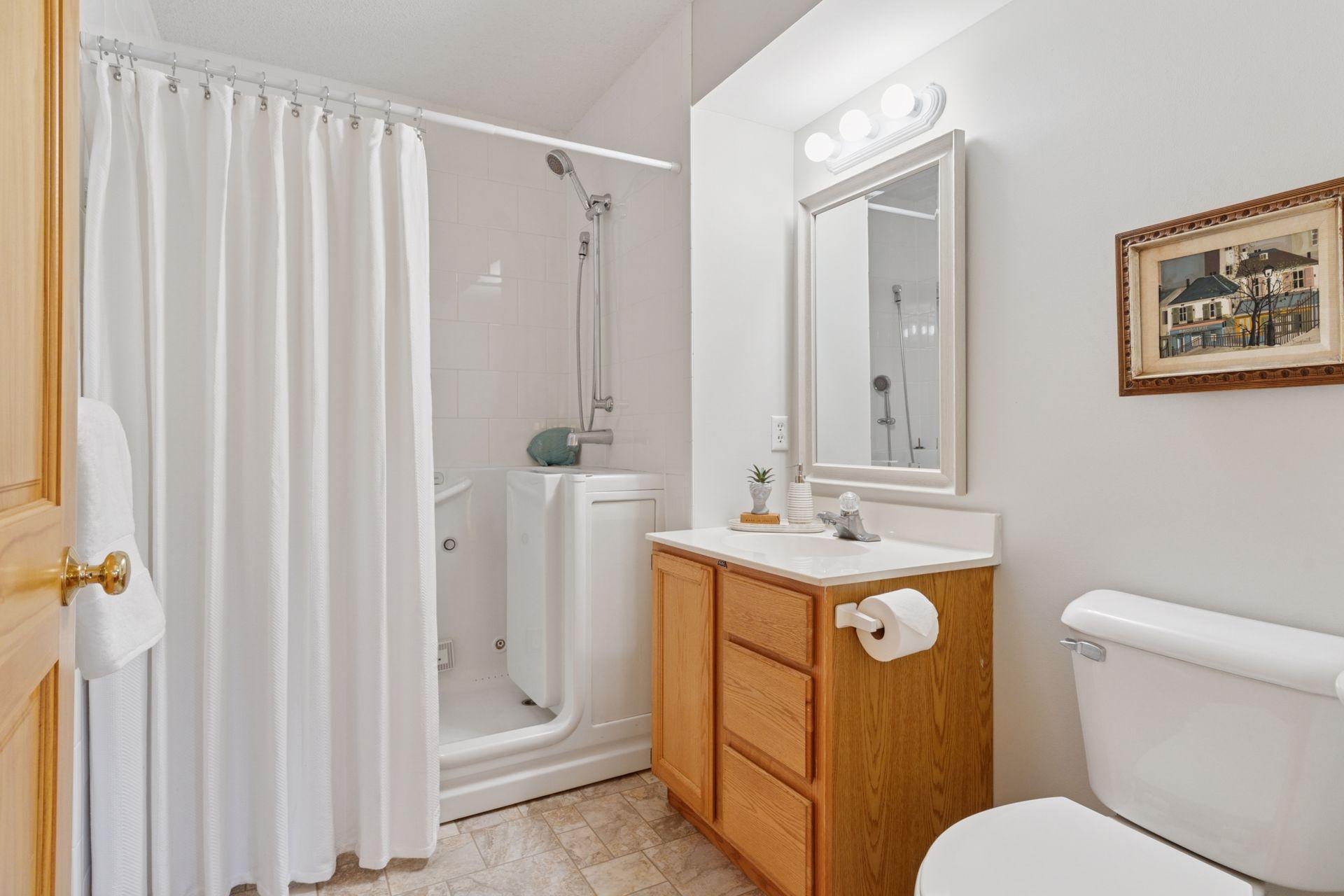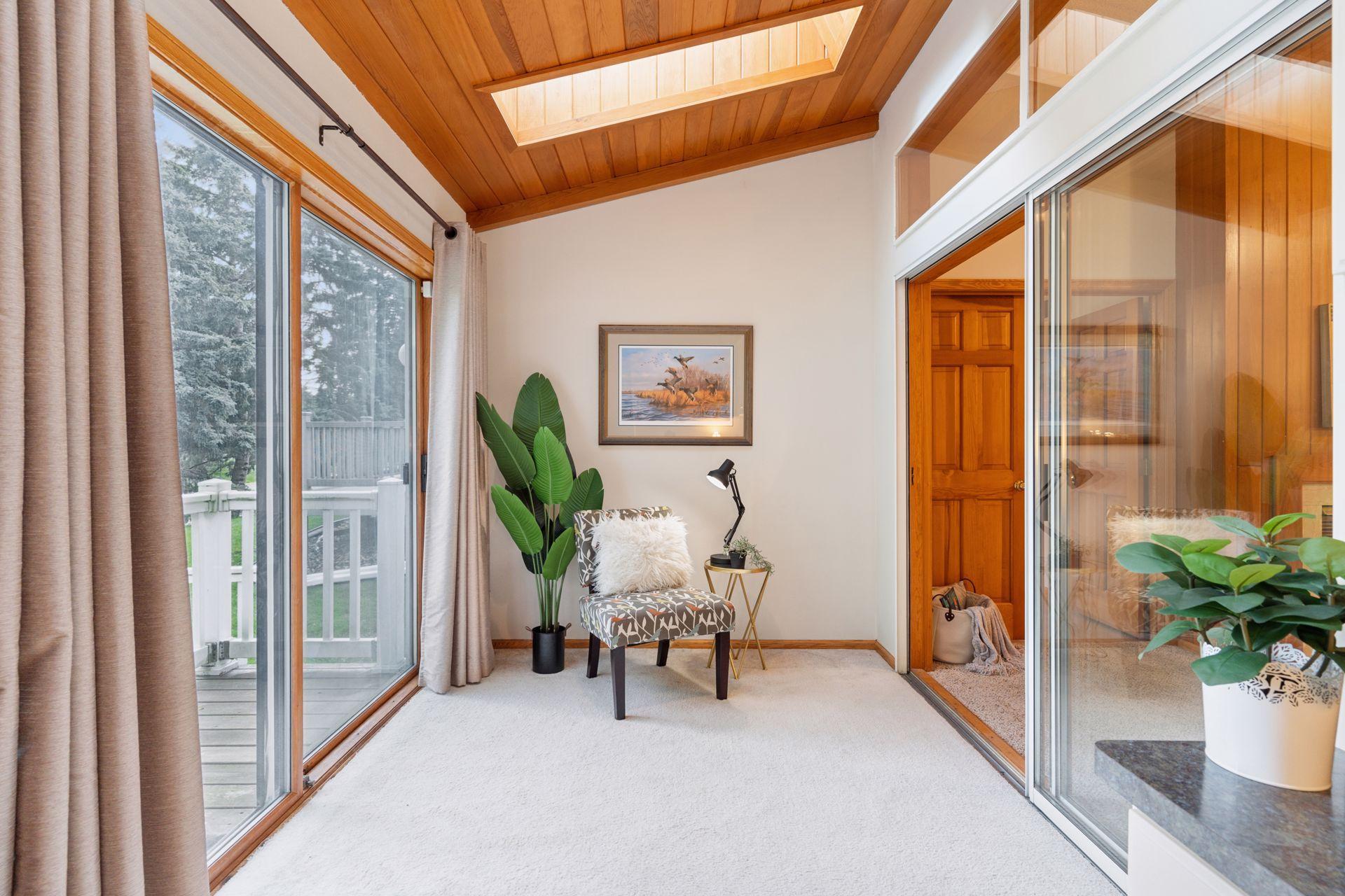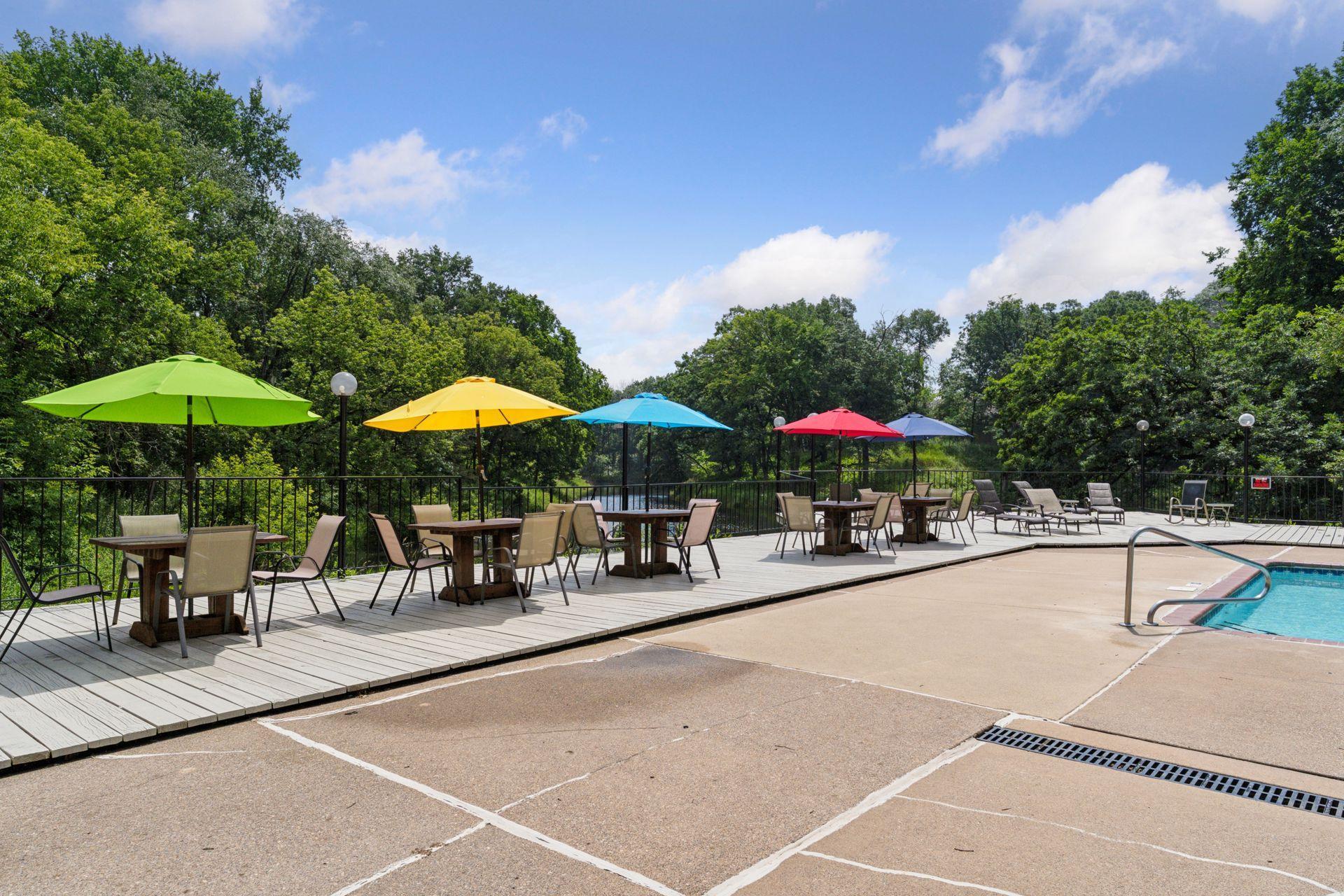 Discover one level living at its best. This rambler style townhome has all the must have features plus rarely available Association amenities including community pool, tennis & pickleball courts and a fabulous Club House. FEATURES & UPDATES INCLUDE: You are welcomed by a covered front porch, then greeted by an open floor plan with vaulted ceilings, a floor to ceiling gas fireplace is the focal point of the living room, there is the must have sunroom also with vaulted ceiling, a wall of windows and skylights to keep it open light & bright, a main floor primary suit with large walk-in closet and a private primary bath with a Jacuzzi walk-in whirlpool tub, freshly paint throughout in designer grey colors, new on-trend light fixtures in matte black, hardwood laminate flooring in the foyer, kitchen and both bedrooms, spacious eat-in kitchen with pullout cabinet shelves, ceramic tile main bath, convenient main floor laundry, sliding glass for the sunroom leads to a nice sized patio, the garage has finished walls and ample storage cabinets. The Association features a Club House with a community room & kitchen, recreation room with fireplace, a beautiful pool with views overlooking the pond, tennis & pickleball courts. These are really nice amenities! All this plus the townhome is covered by a one year home warranty.