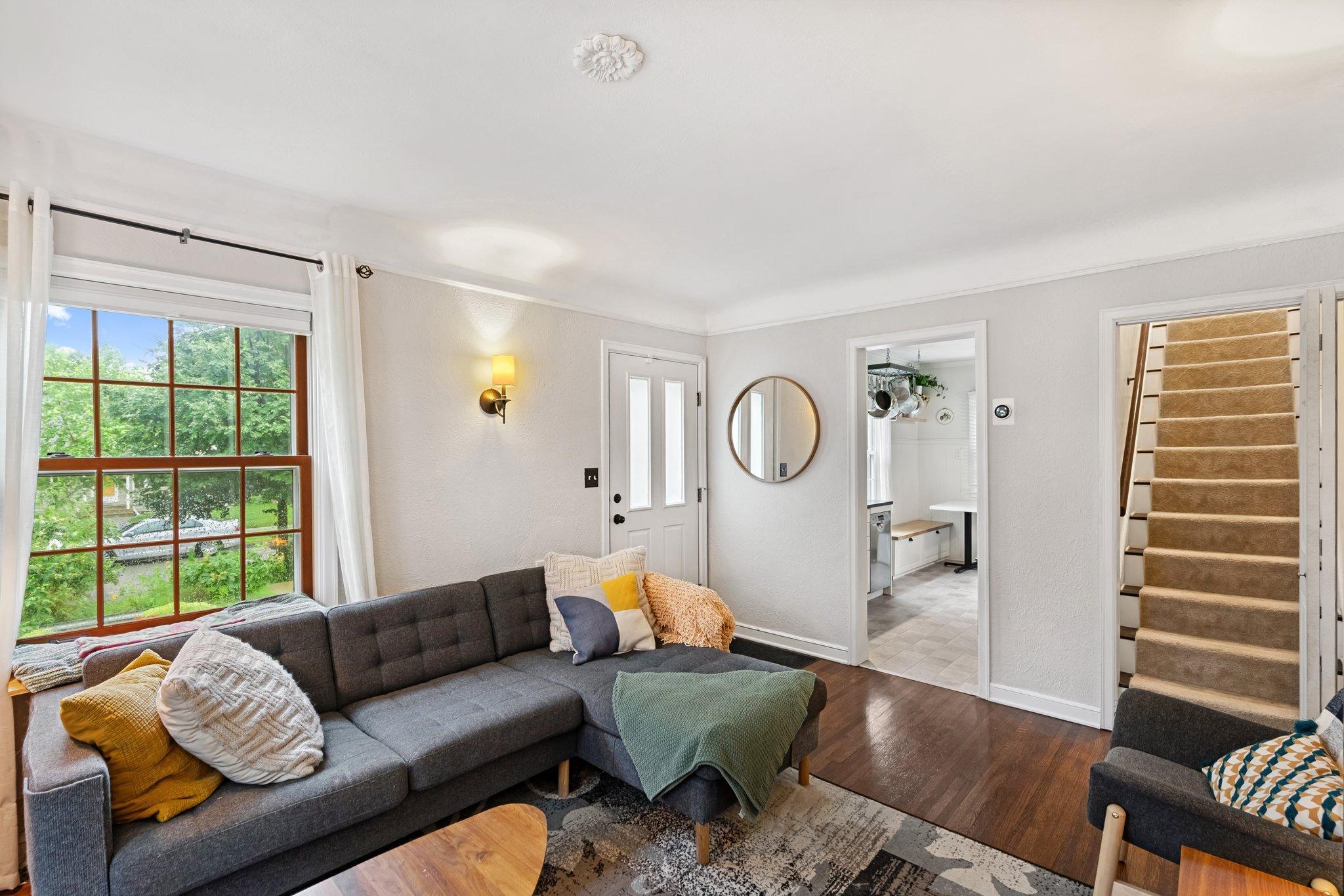 Cape Cod 3BR, 2BA home with classic charm and smart updates now available for rent steps from Minnehaha Creek! Live nestled on a quiet residential street with mature trees and surrounded by lakes, parks, trails and landmarks of the neighborhood. Top-floor primary bedroom has plenty of closet space, great built-ins, hardwood floor, and skylights. On the main level you’ll find the fully updated kitchen with breakfast nook, living room with great built-ins and electric fireplace, sunny 2nd bedroom, updated bathroom, and 3rd bedroom / home office leading out to amazing back yard. Finished basement features a ¾ bathroom, plenty of den space, murphy bed, storage and forced air HVAC hooked up to Nest Thermostat. The back yard is your new oasis with a large deck, patio, amazing landscaping, and a 2-stall garage with EV charger. Tenant responsible for all utilities and exterior maintenance. App Fee: $78; Admin Fee: $150; Security Deposit is One Month’s Rent.