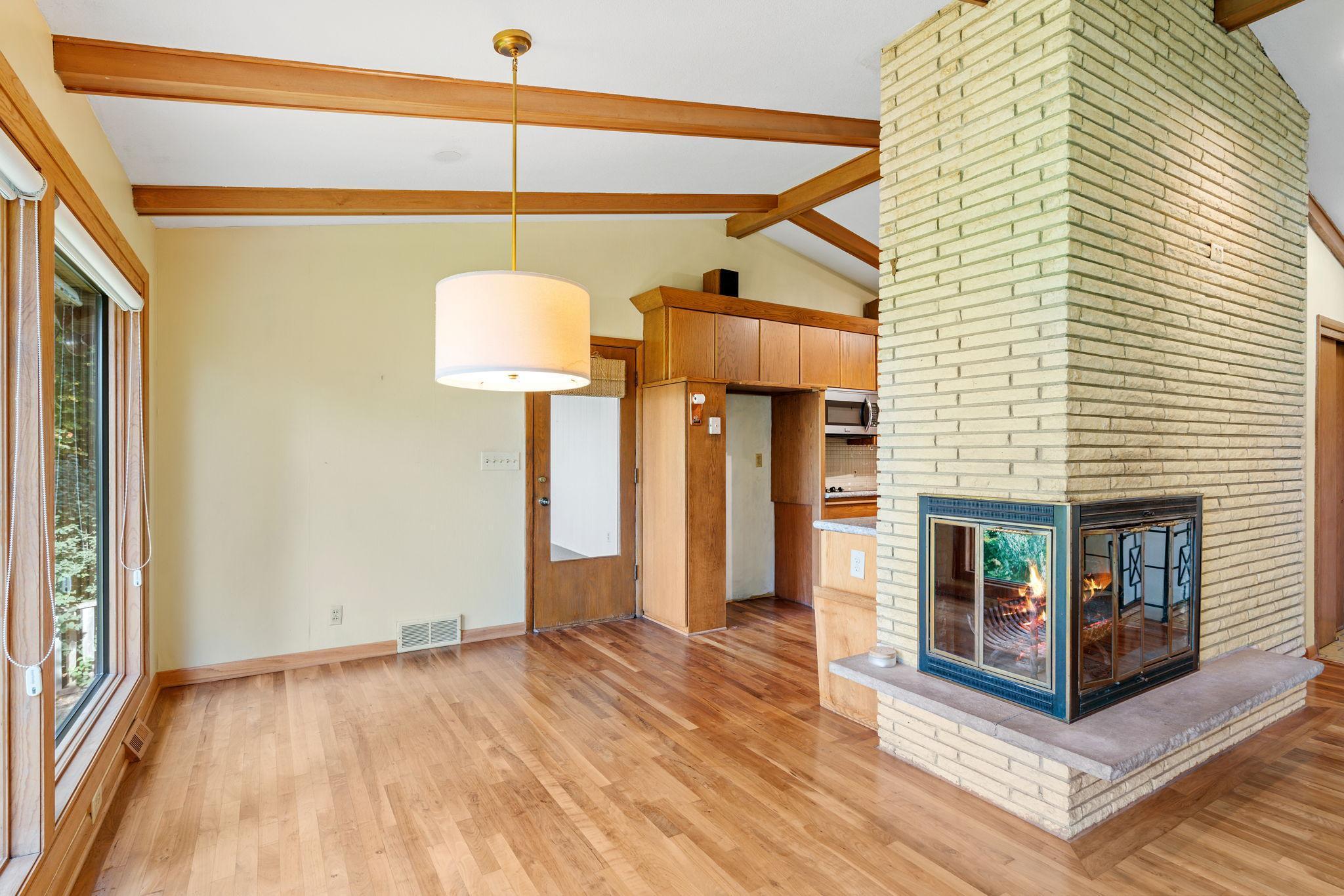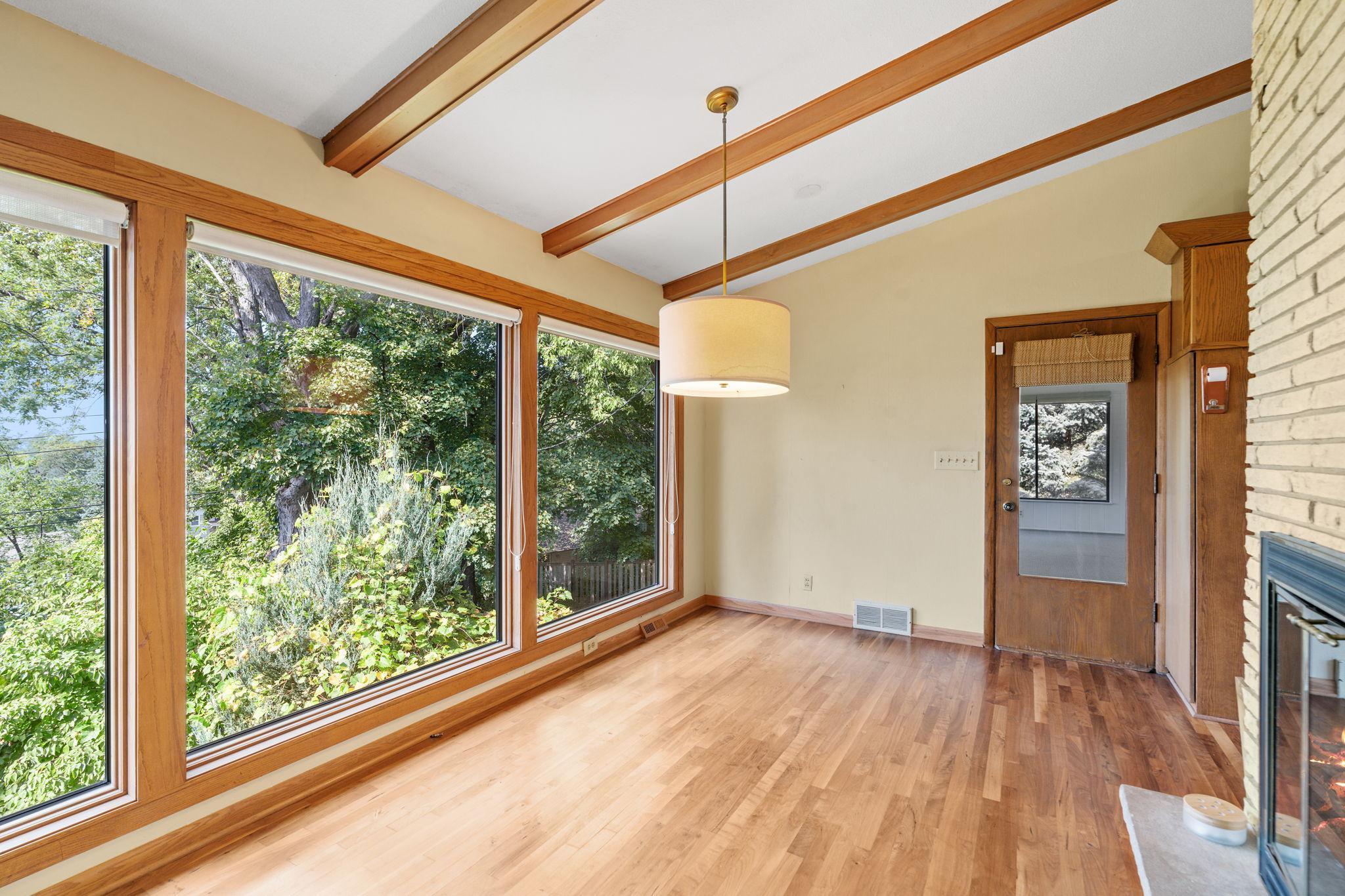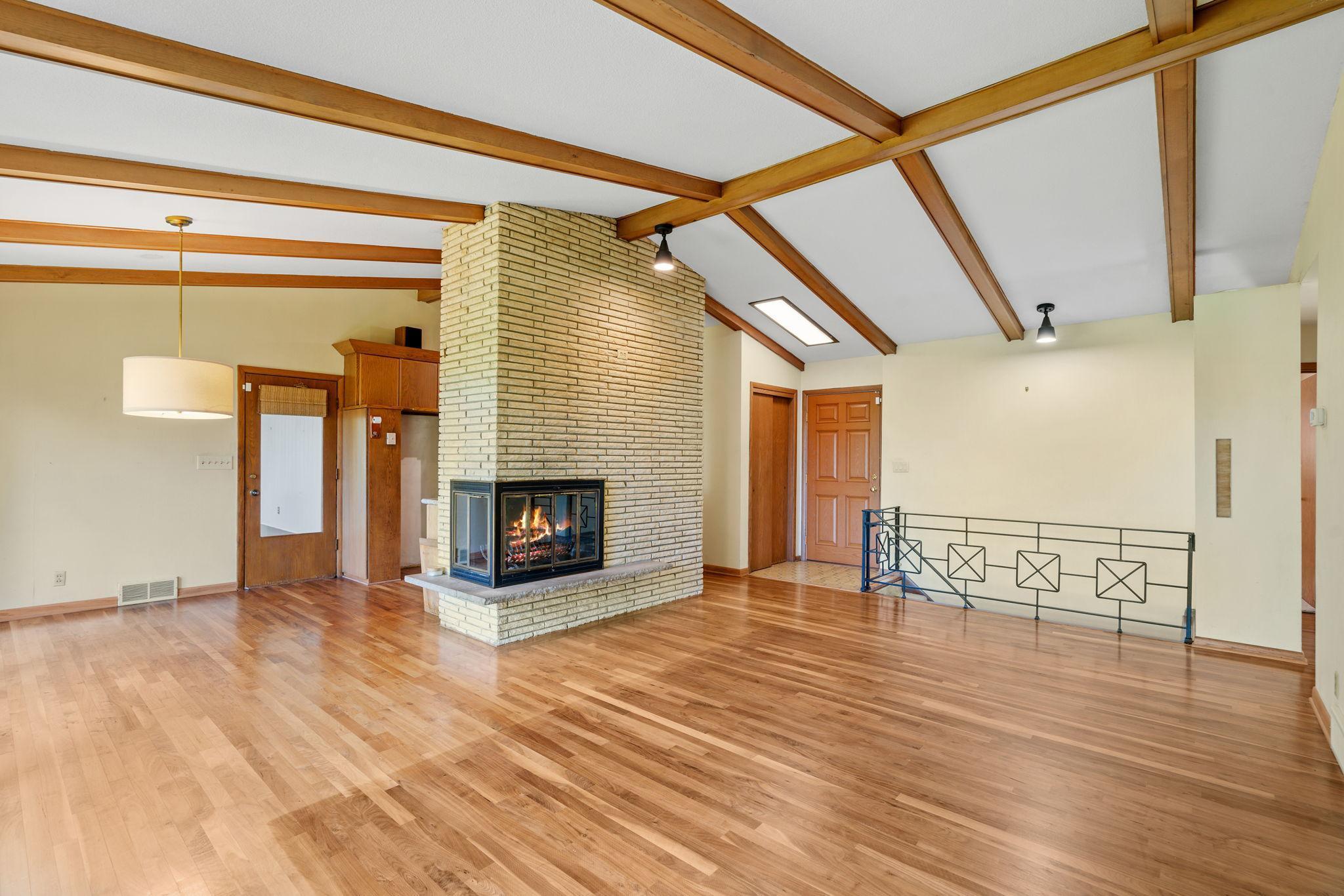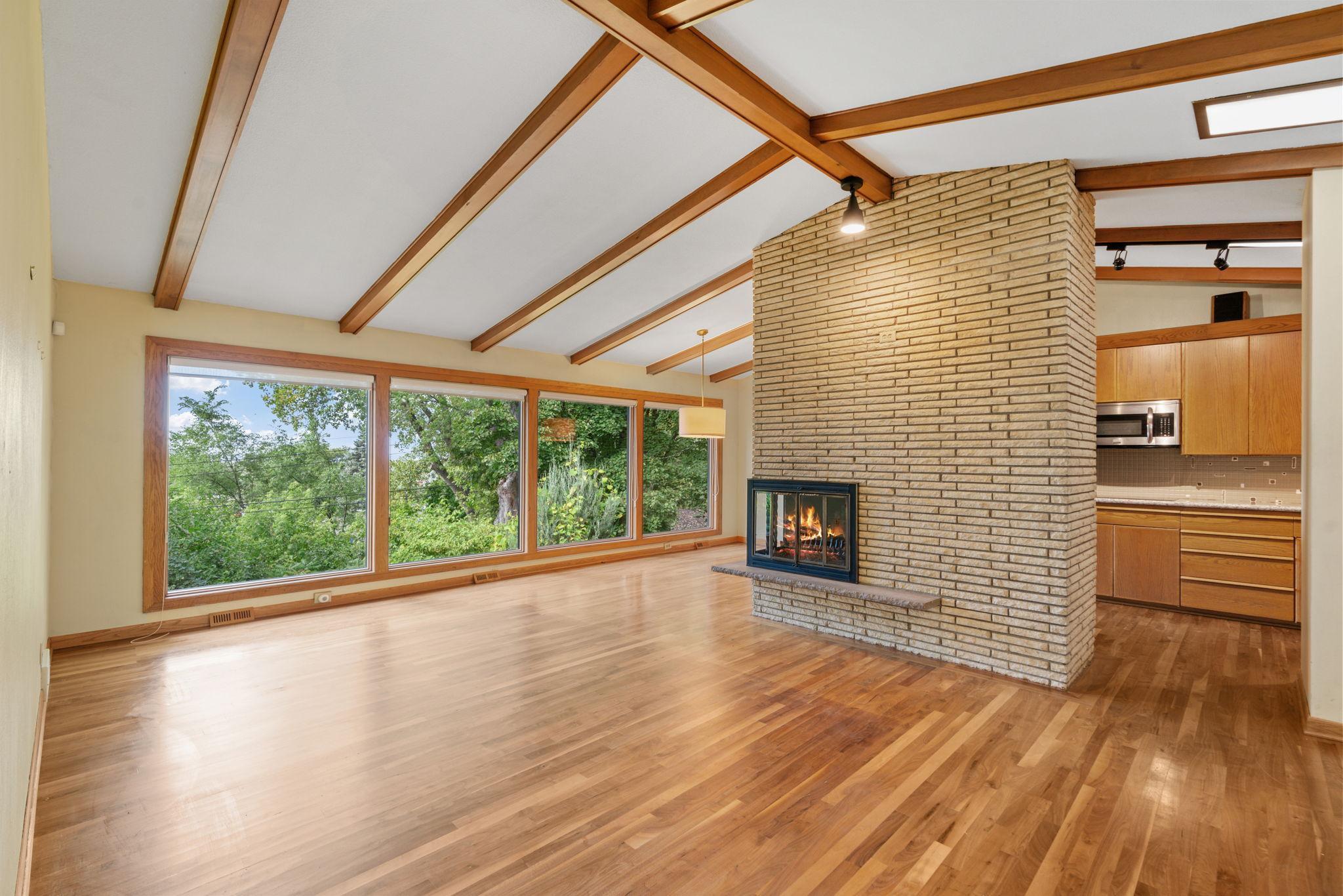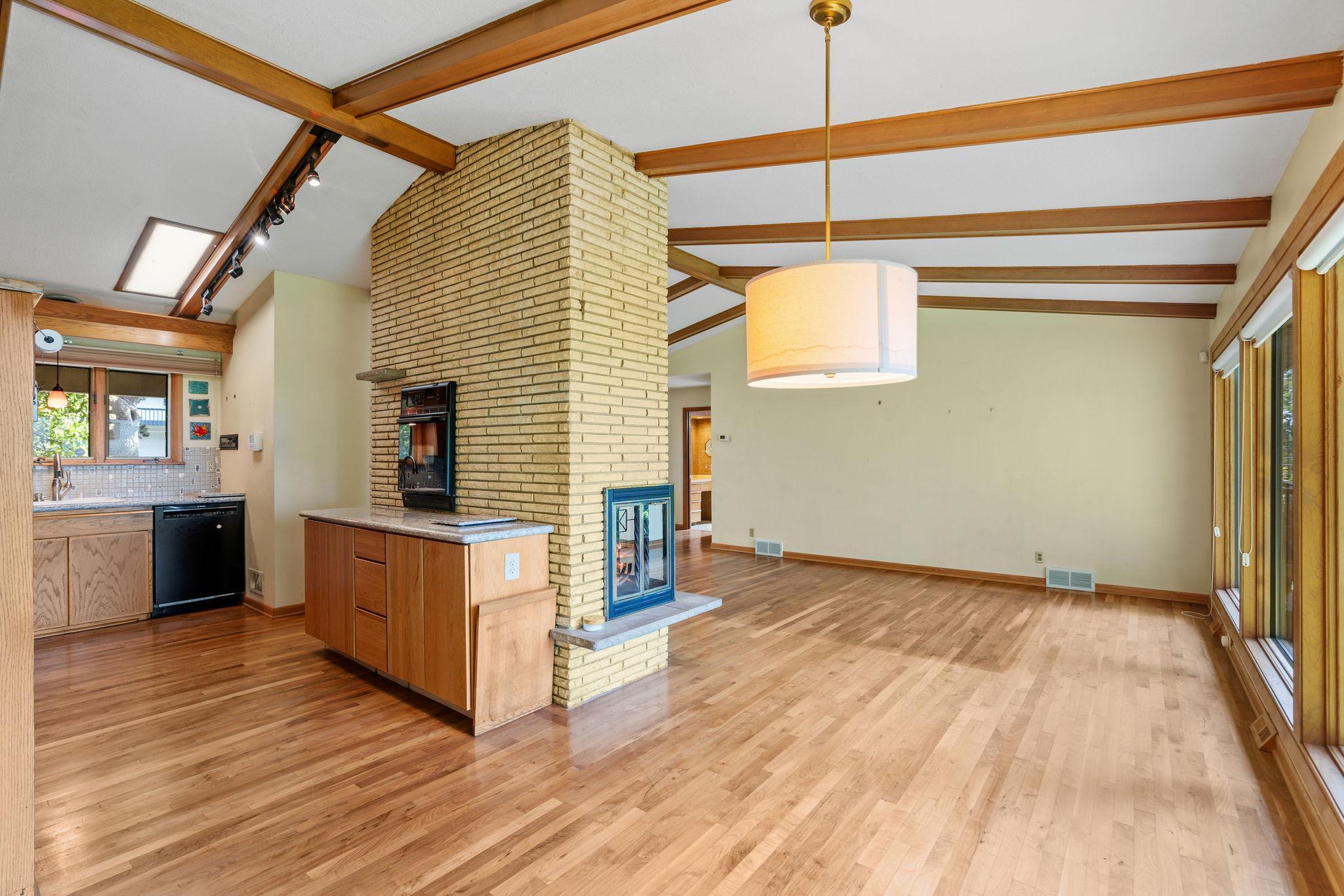 Discover timeless mid-century modern style in this one-owner Fridley home! Designed with striking architectural details, this property features vaulted ceilings, two fireplaces, and generous windows that fill the living spaces with natural light. The main level offers a spacious living room, nice size kitchen, a primary bedroom with ensuite ½ bath, and a bright four-season porch overlooking the private backyard. The walkout lower level leads to two inviting patios—perfect for entertaining or relaxing outdoors. An oversized garage provides excellent storage and workspace. With its solid design and original character, this home offers incredible potential for you to make it your own while enjoying the comfort and charm of classic mid-century living.