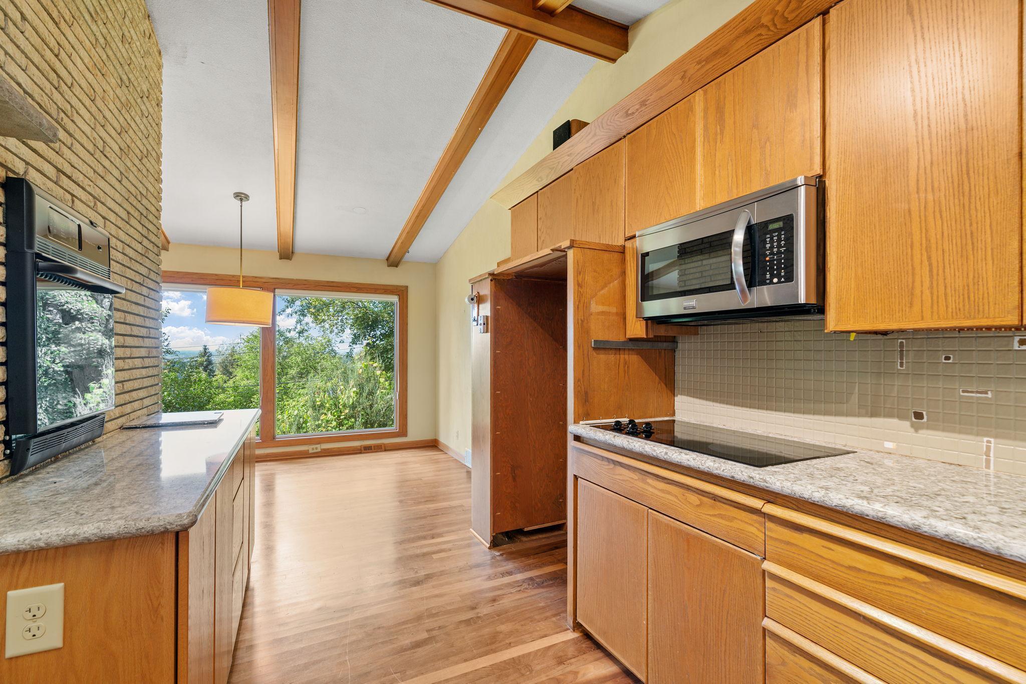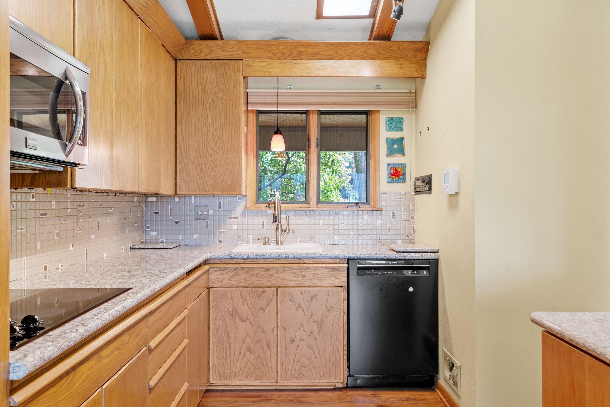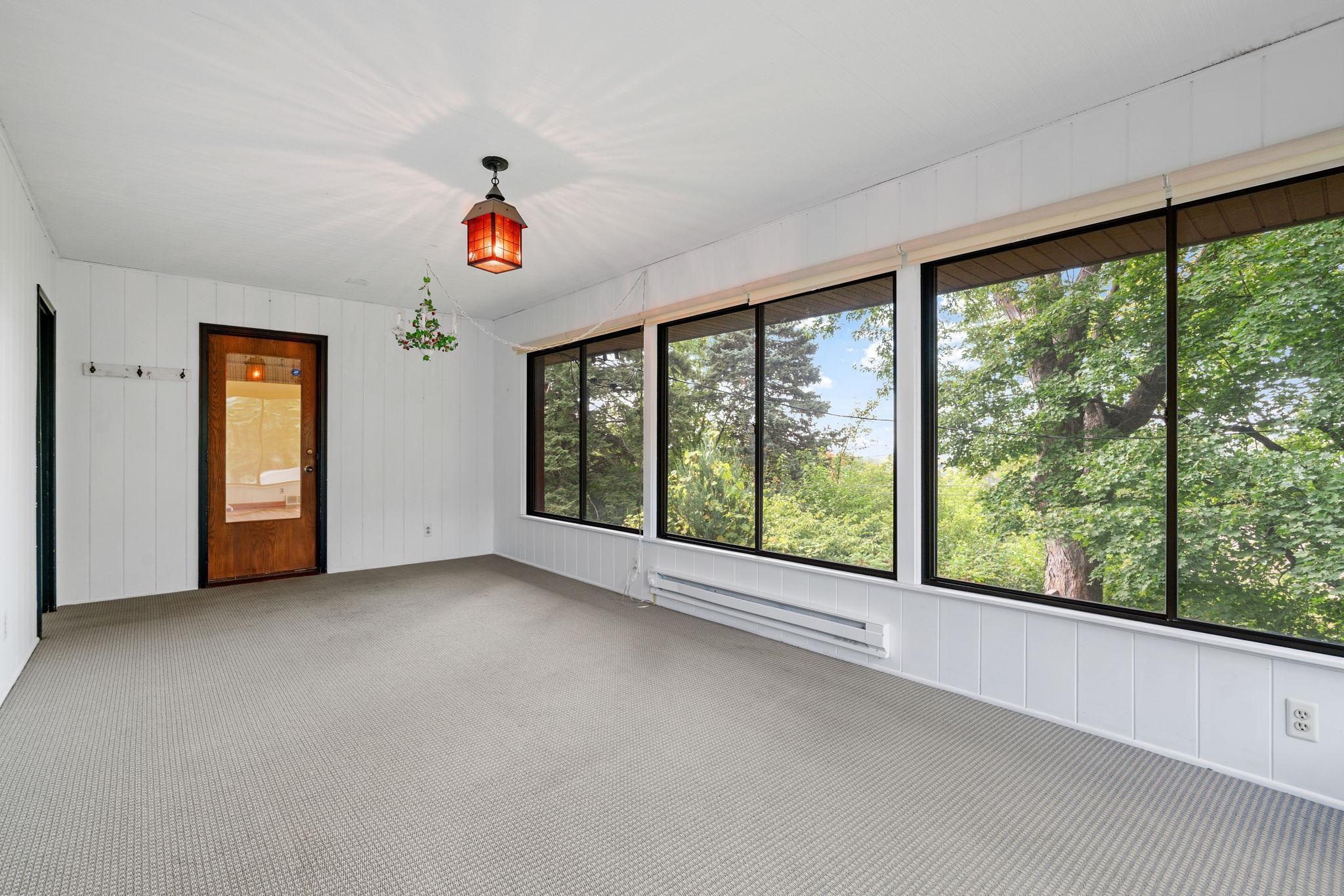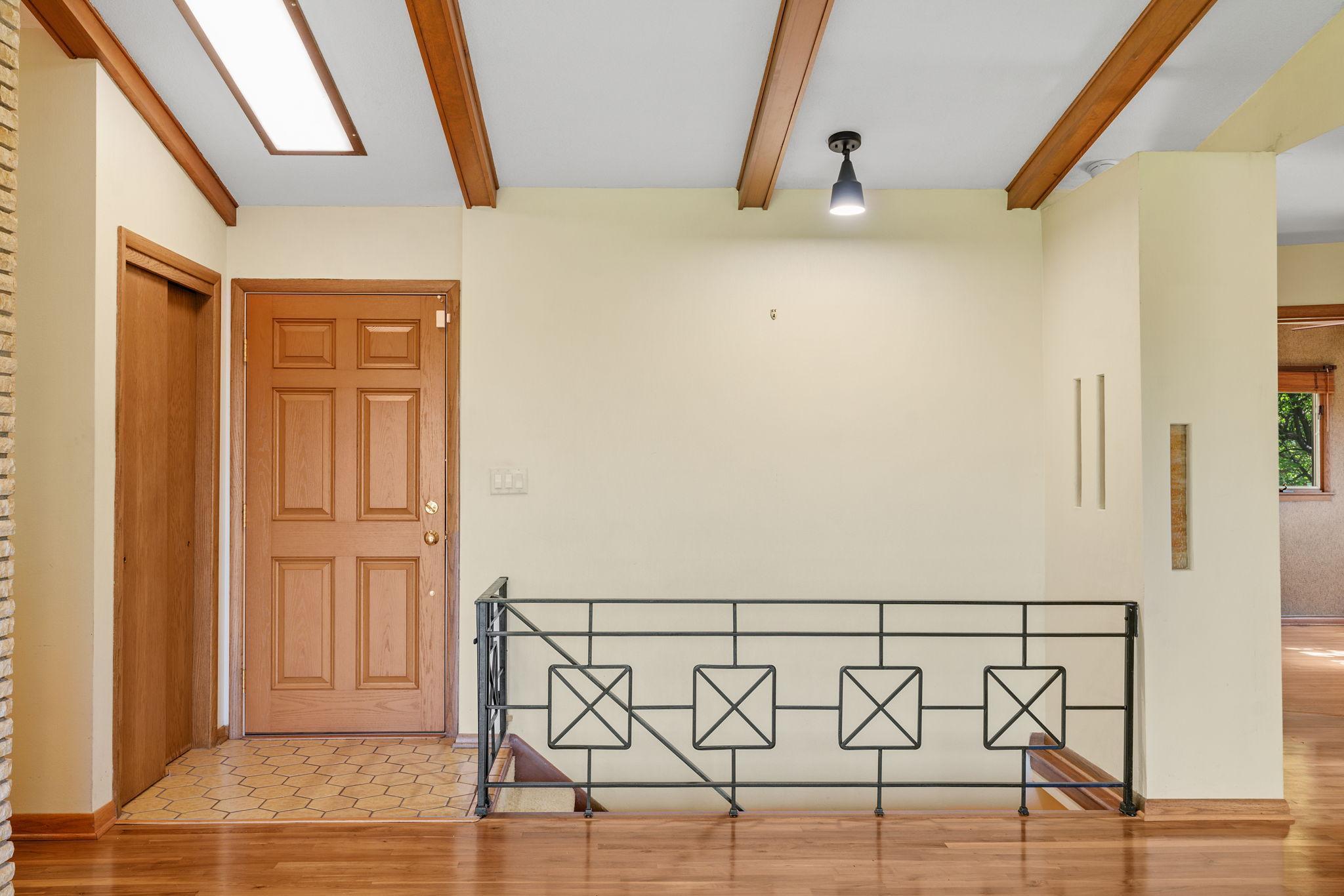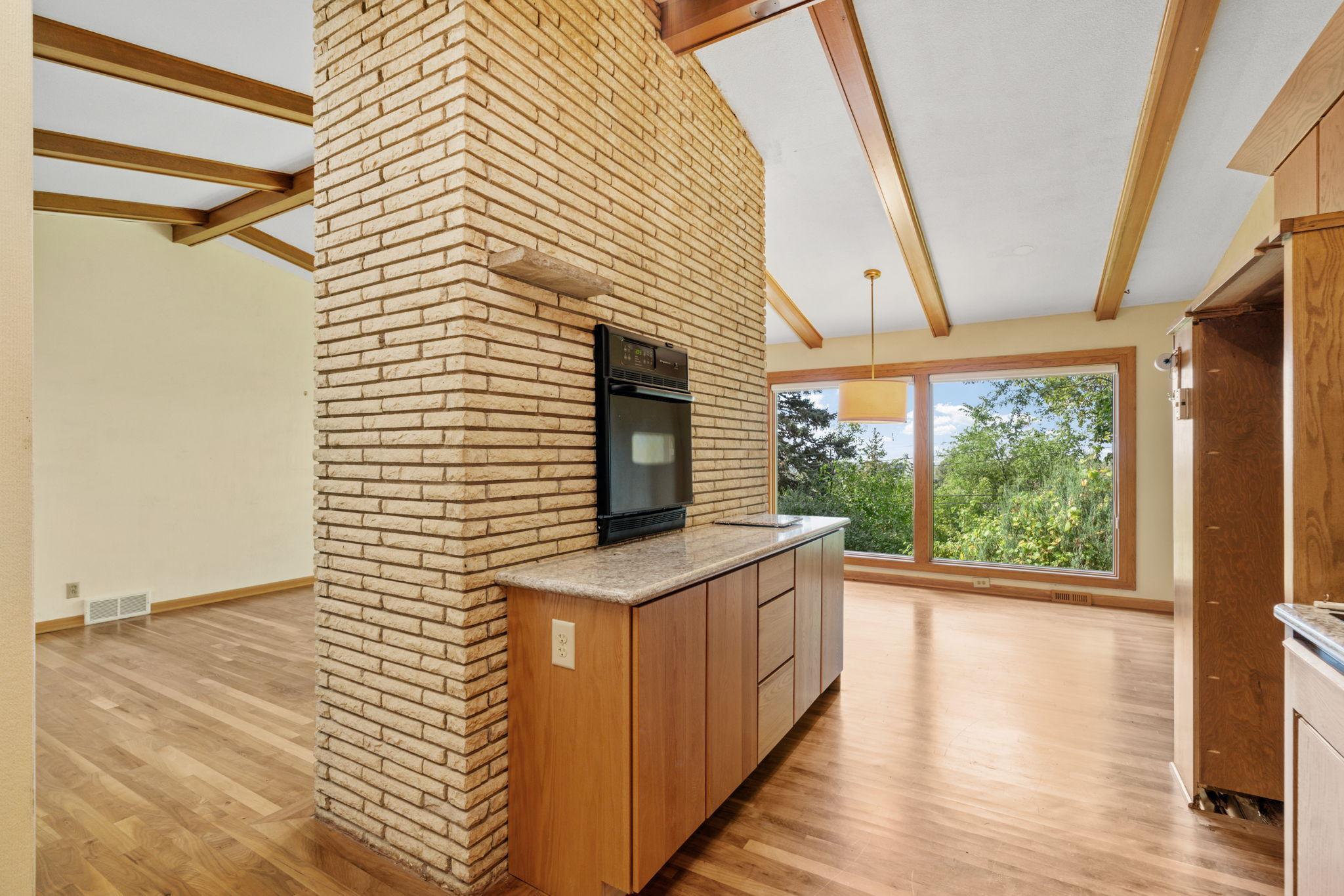 Discover timeless mid-century modern style in this one-owner Fridley home! Designed with striking architectural details, this property features vaulted ceilings, two fireplaces, and generous windows that fill the living spaces with natural light. The main level offers a spacious living room, nice size kitchen, a primary bedroom with ensuite ½ bath, and a bright four-season porch overlooking the private backyard. The walkout lower level leads to two inviting patios—perfect for entertaining or relaxing outdoors. An oversized garage provides excellent storage and workspace. With its solid design and original character, this home offers incredible potential for you to make it your own while enjoying the comfort and charm of classic mid-century living.