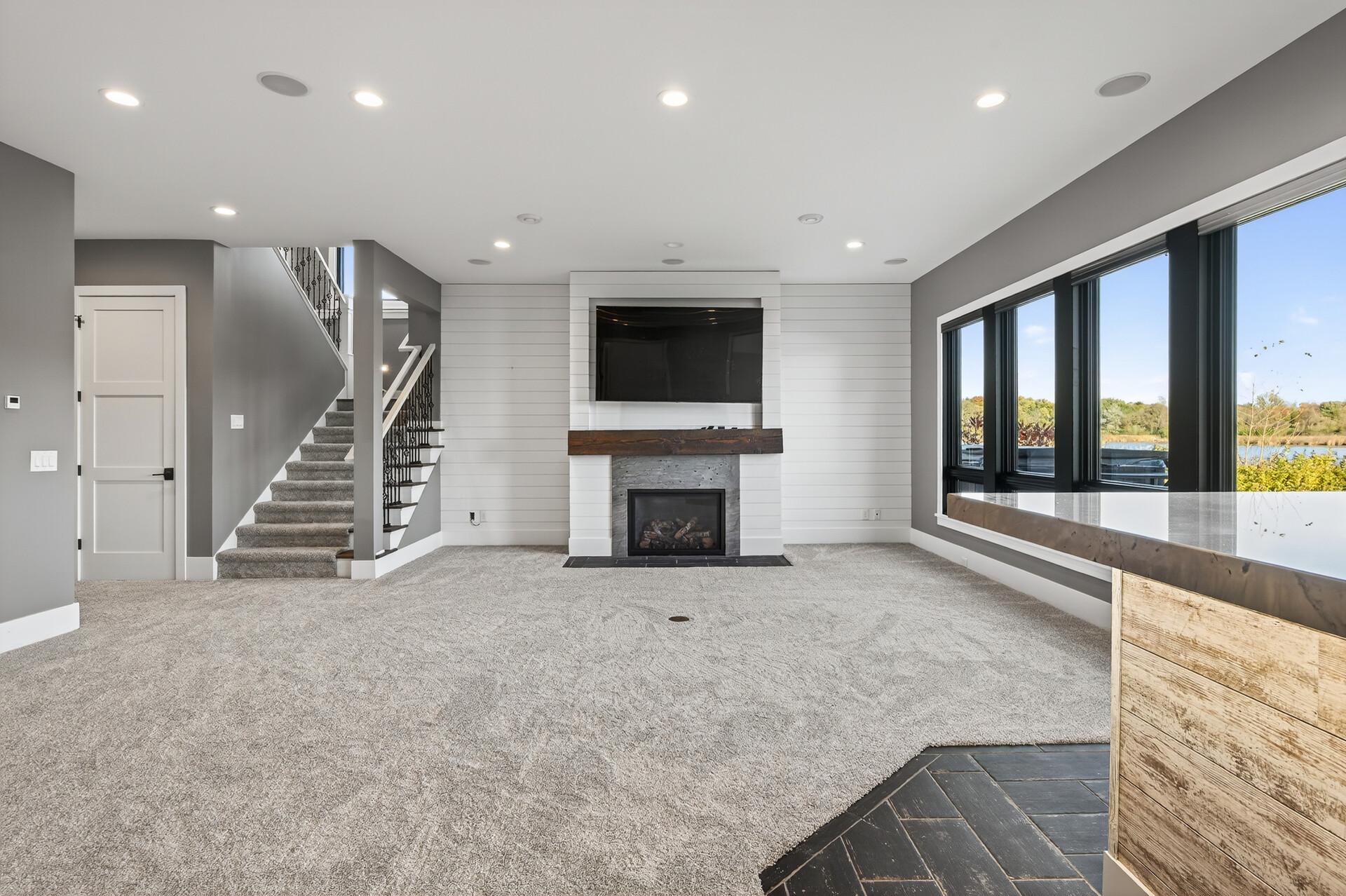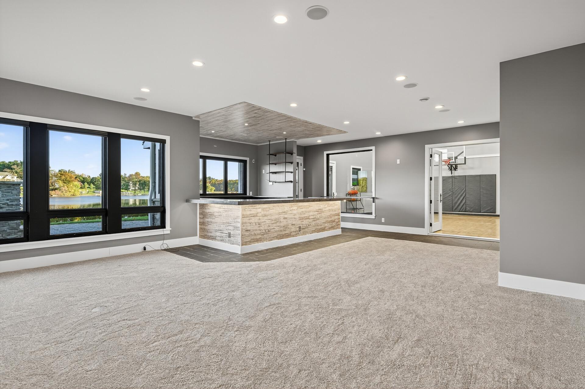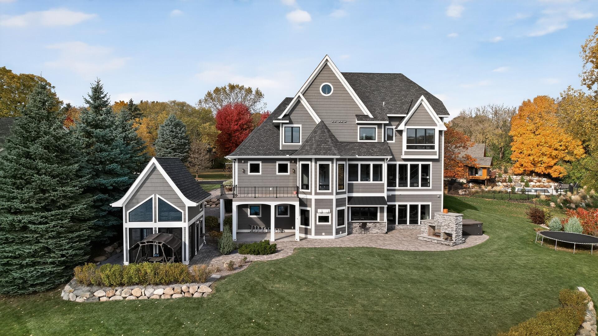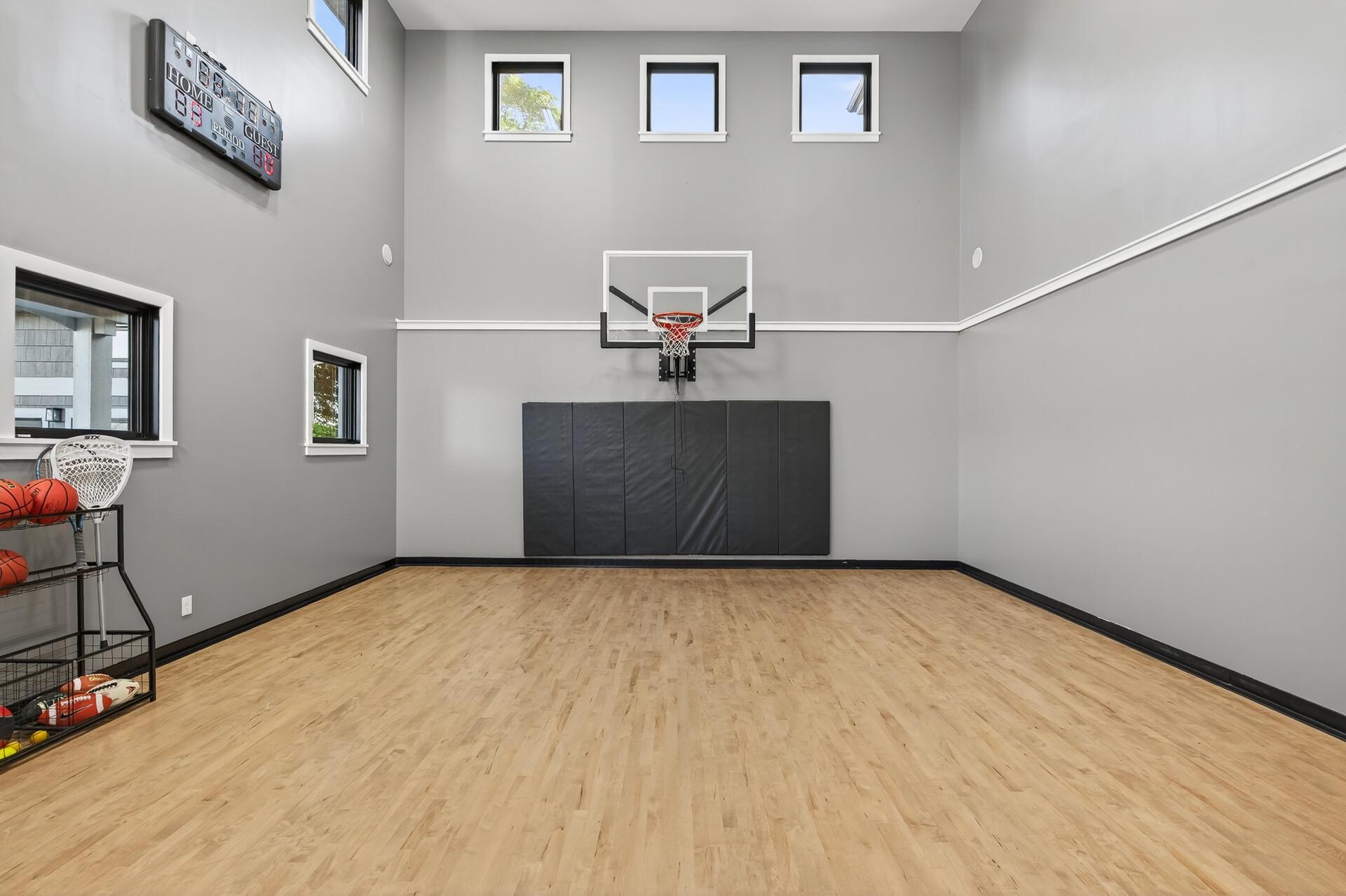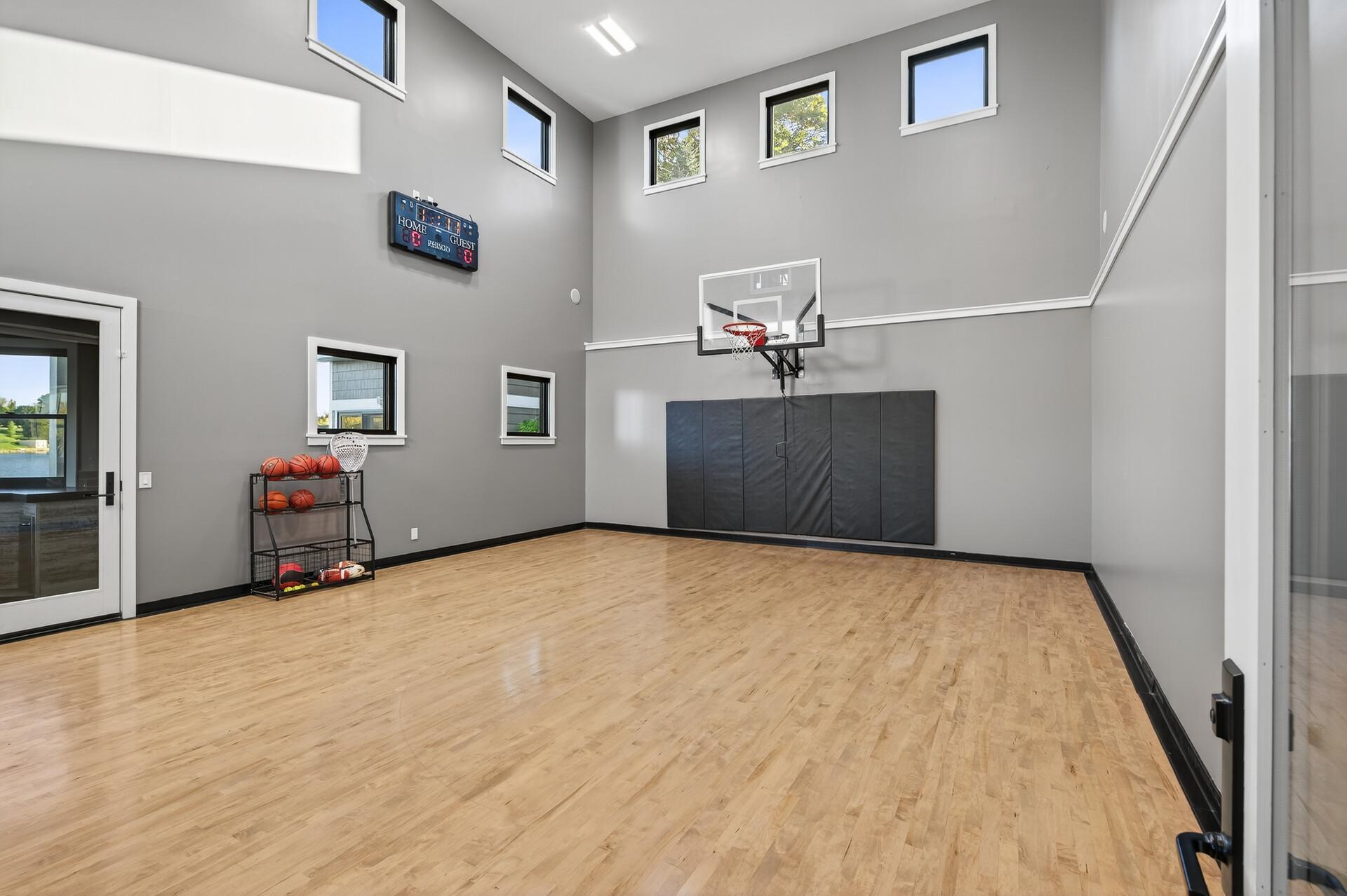 This stunning home blends timeless architecture with modern comfort. A covered front entry leads into a bright, open-concept main floor where oversized windows fill the great room with natural light. The gourmet kitchen features high-end finishes and flows seamlessly into the dining area — perfect for both entertaining and everyday living. A private main-floor office provides a quiet workspace, while the mudroom off the three-car garage helps keep life organized. Upstairs, the primary suite offers a spacious retreat with a spa-style bath that includes a soaking tub, walk-in shower, and large walk-in closet. Four additional bedrooms, a loft lounge, and a convenient laundry room complete the upper level. The walkout lower level adds exceptional living and recreation space with a large family room, full wet bar with commercial-grade appliances, a grilling room, guest bedroom, and a sport court with scoreboard. Direct access to the backyard and Boat House enhances indoor-outdoor living and entertaining. Combining style, space, and versatility, this home is ideal for modern living — whether for family life, remote work, or recreation.