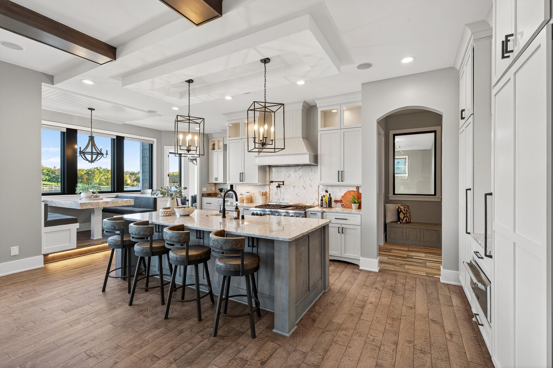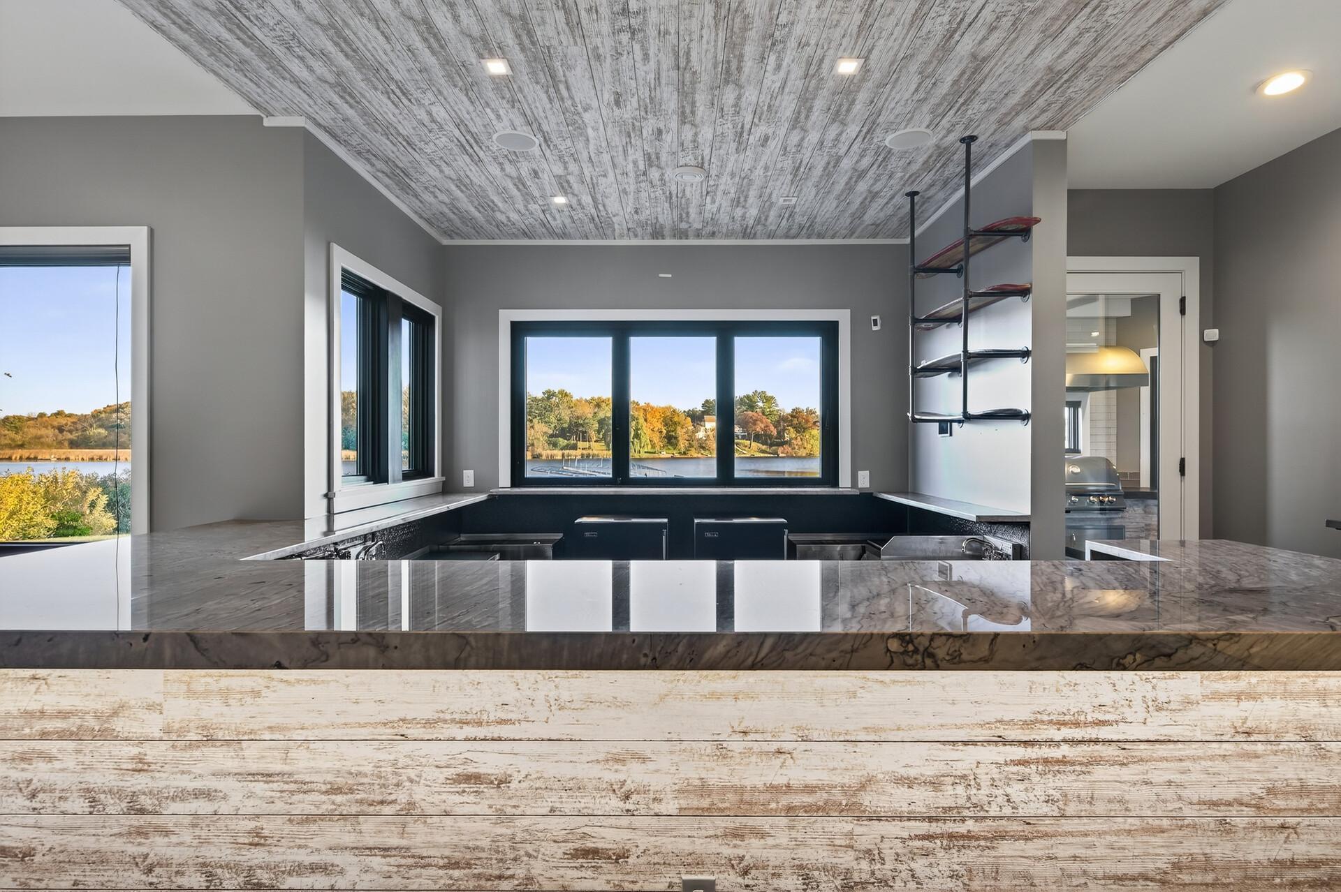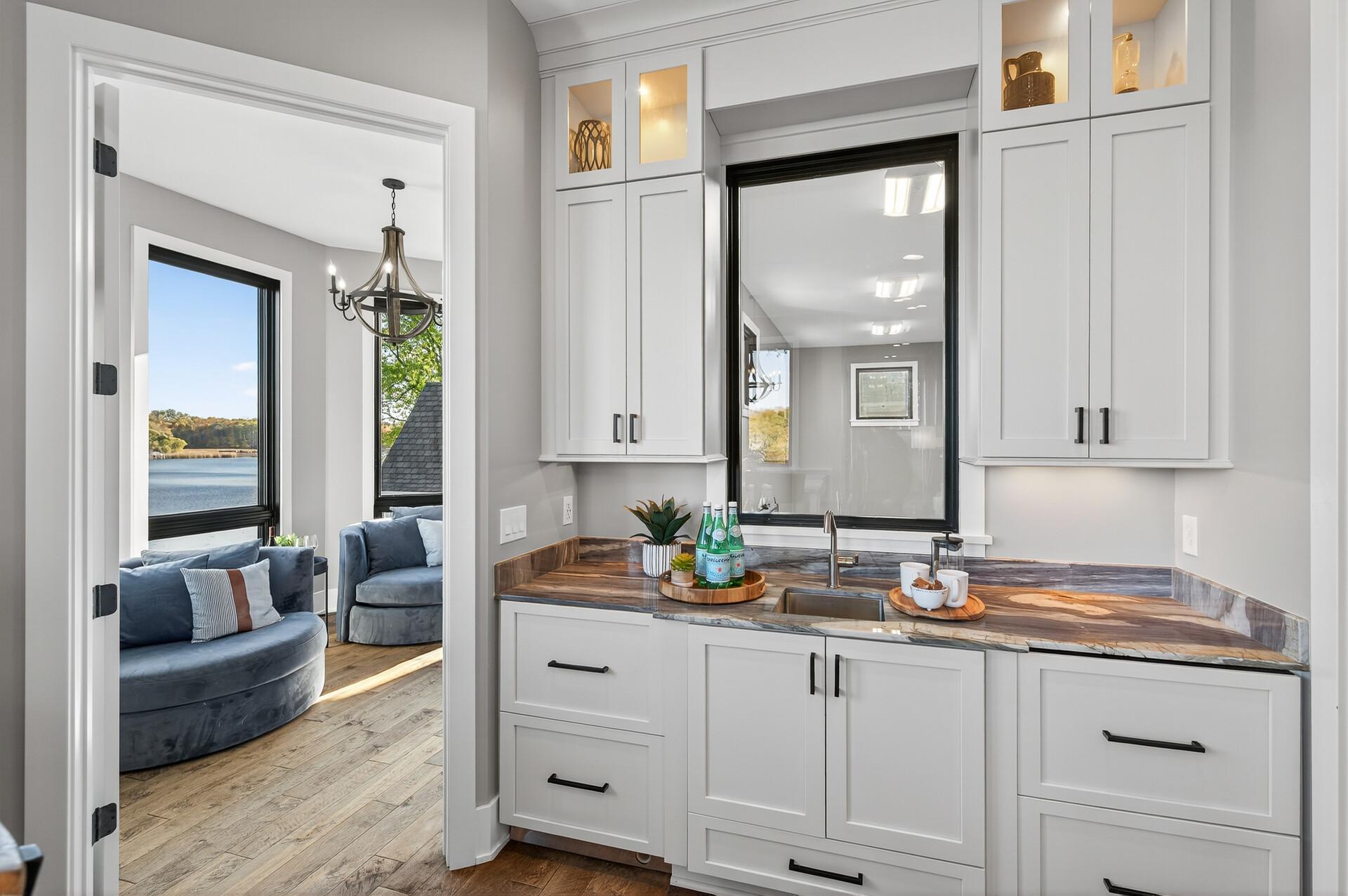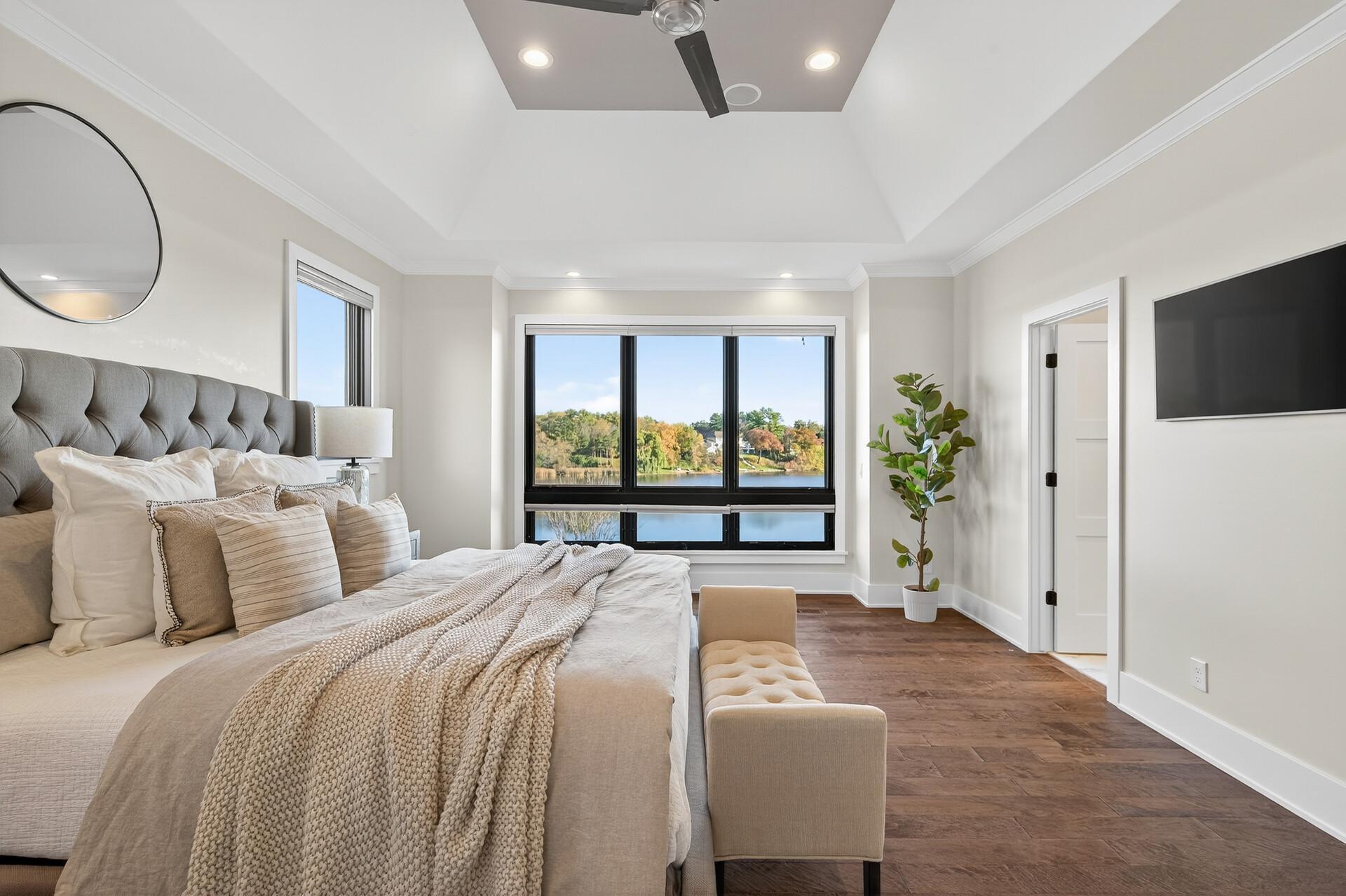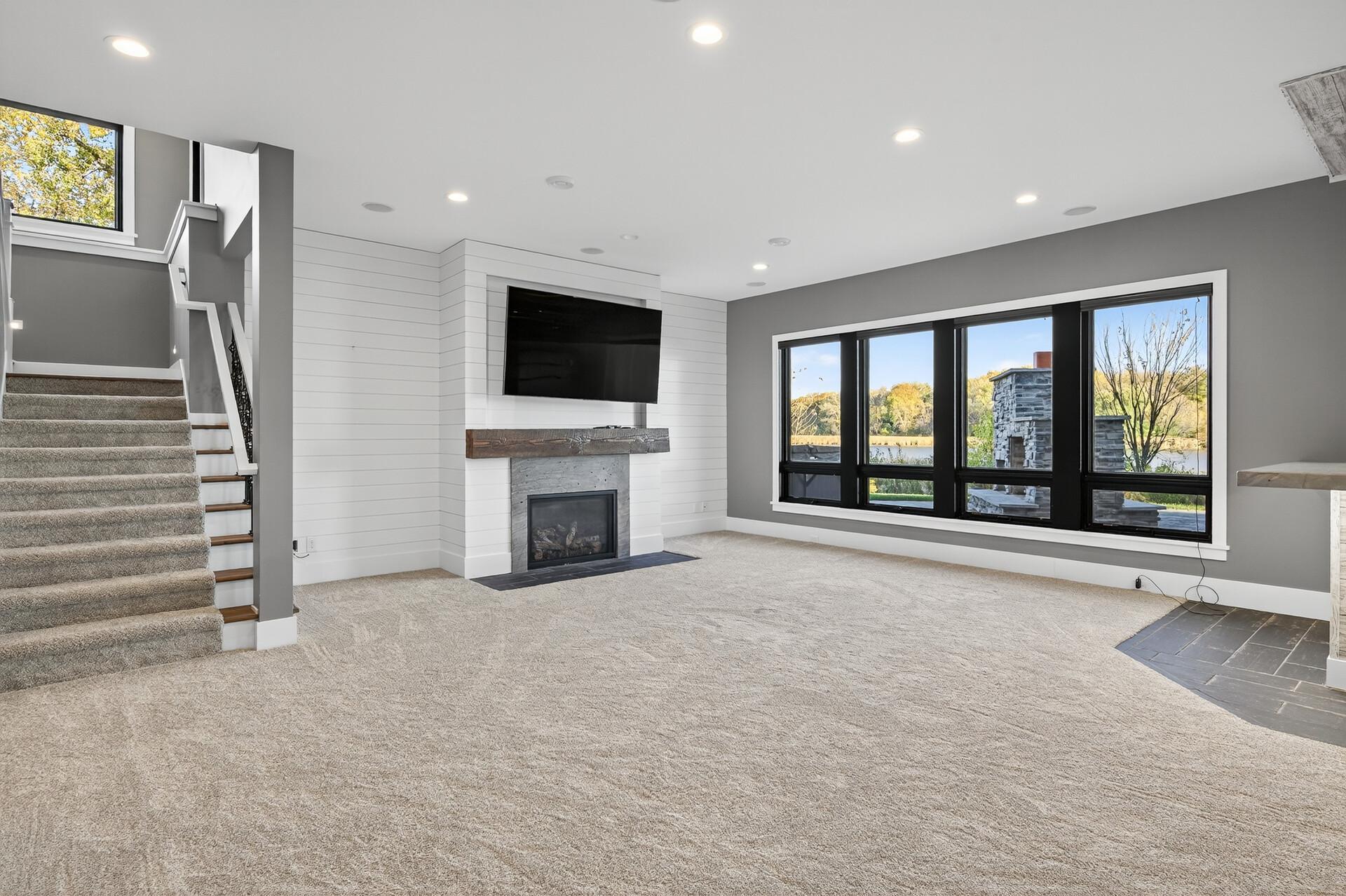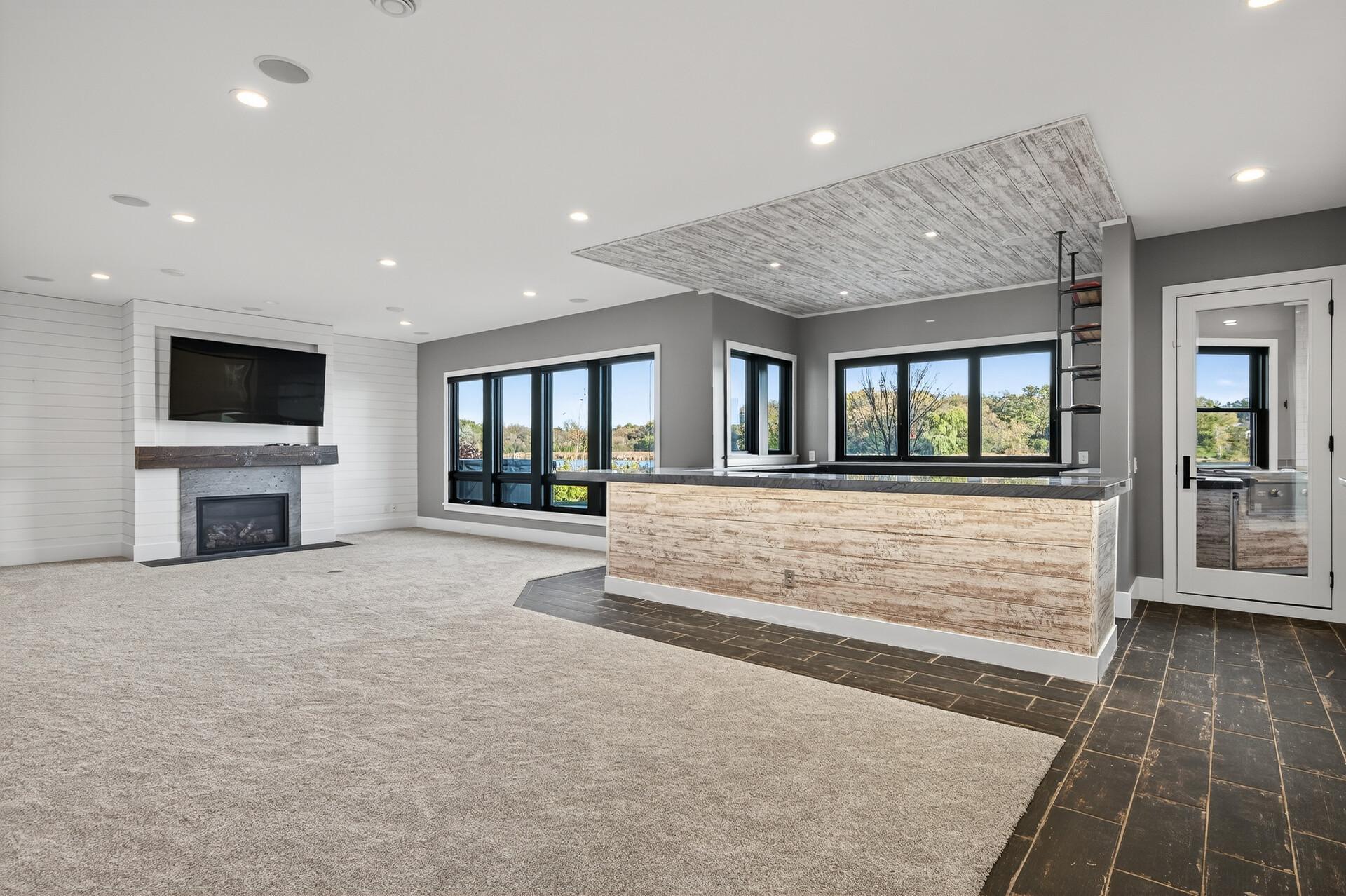 This stunning home blends timeless architecture with modern comfort. A covered front entry leads into a bright, open-concept main floor where oversized windows fill the great room with natural light. The gourmet kitchen features high-end finishes and flows seamlessly into the dining area — perfect for both entertaining and everyday living. A private main-floor office provides a quiet workspace, while the mudroom off the three-car garage helps keep life organized. Upstairs, the primary suite offers a spacious retreat with a spa-style bath that includes a soaking tub, walk-in shower, and large walk-in closet. Four additional bedrooms, a loft lounge, and a convenient laundry room complete the upper level. The walkout lower level adds exceptional living and recreation space with a large family room, full wet bar with commercial-grade appliances, a grilling room, guest bedroom, and a sport court with scoreboard. Direct access to the backyard and Boat House enhances indoor-outdoor living and entertaining. Combining style, space, and versatility, this home is ideal for modern living — whether for family life, remote work, or recreation.