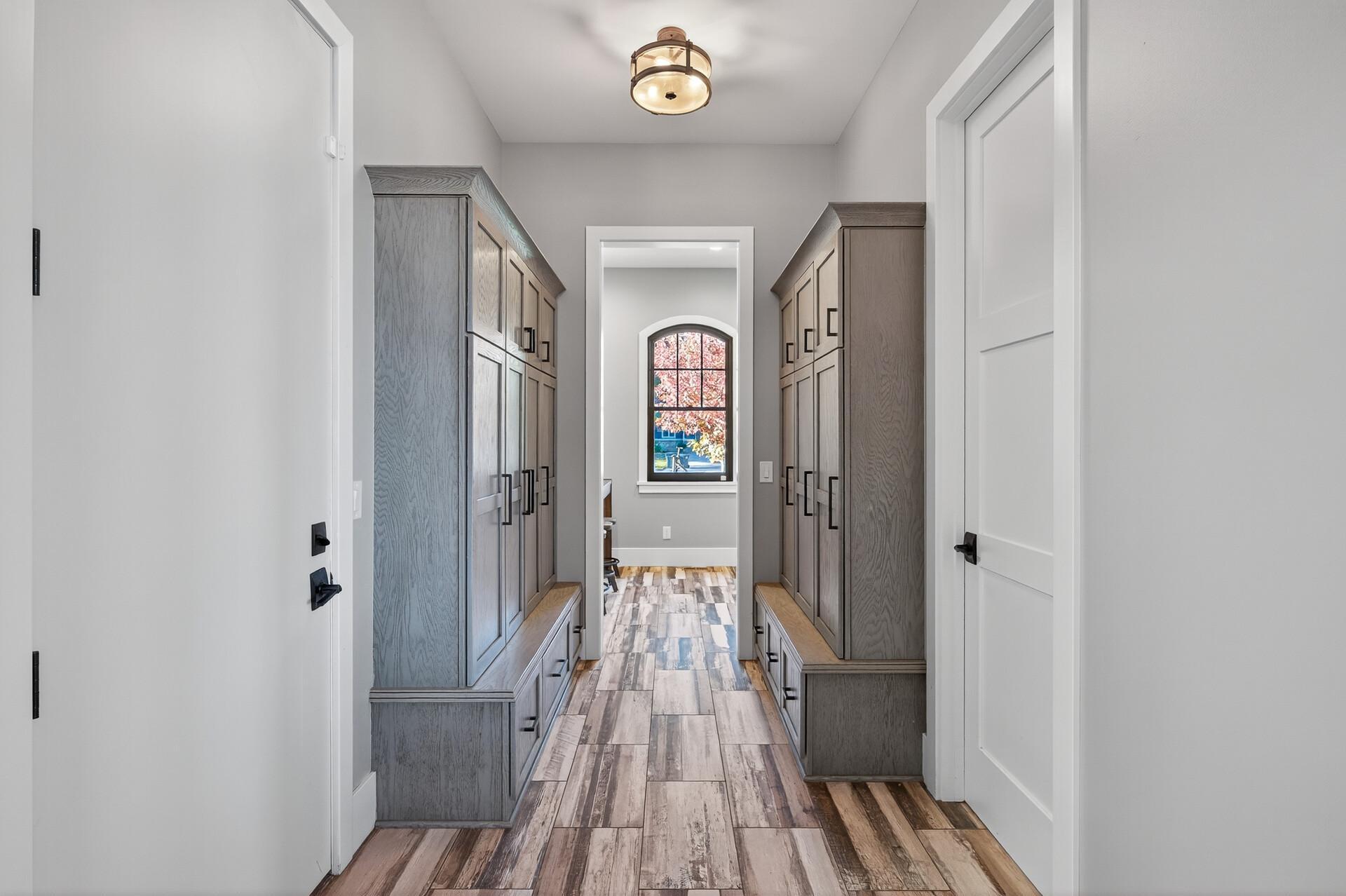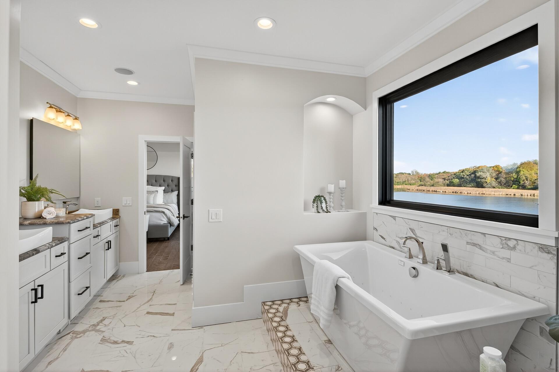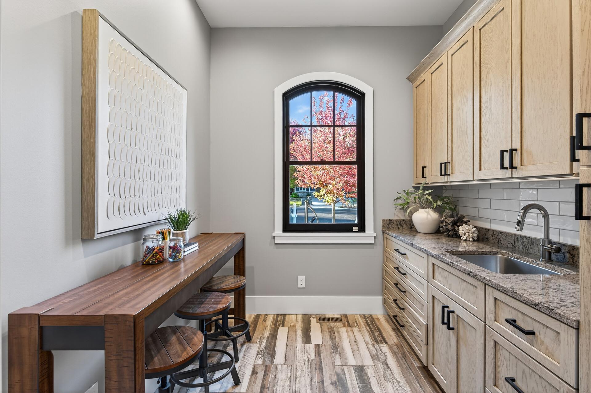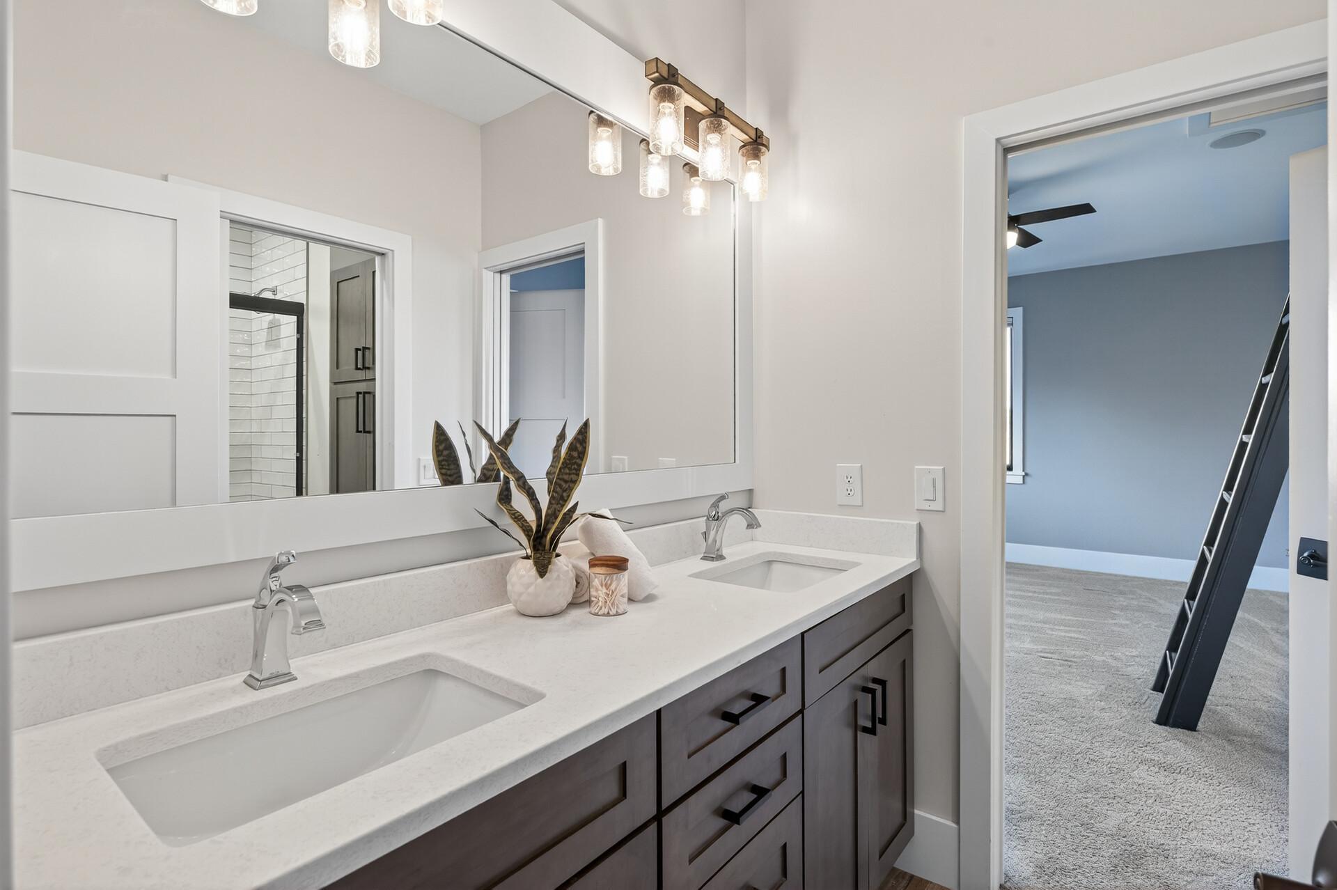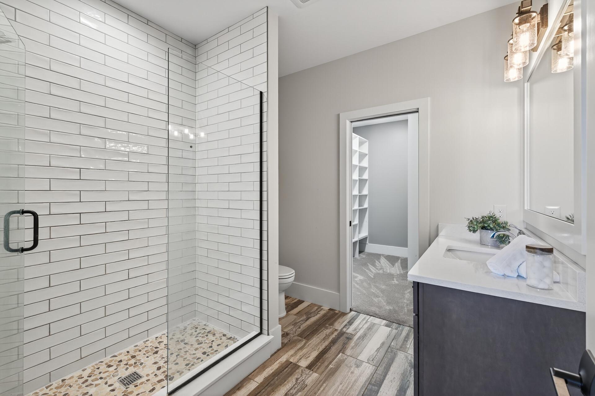 This stunning home blends timeless architecture with modern comfort. A covered front entry leads into a bright, open-concept main floor where oversized windows fill the great room with natural light. The gourmet kitchen features high-end finishes and flows seamlessly into the dining area — perfect for both entertaining and everyday living. A private main-floor office provides a quiet workspace, while the mudroom off the three-car garage helps keep life organized. Upstairs, the primary suite offers a spacious retreat with a spa-style bath that includes a soaking tub, walk-in shower, and large walk-in closet. Four additional bedrooms, a loft lounge, and a convenient laundry room complete the upper level. The walkout lower level adds exceptional living and recreation space with a large family room, full wet bar with commercial-grade appliances, a grilling room, guest bedroom, and a sport court with scoreboard. Direct access to the backyard and Boat House enhances indoor-outdoor living and entertaining. Combining style, space, and versatility, this home is ideal for modern living — whether for family life, remote work, or recreation.